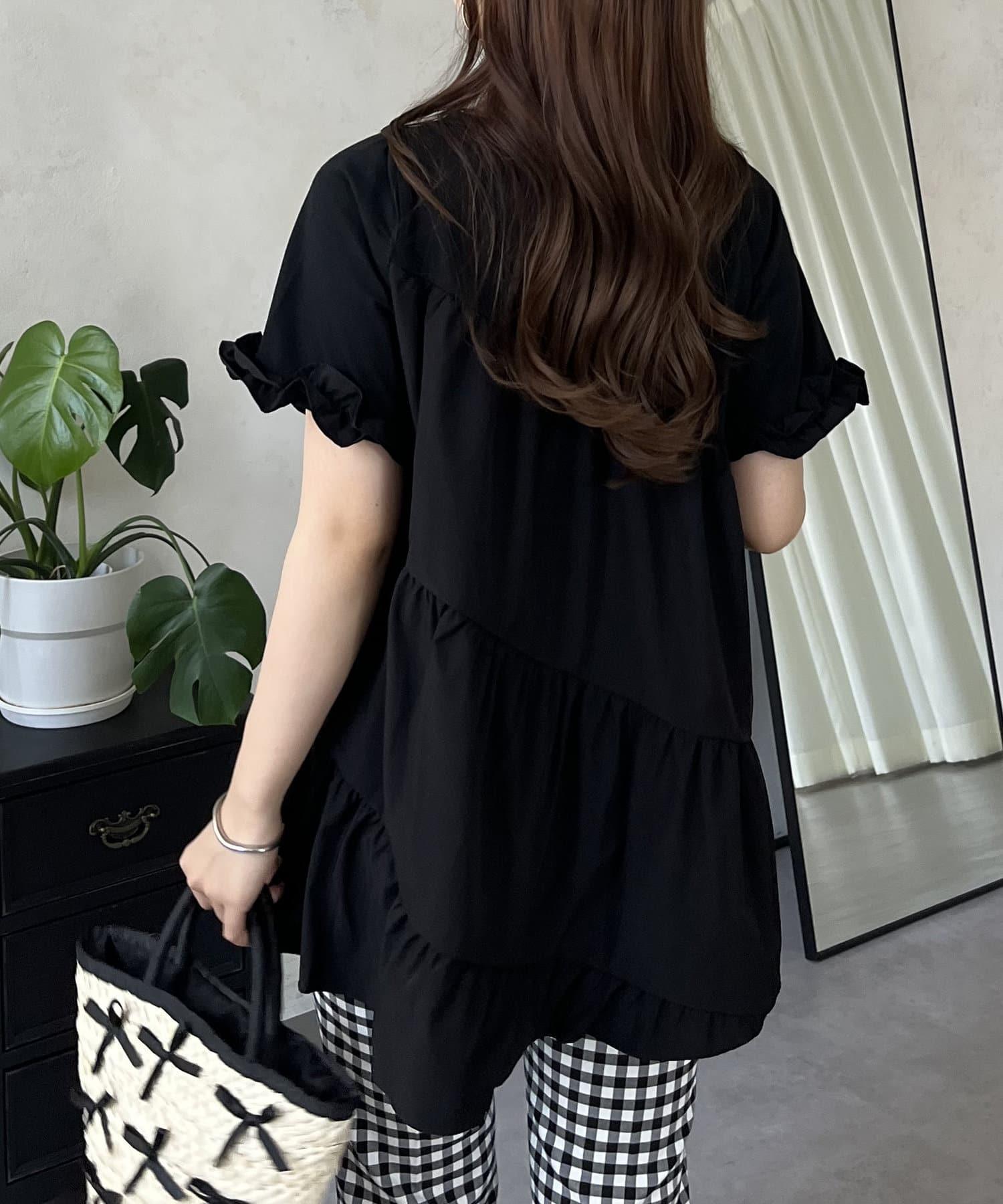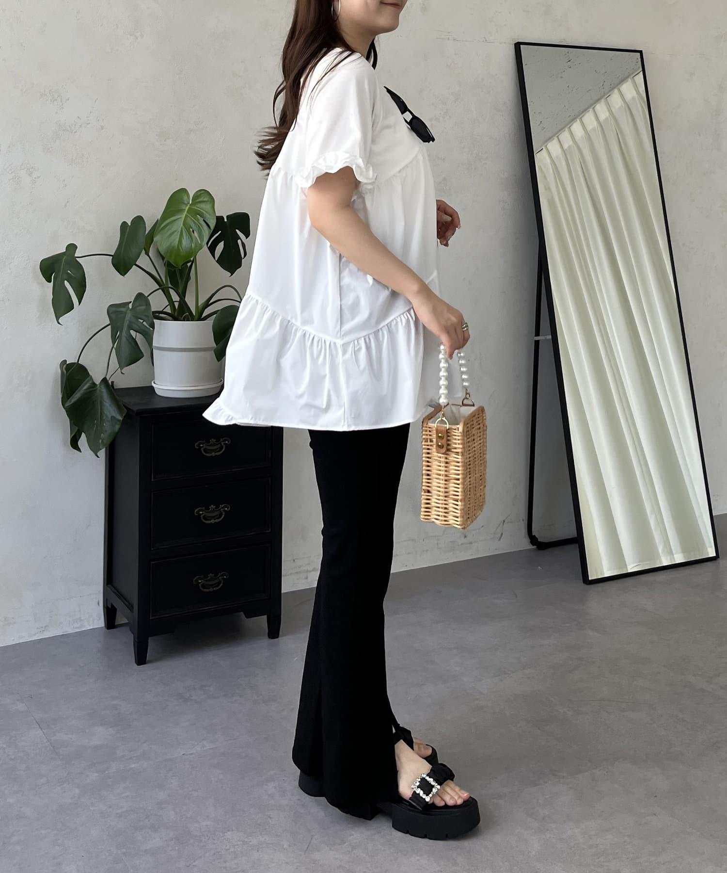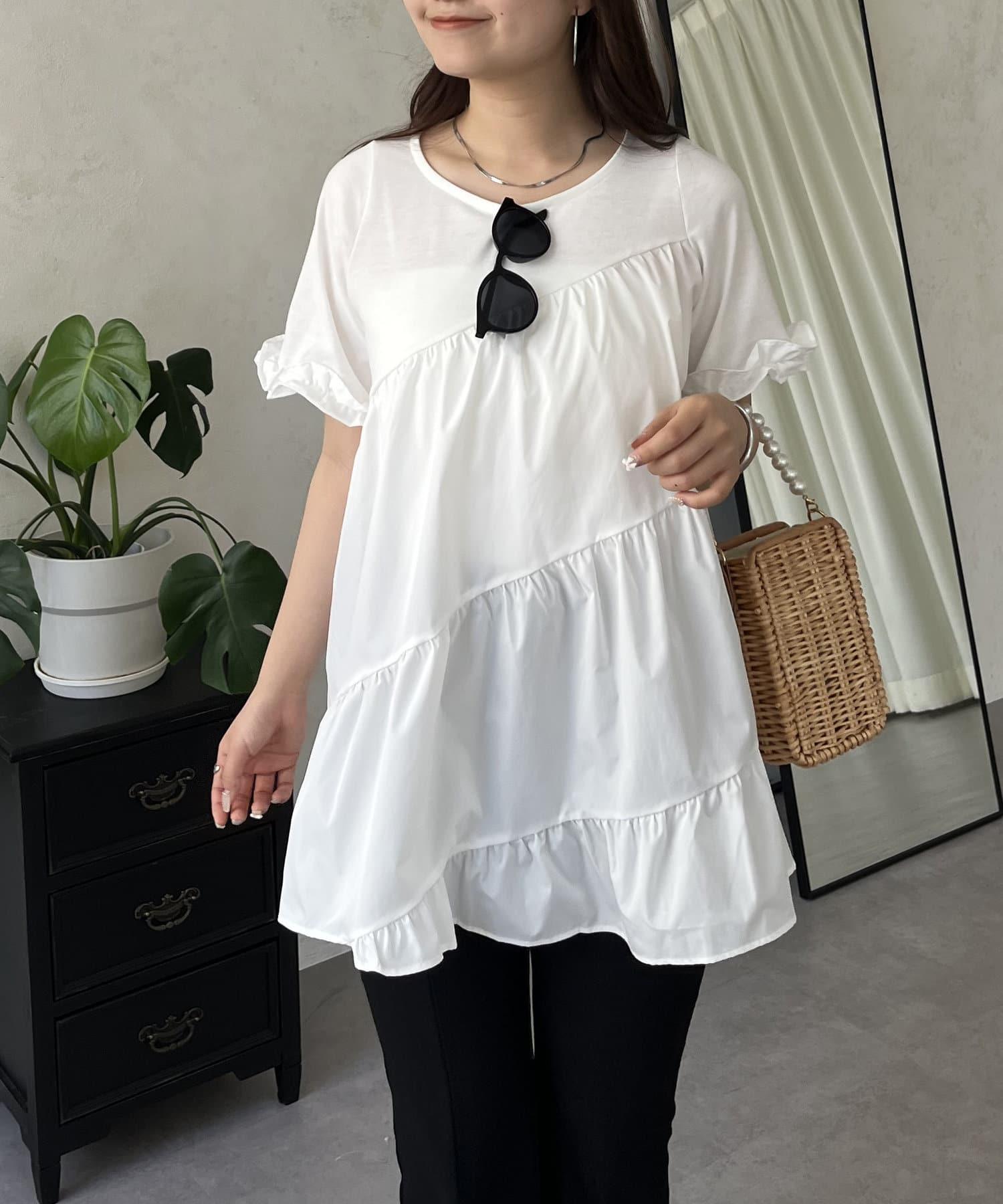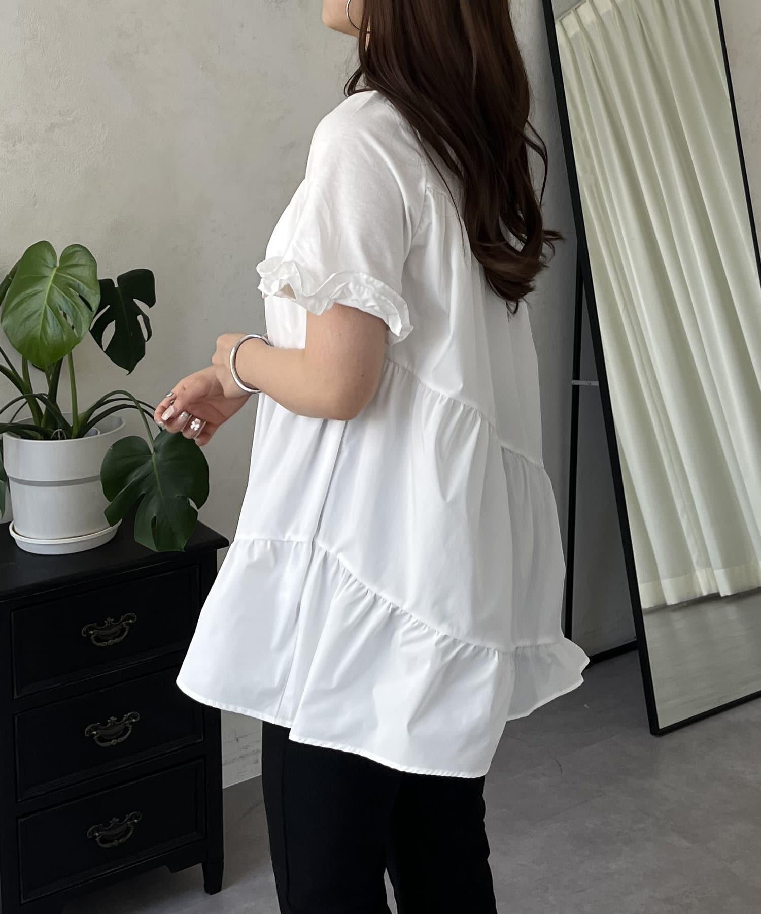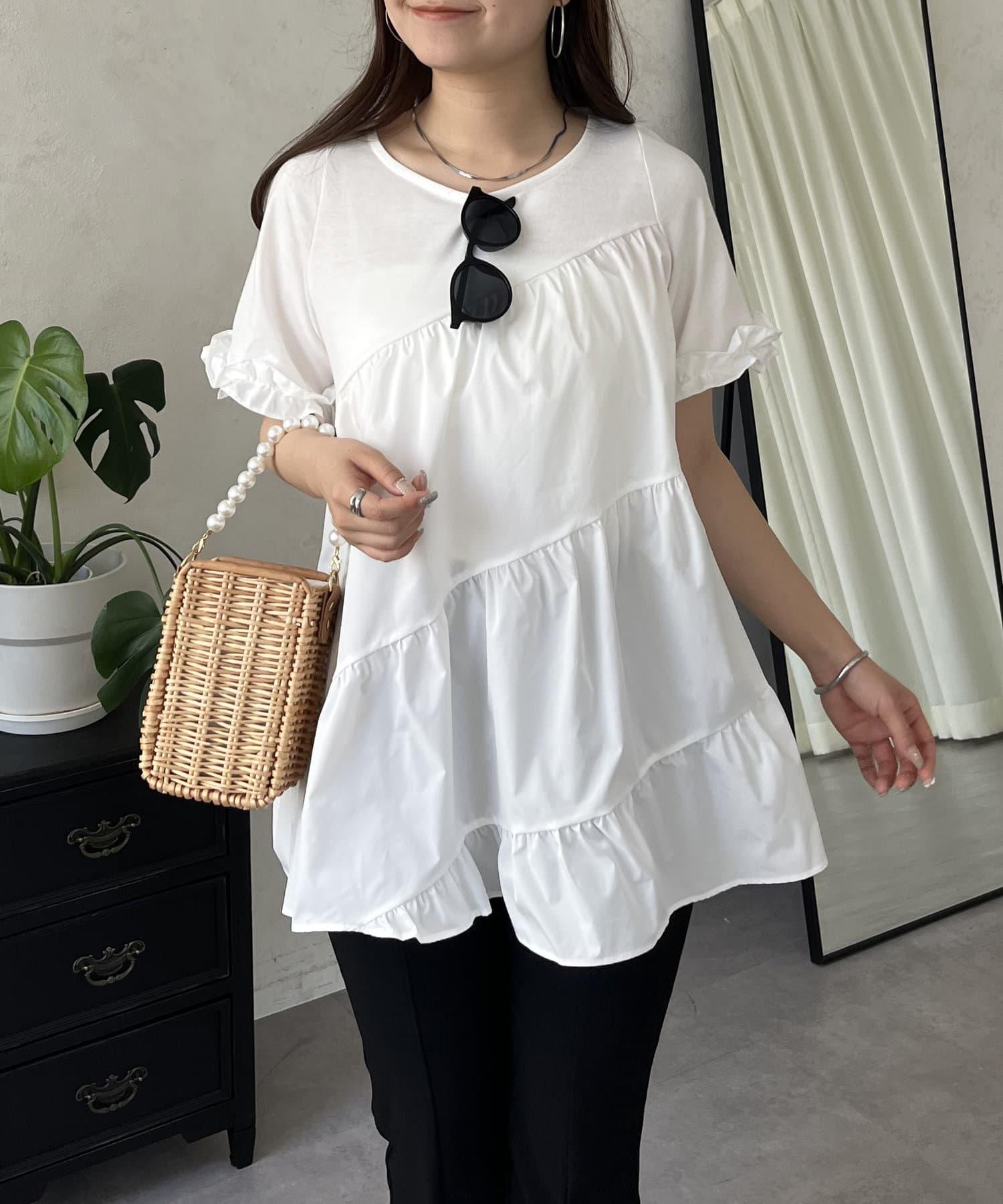 帶有荷葉邊層疊細節的 T 恤,盡顯迷人風采。