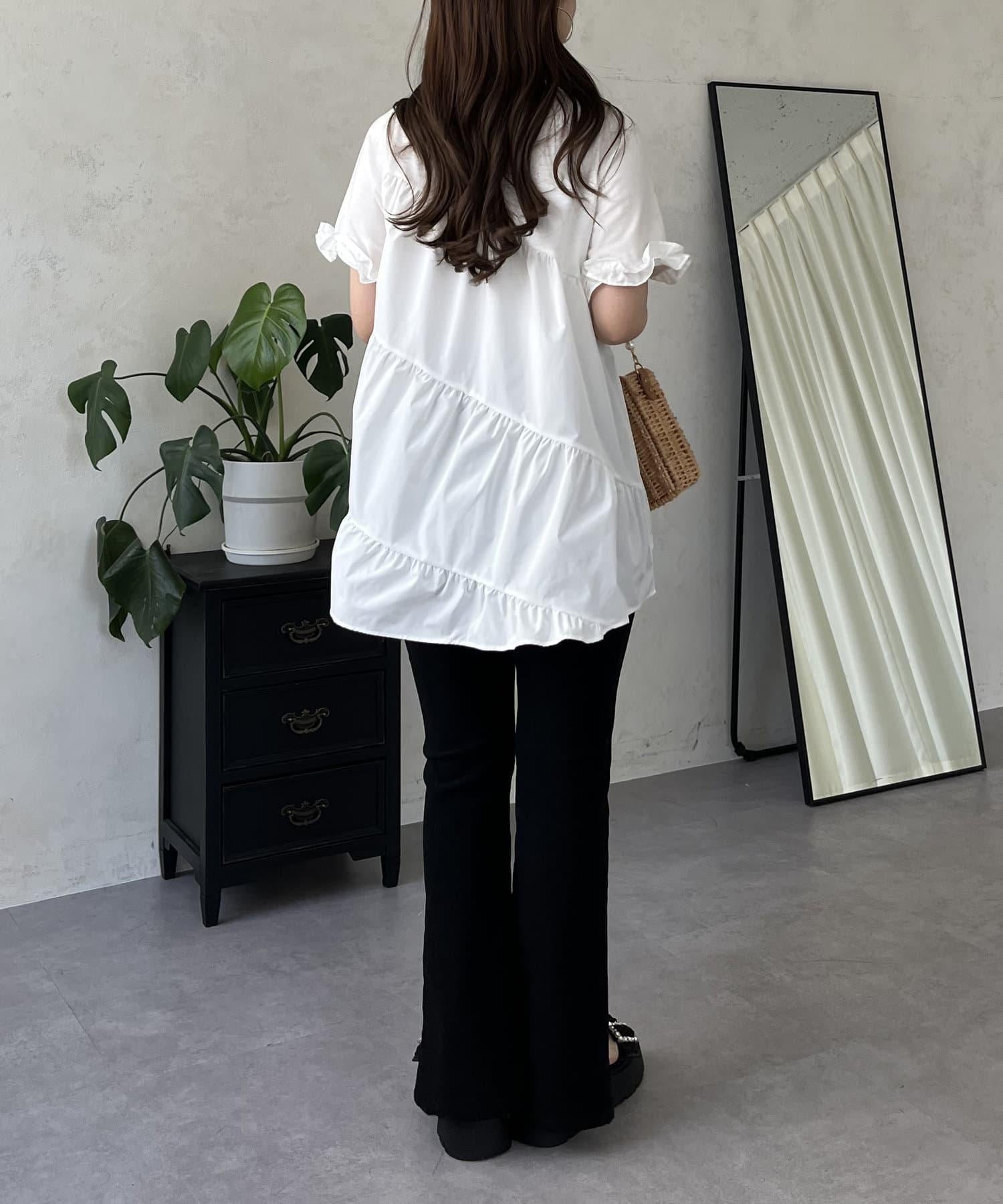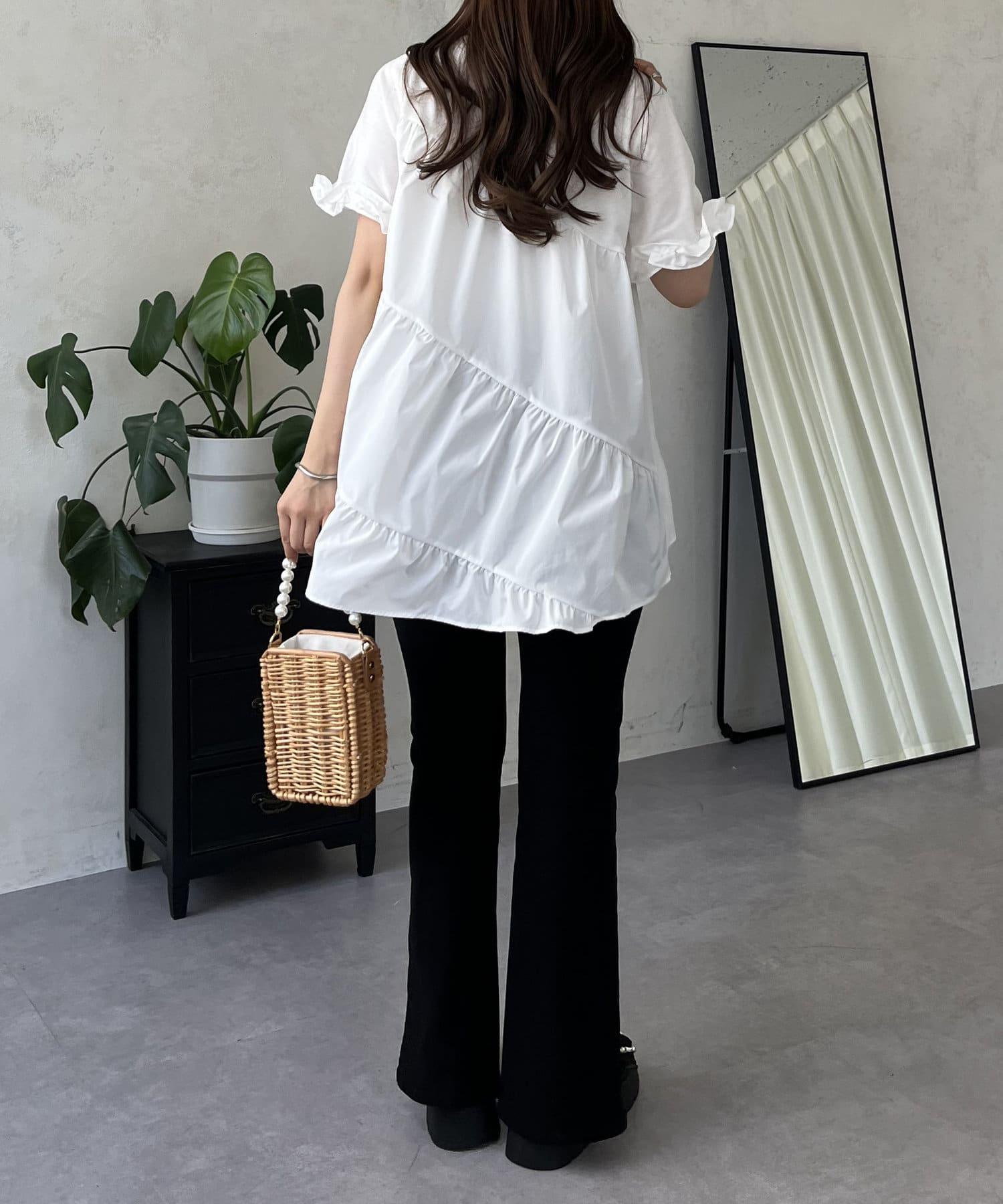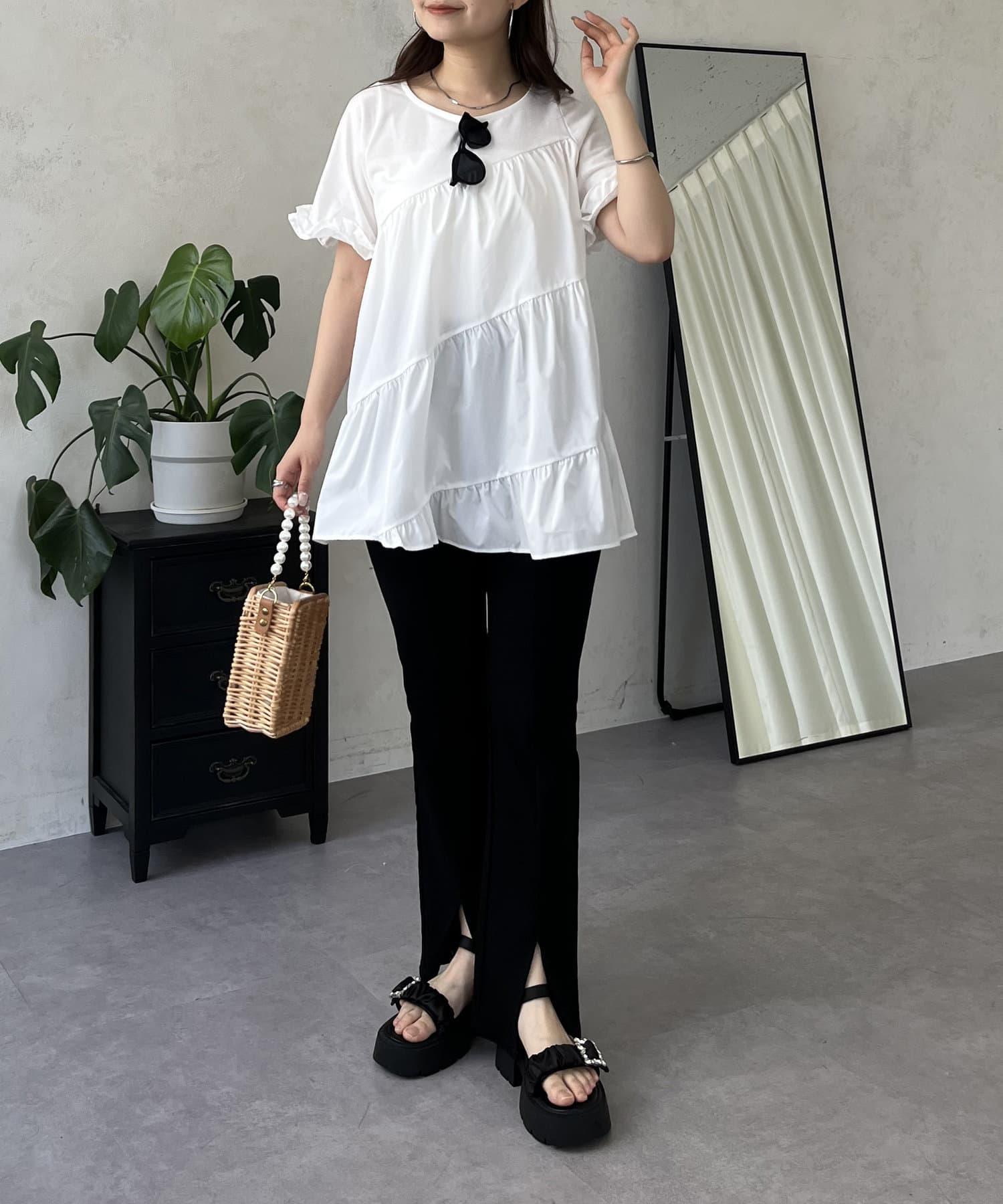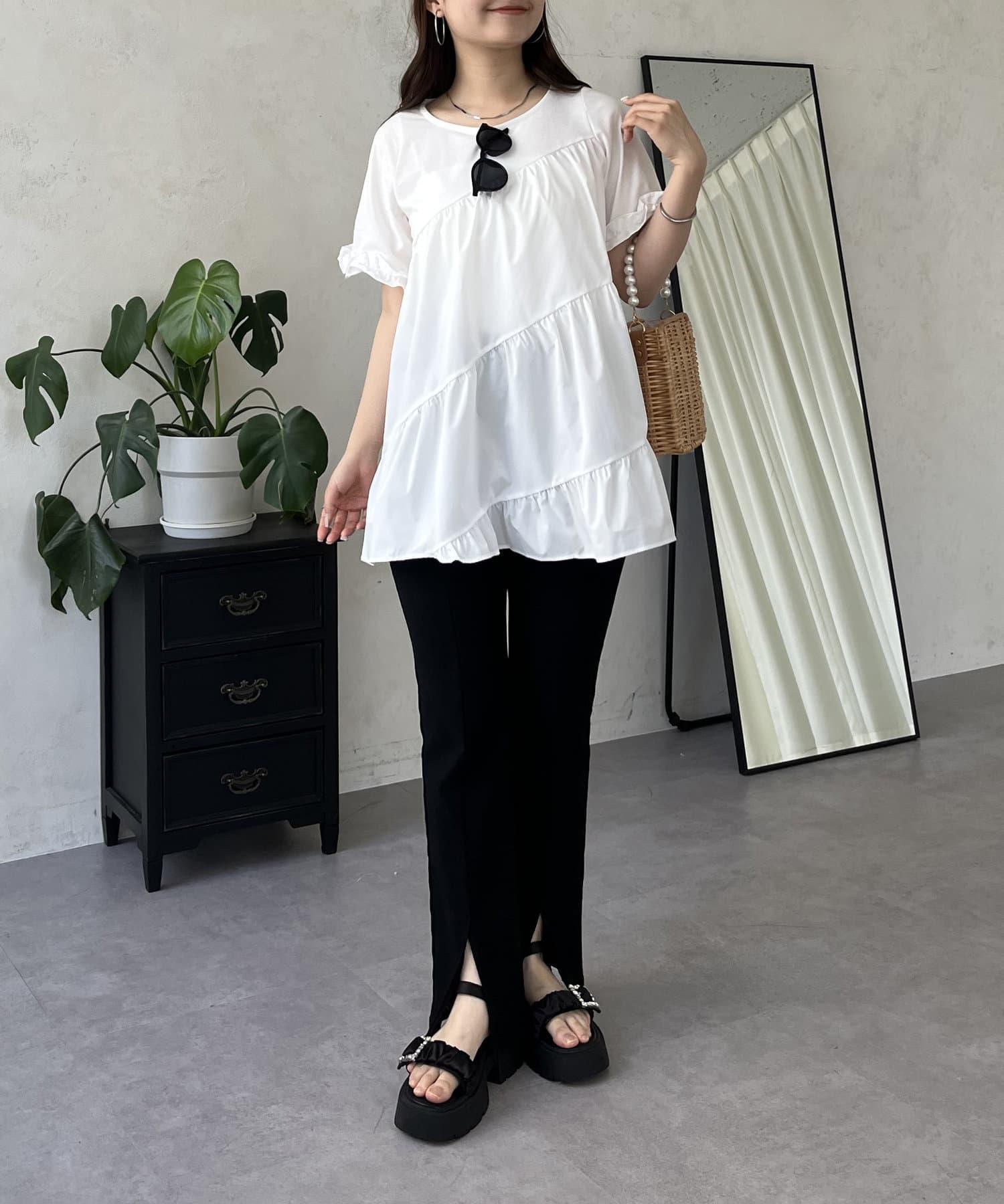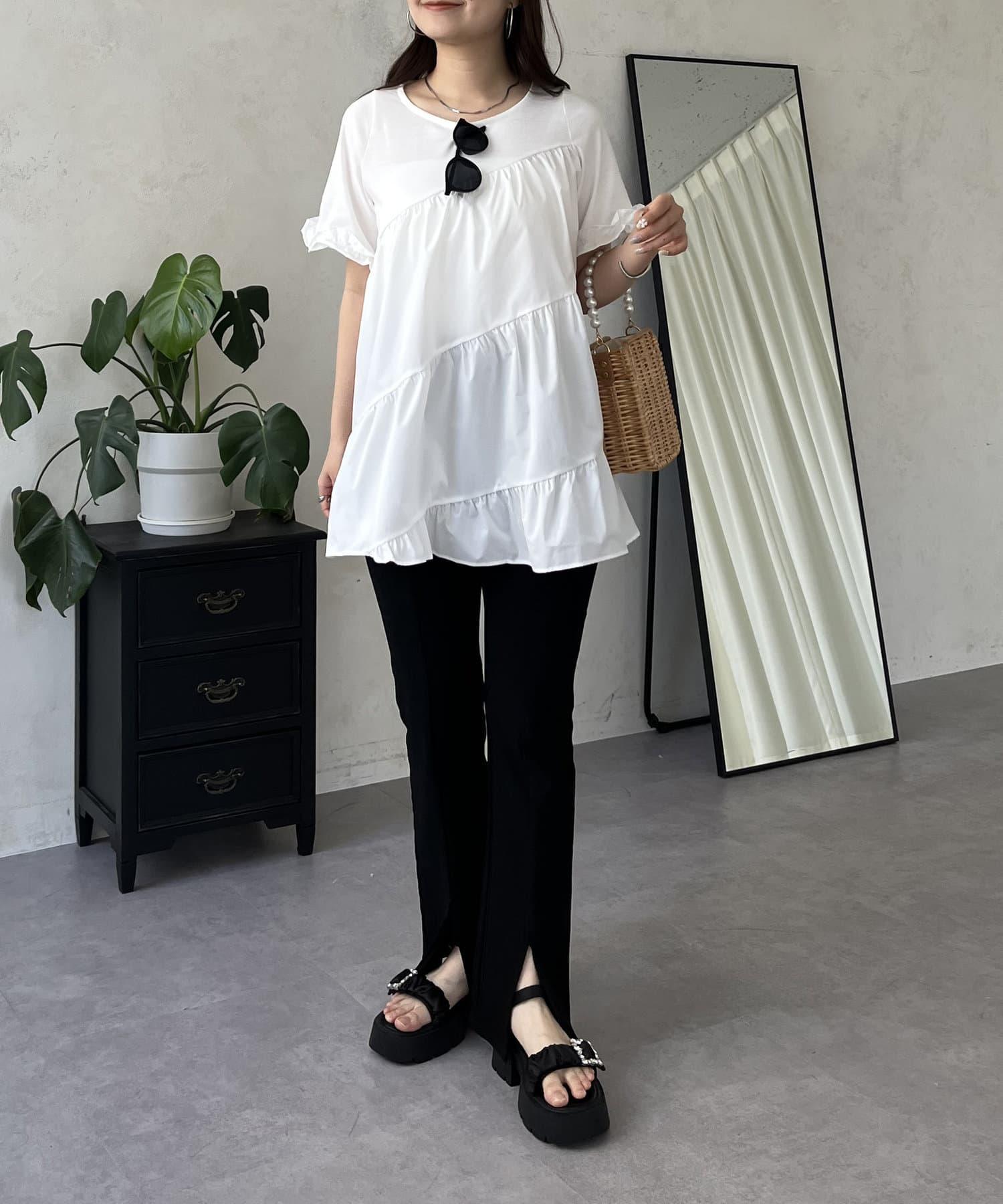 帶有荷葉邊層疊細節的 T 恤,盡顯迷人風采。