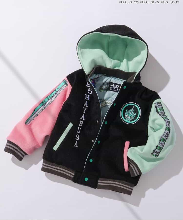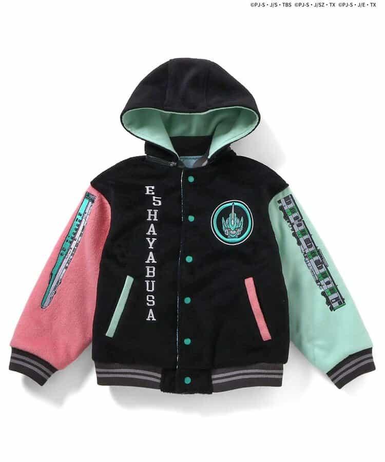 這款連帽運動場夾克的背後繡有紀念 10 週年的特別連續世代 E5 Hayabusa 的圖案。