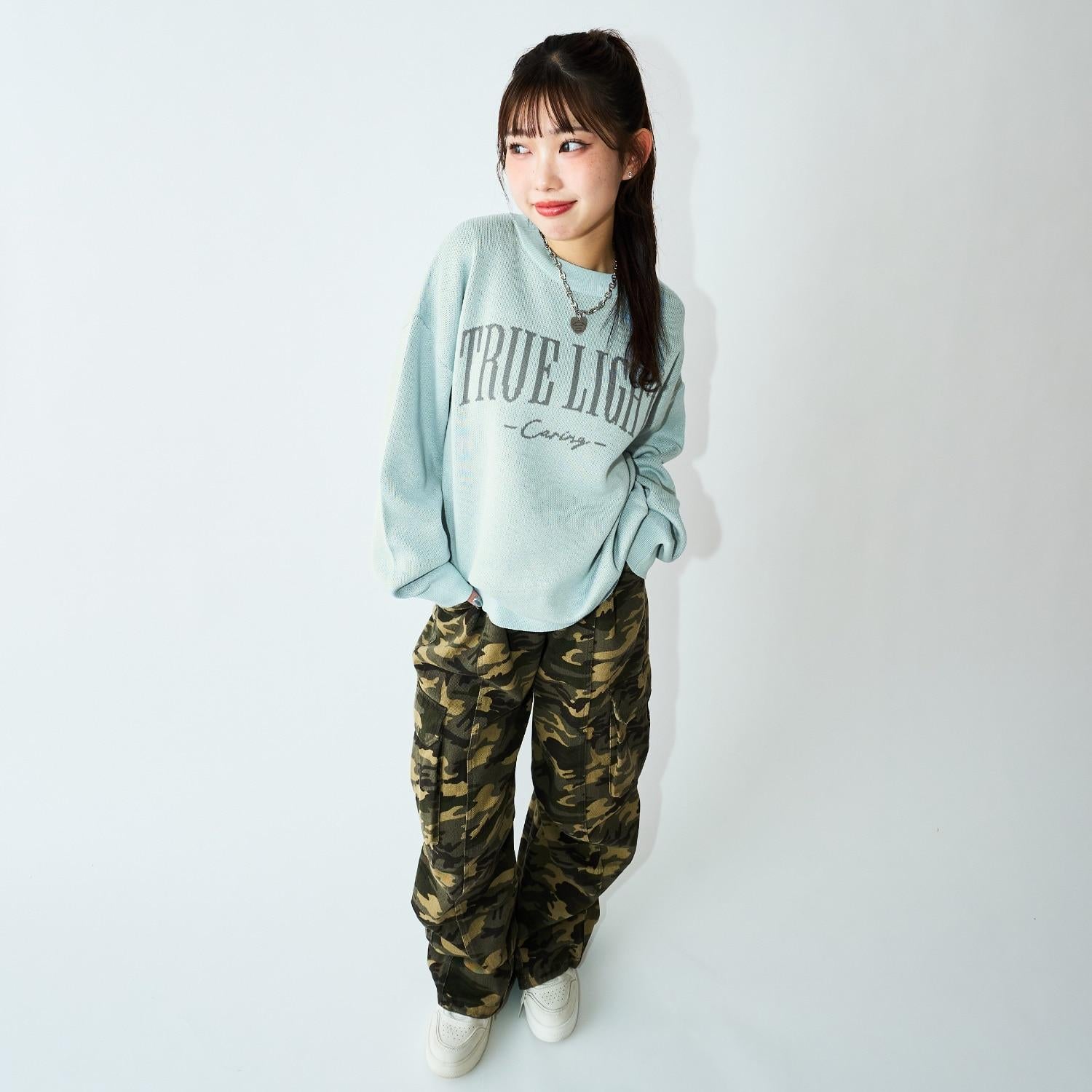 寬鬆的齊肩剪裁,帶來寬鬆的外觀。