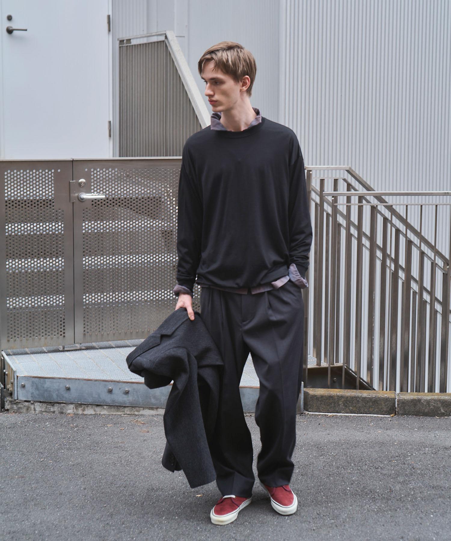 炭灰色和棕色從羊毛-棉布階段開始混合,創造出一種單一顏色無法表現的優雅而深邃的質感。