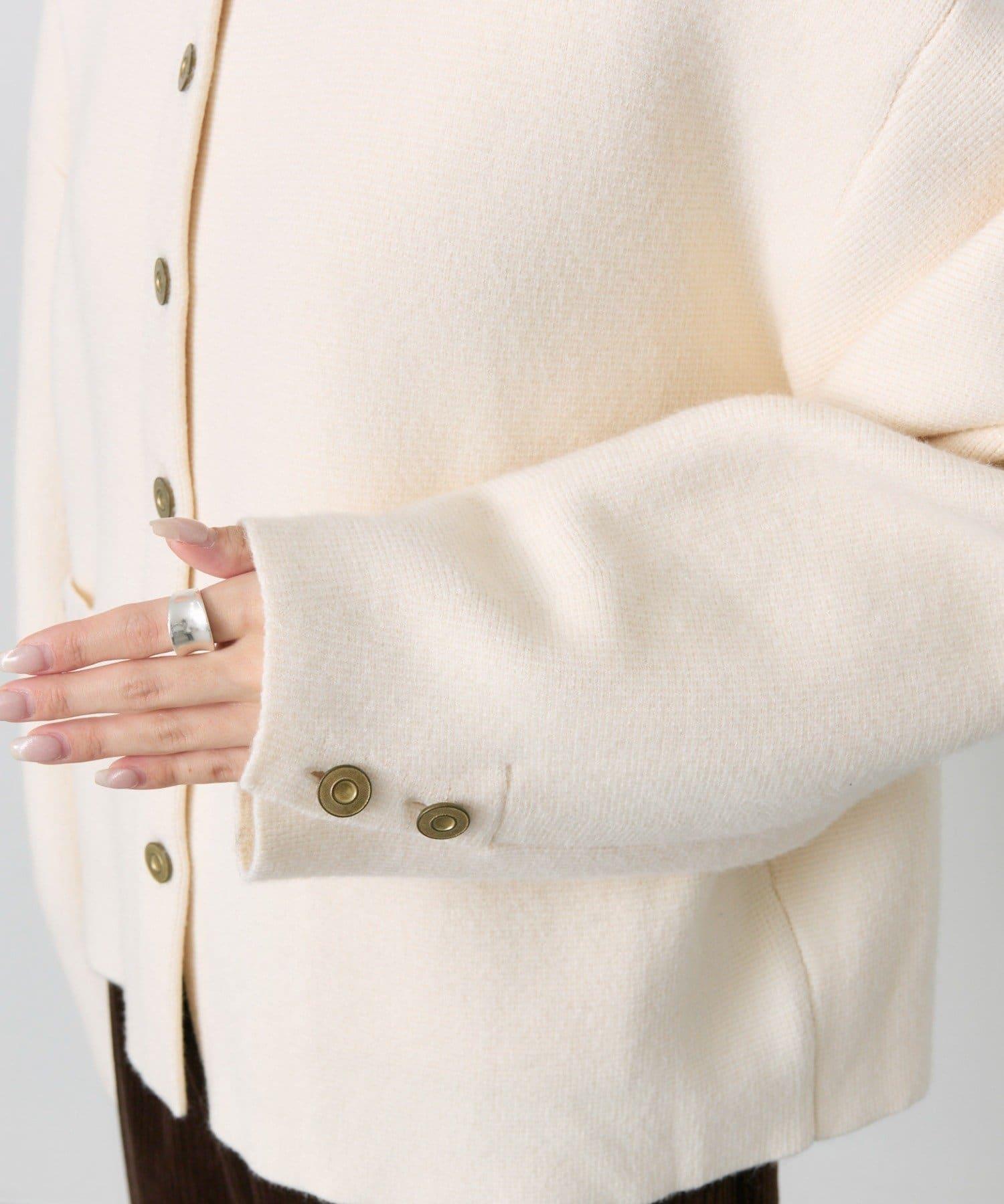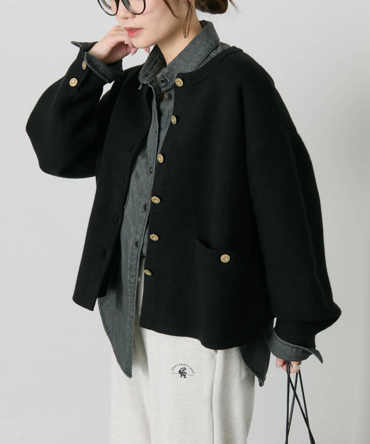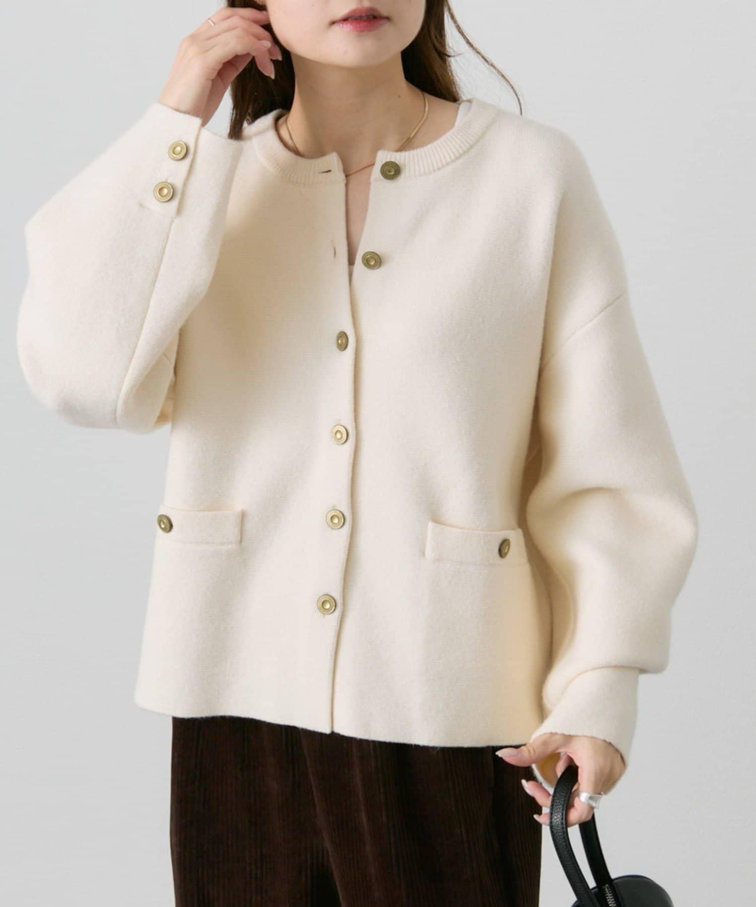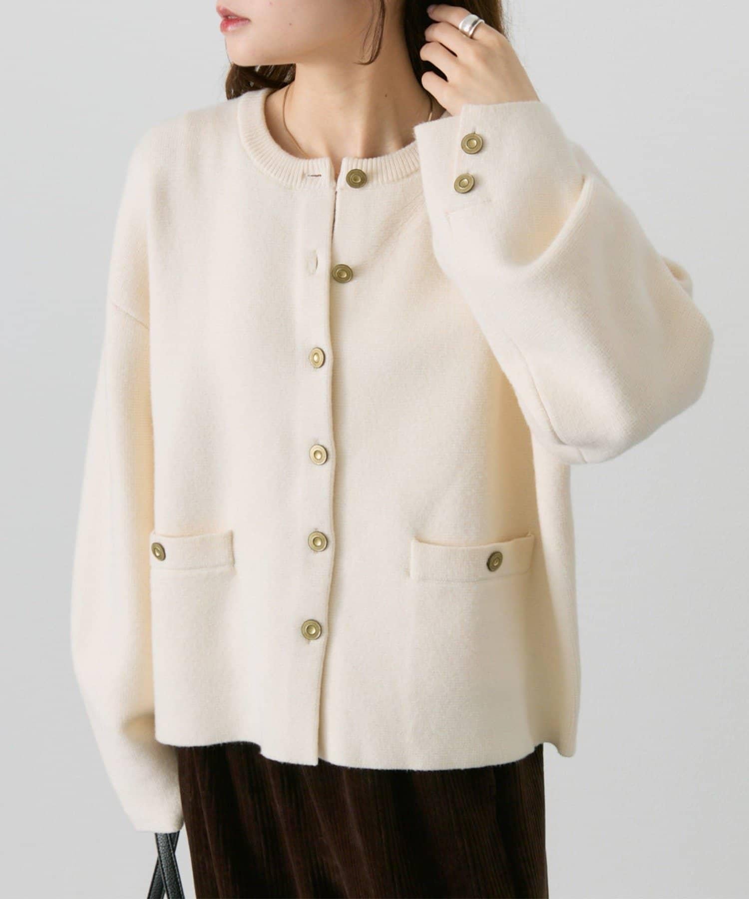像夾克一樣的開衫,配以有品位的金色紐扣。