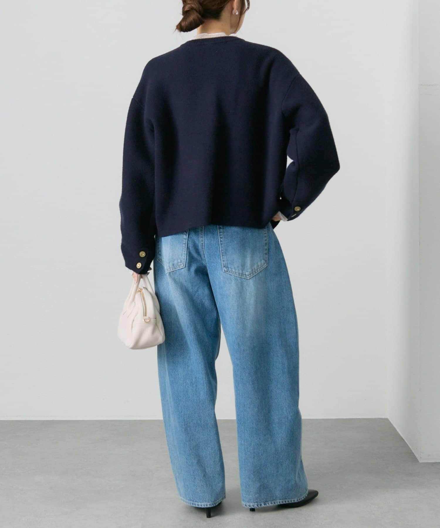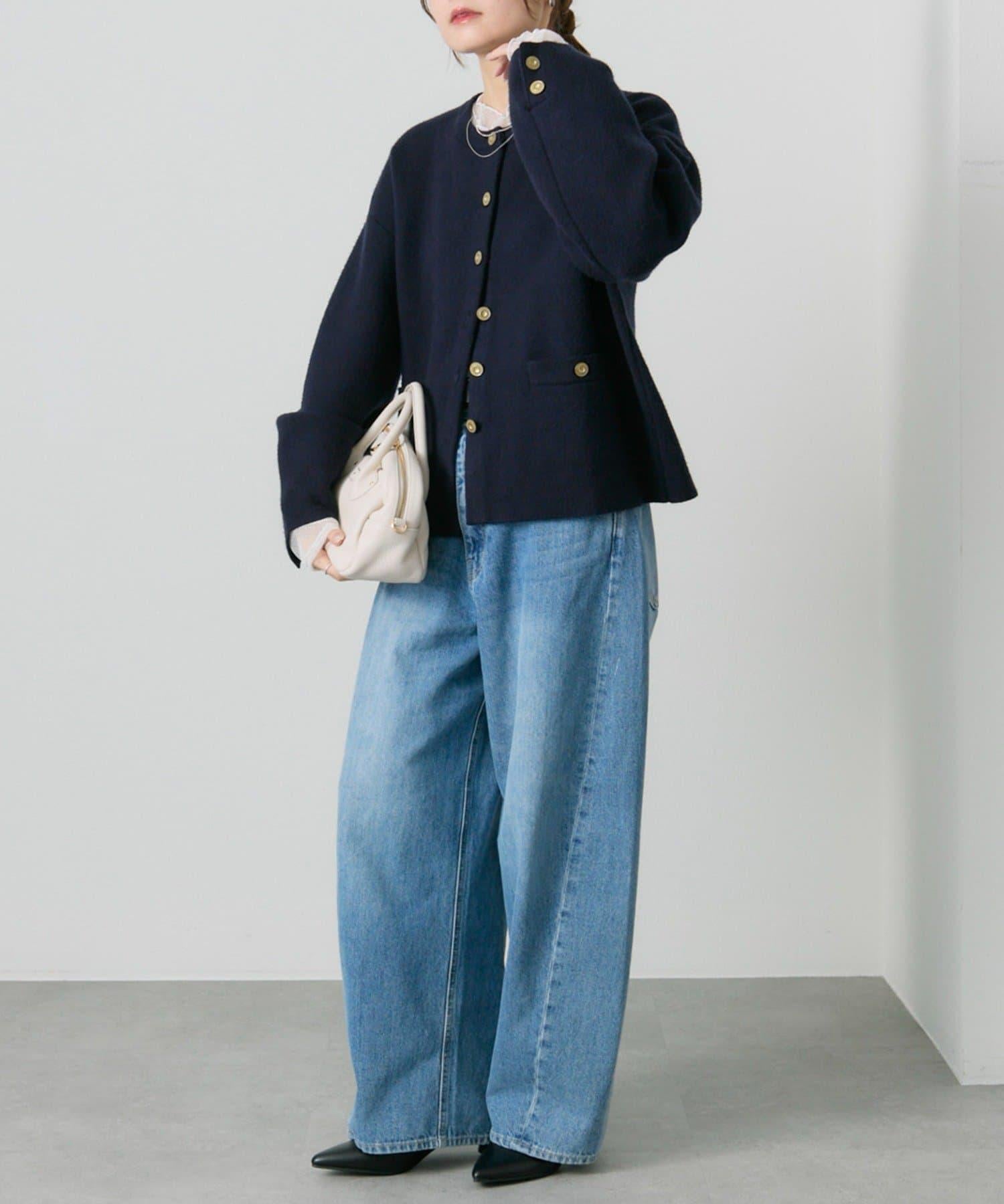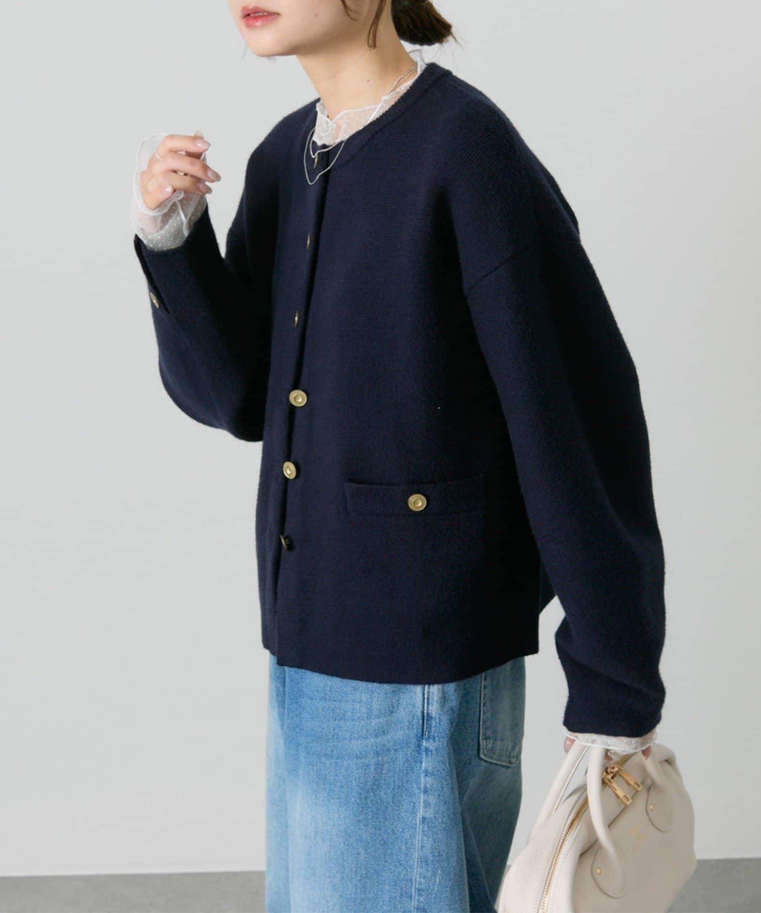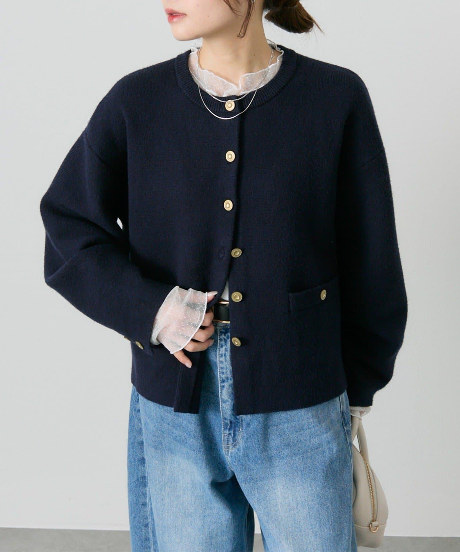 像夾克一樣的開衫,配以有品位的金色紐扣。