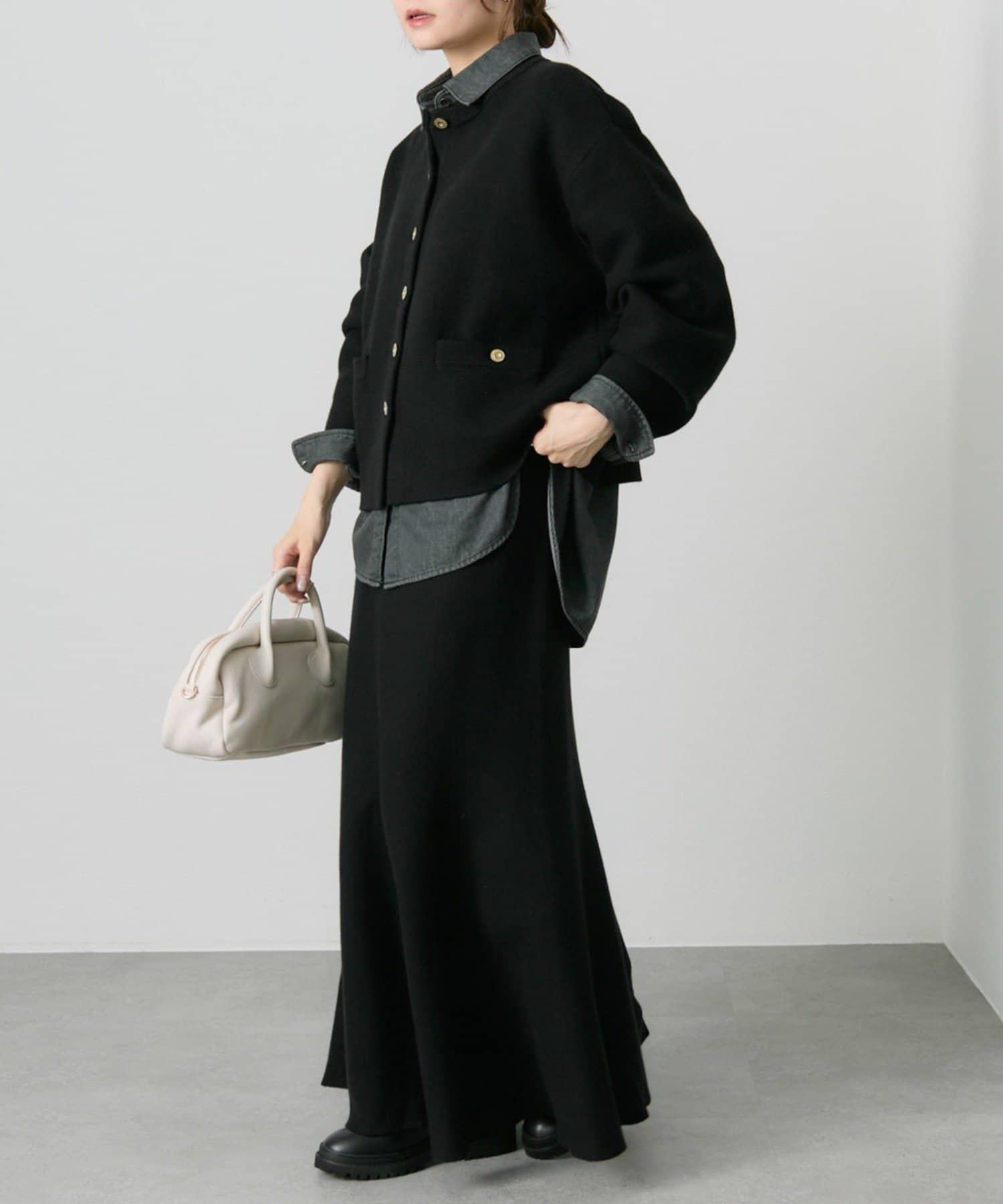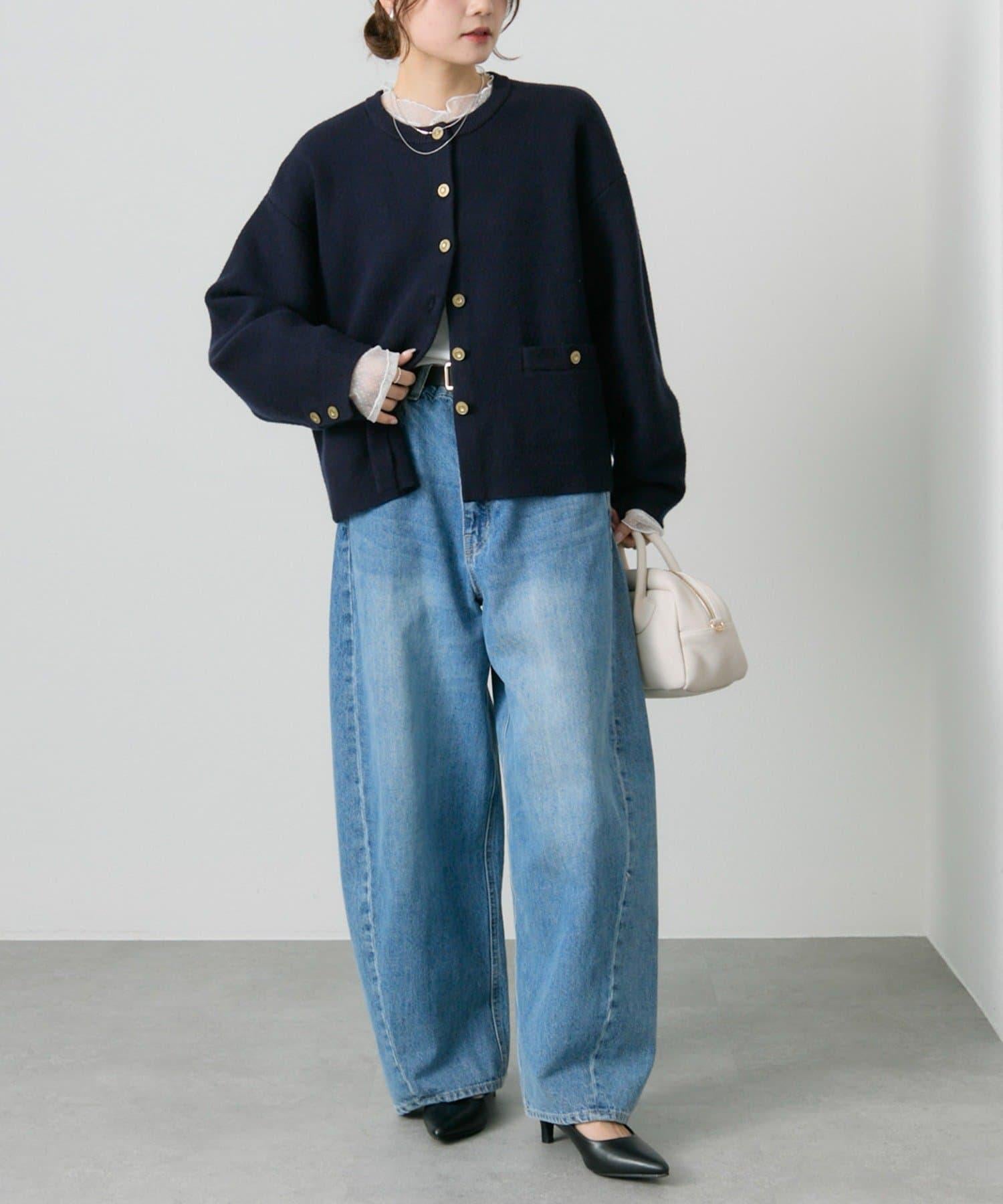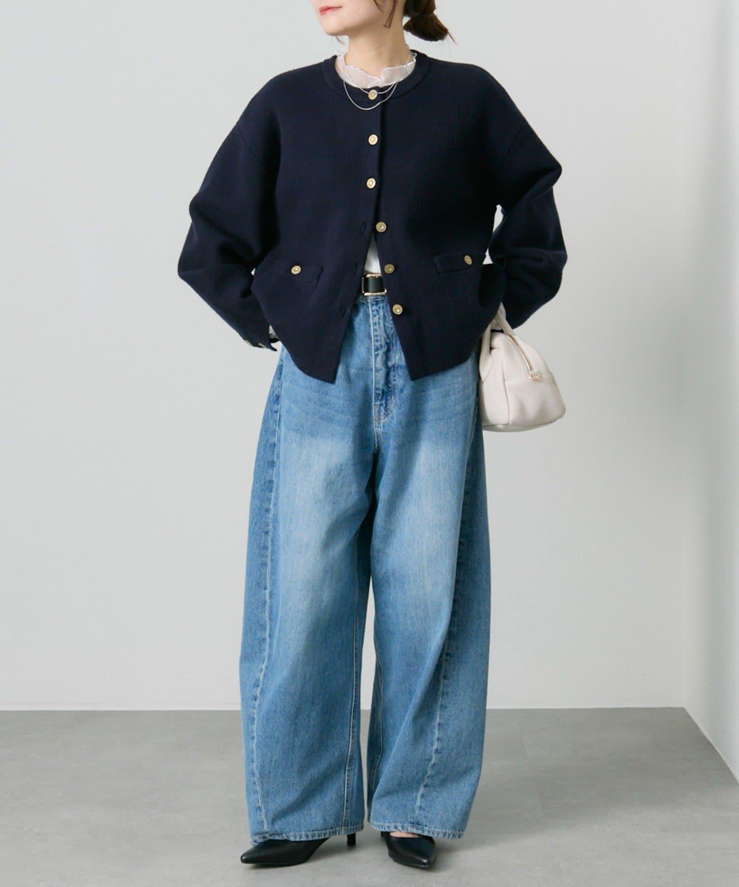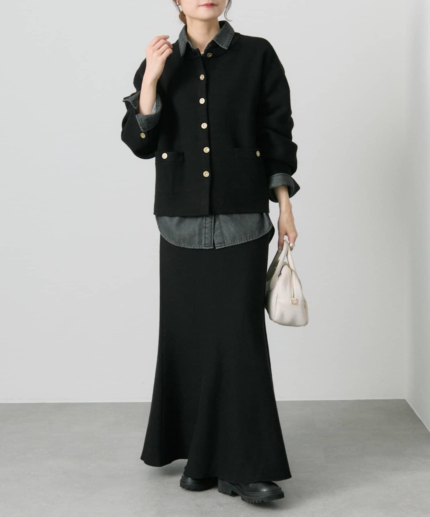 像夾克一樣的開衫,配以有品位的金色紐扣。