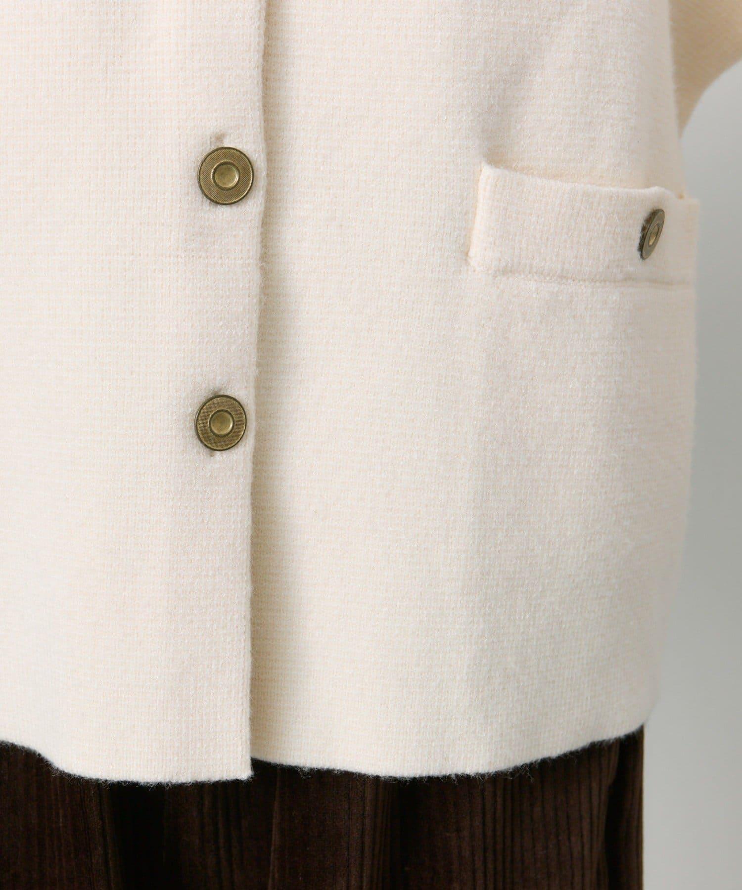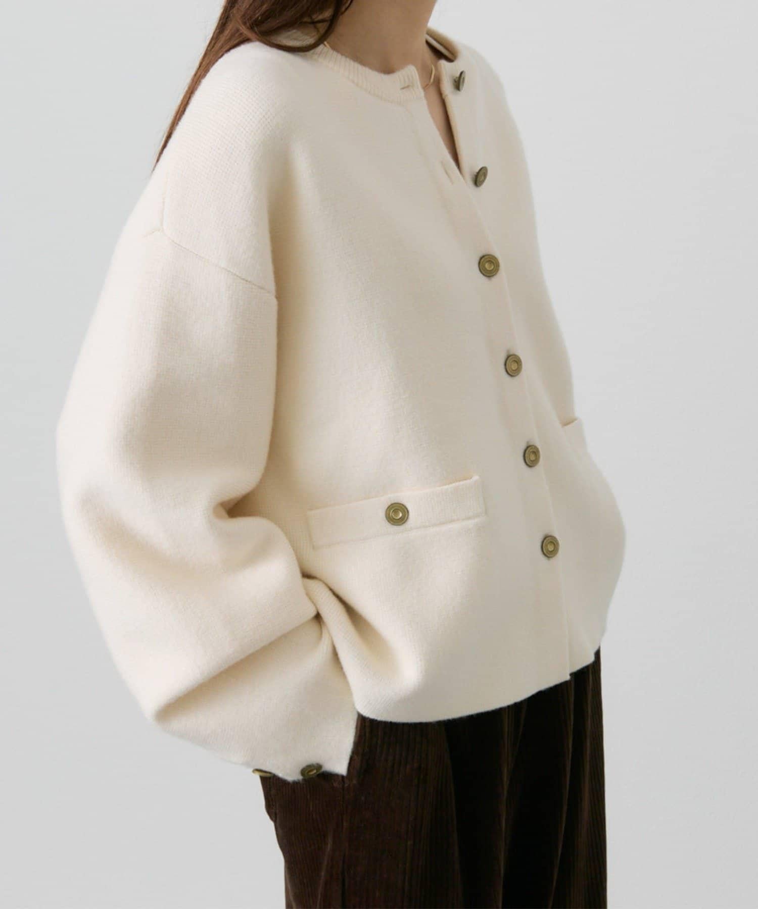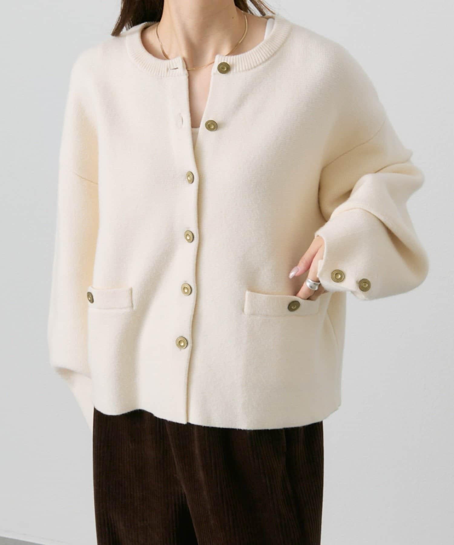 正面帶有金色紐扣的針織開衫非常漂亮。