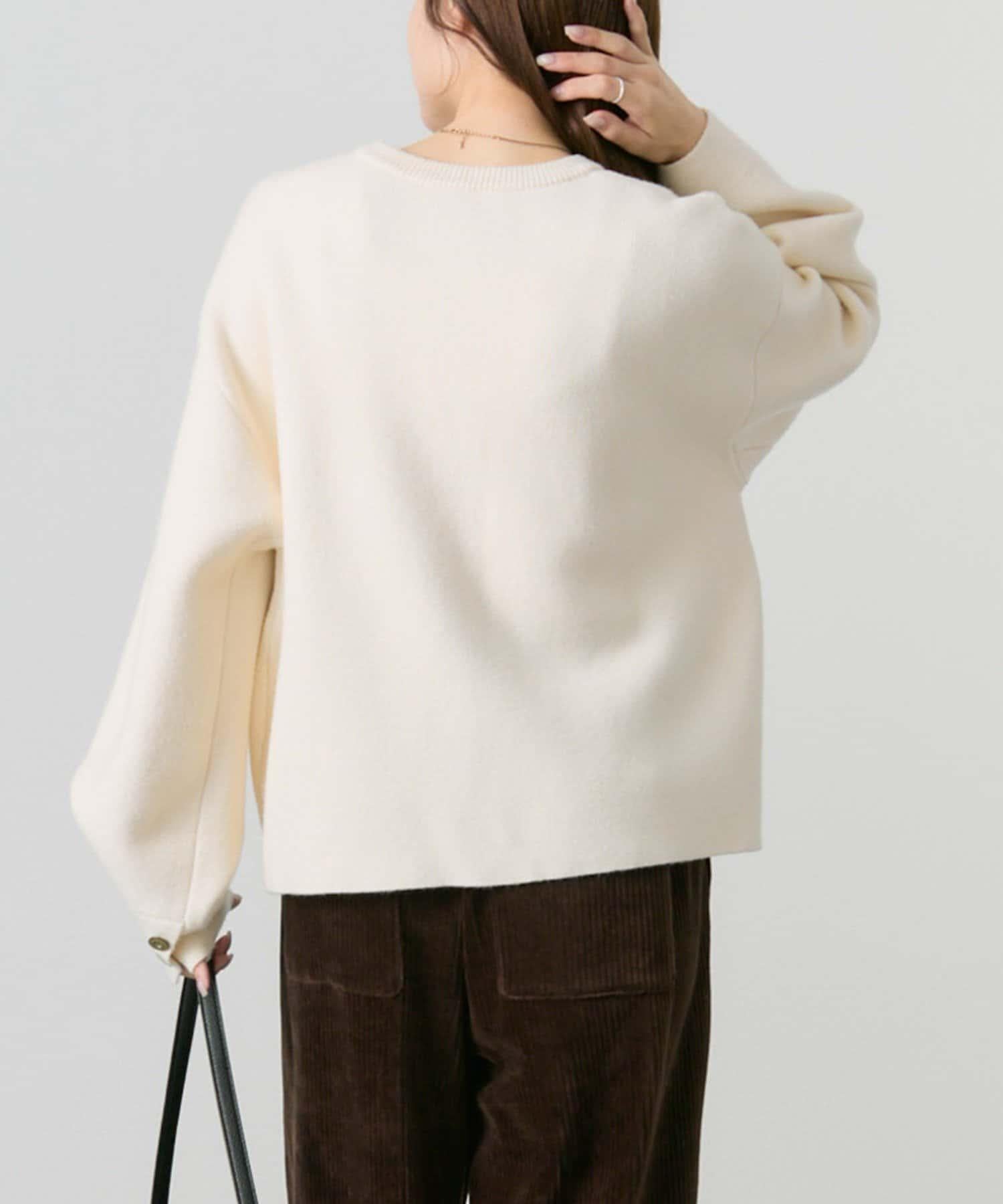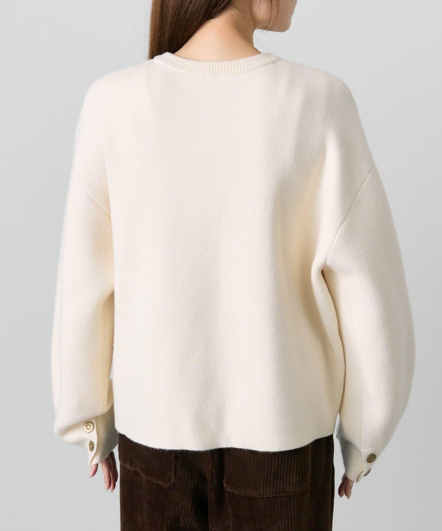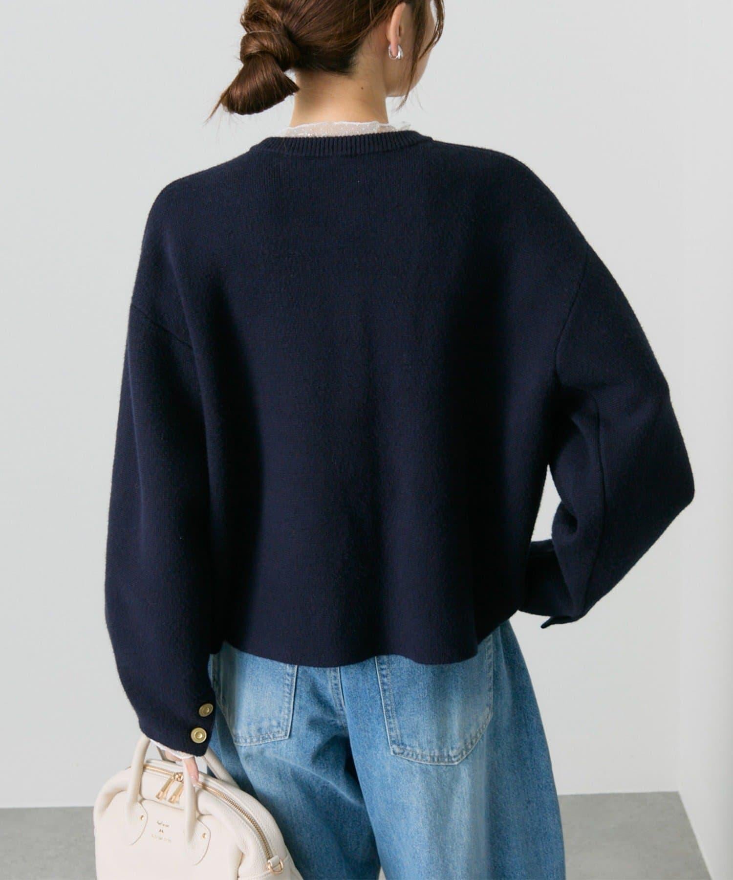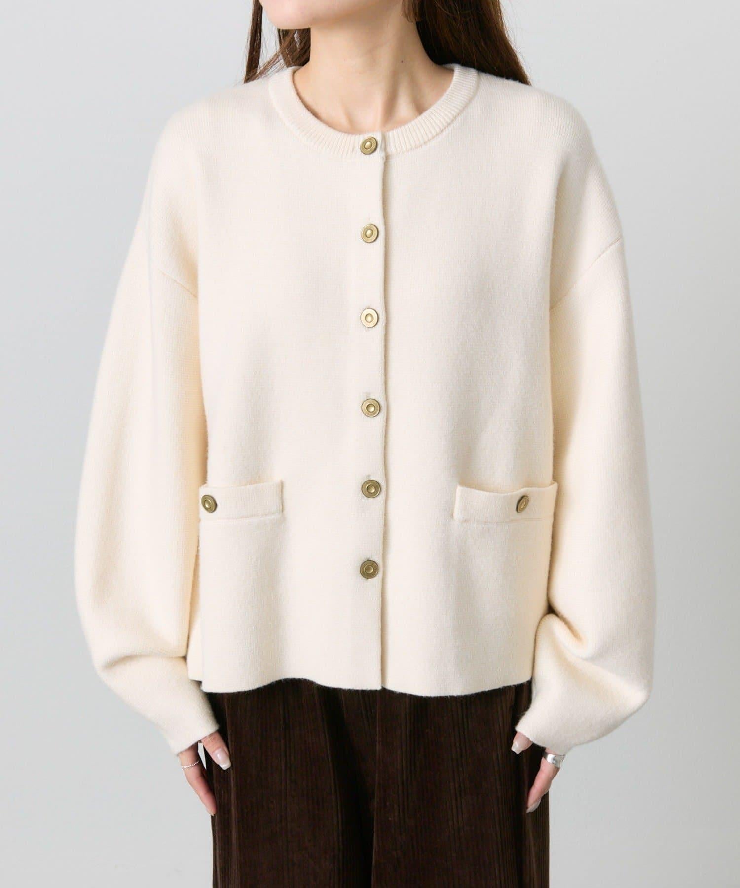 正面帶有金色紐扣的針織開衫非常漂亮。