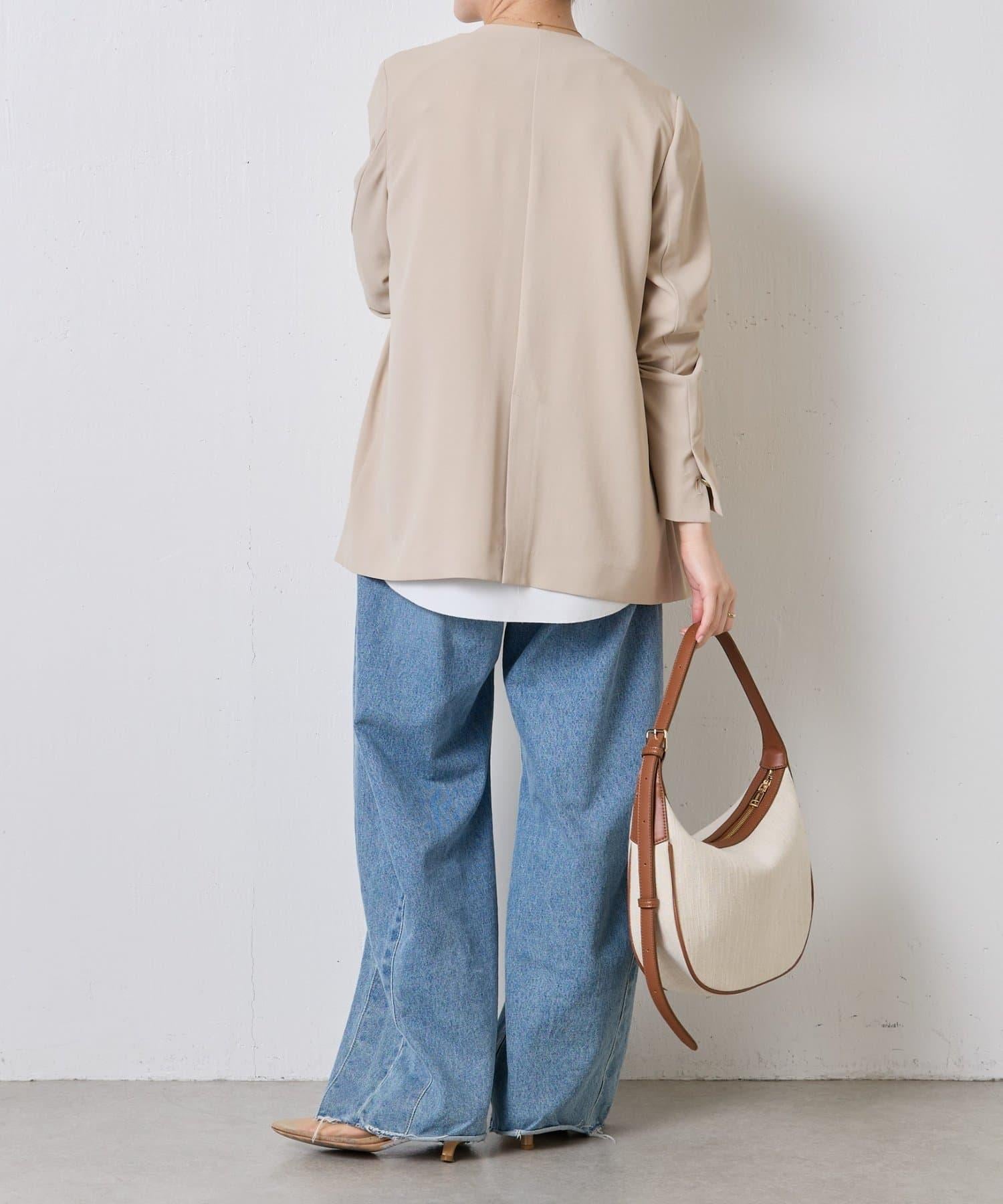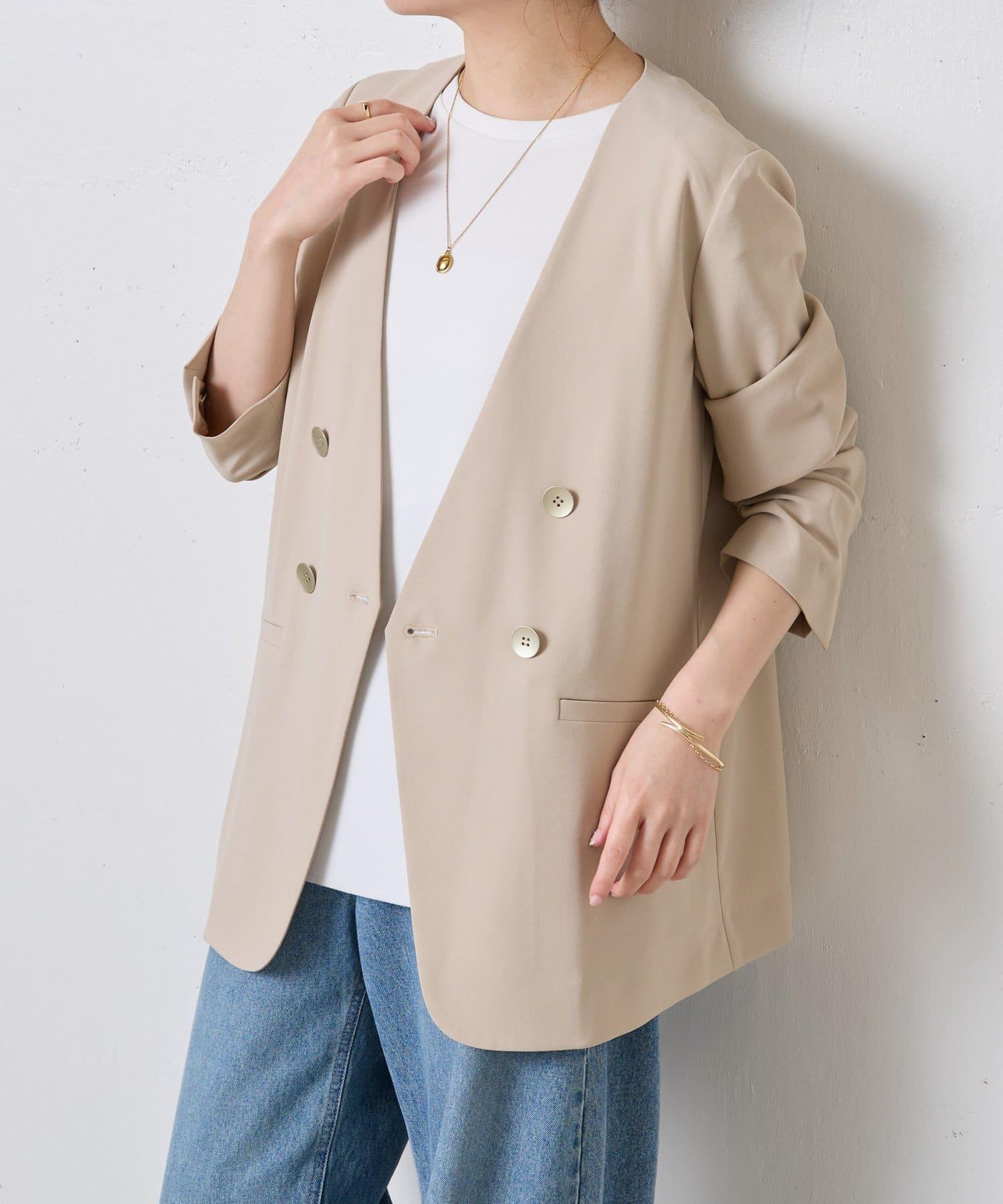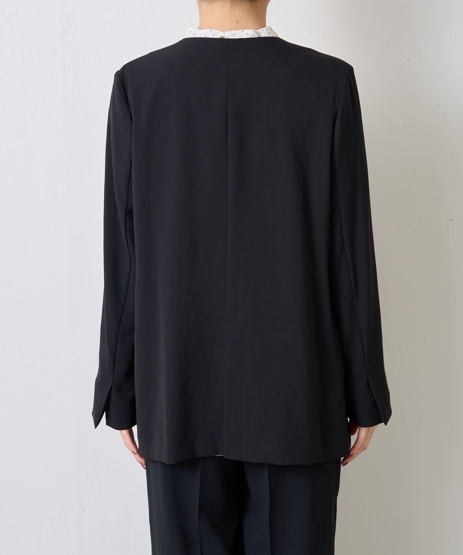 不緊身的無領夾克,可以像開衫一樣穿著。