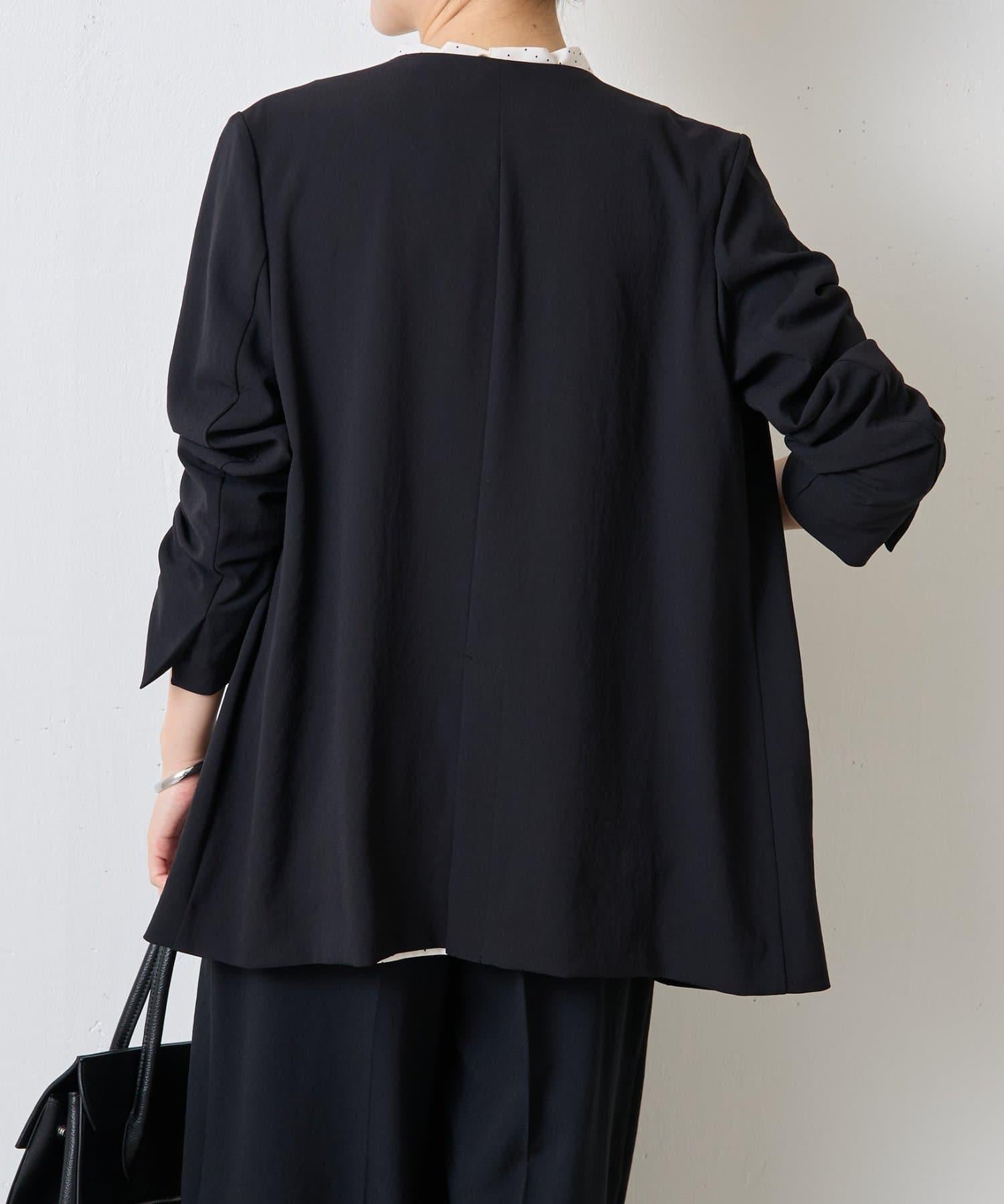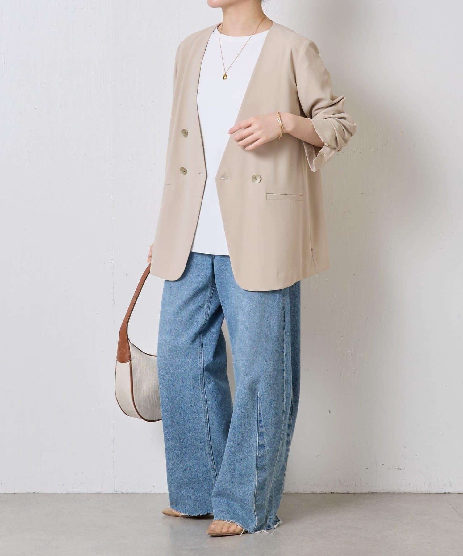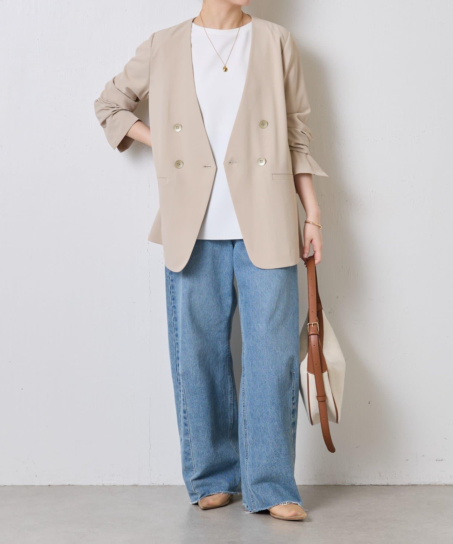 不緊身的無領夾克,可以像開衫一樣穿著。