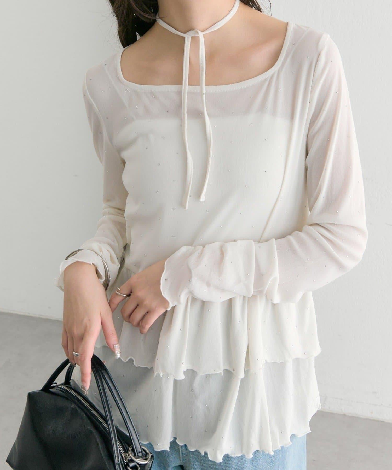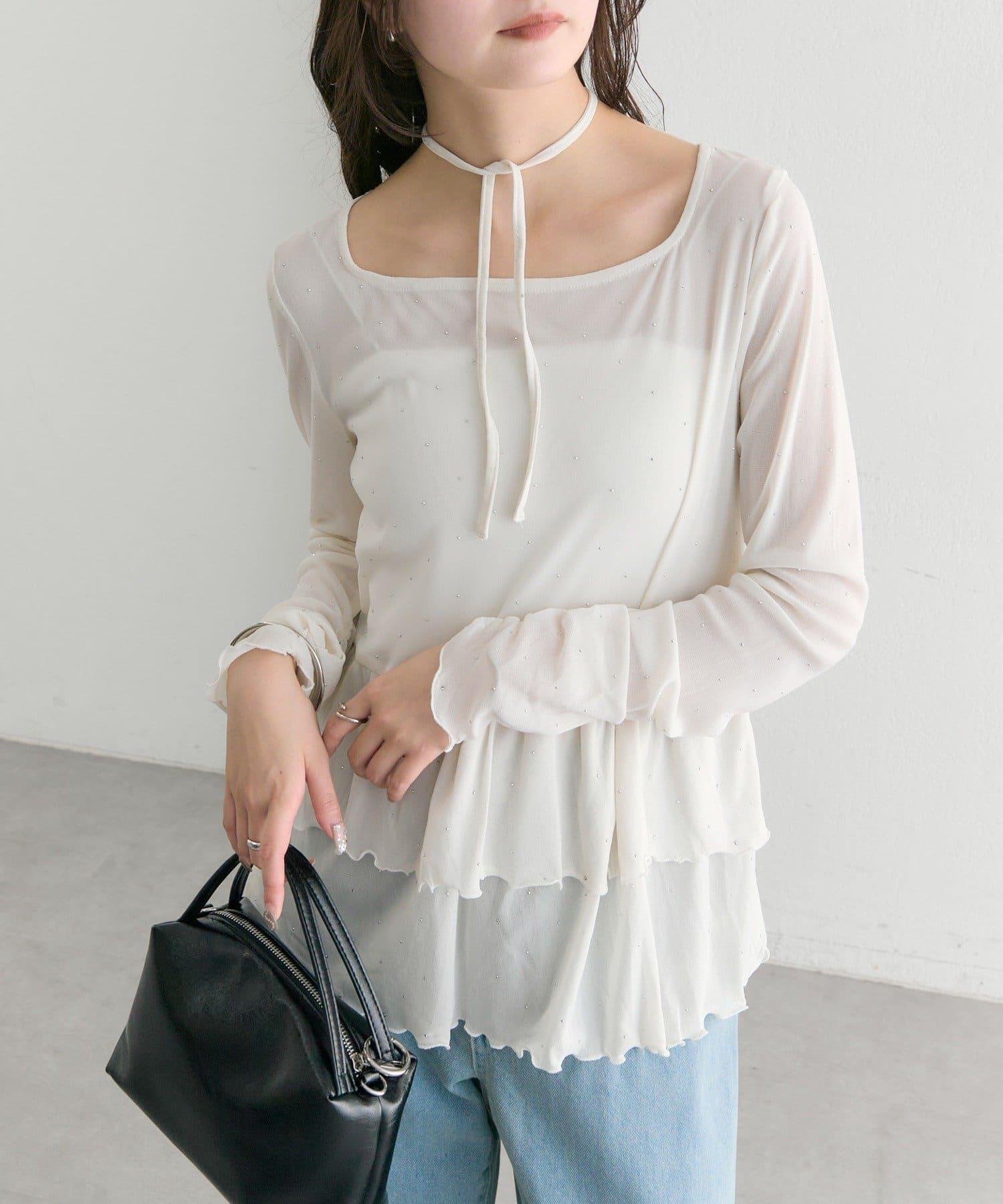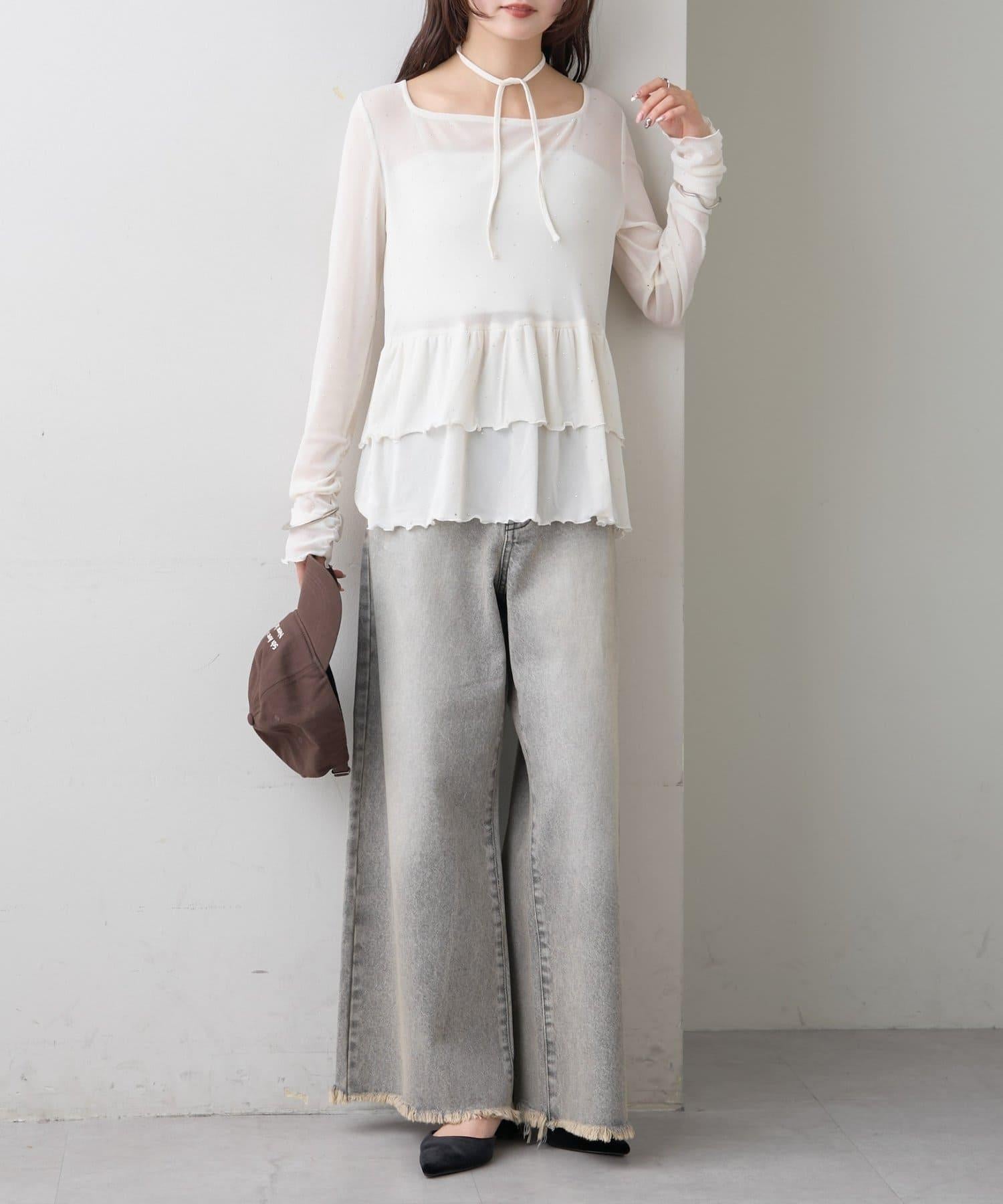 層疊的下襬設計讓它有一種可愛的蔓延感,因此我們建議下裝採用簡潔明快的剪裁。