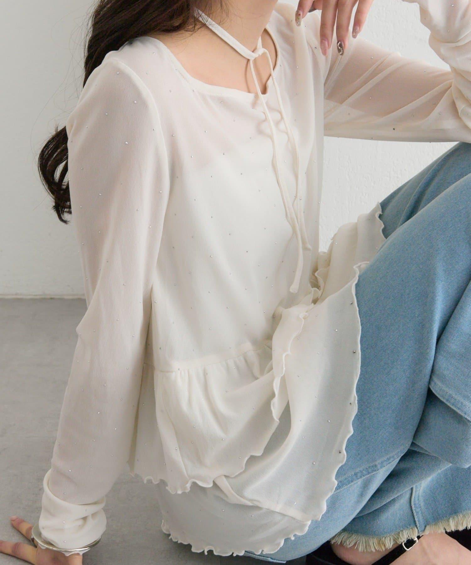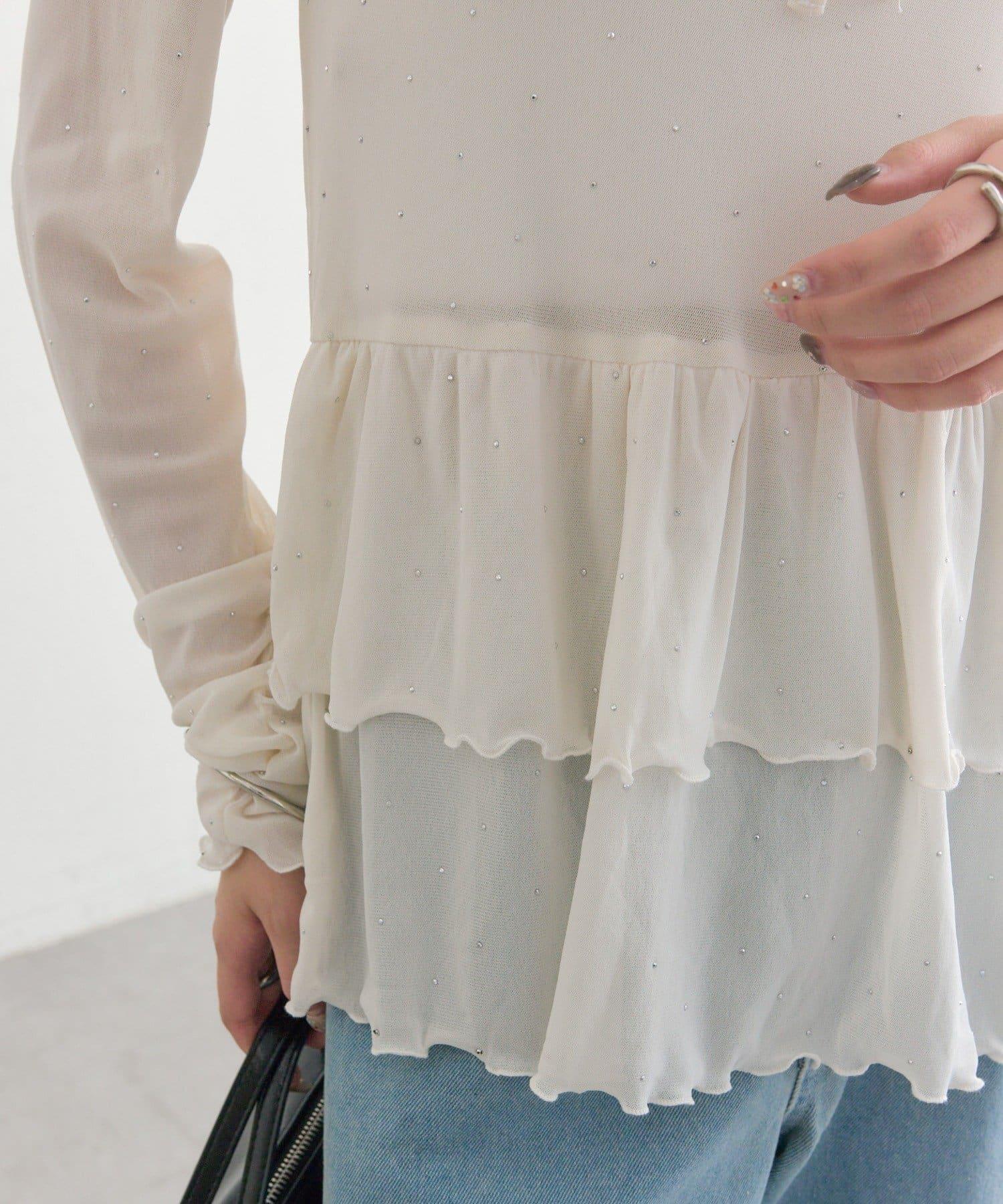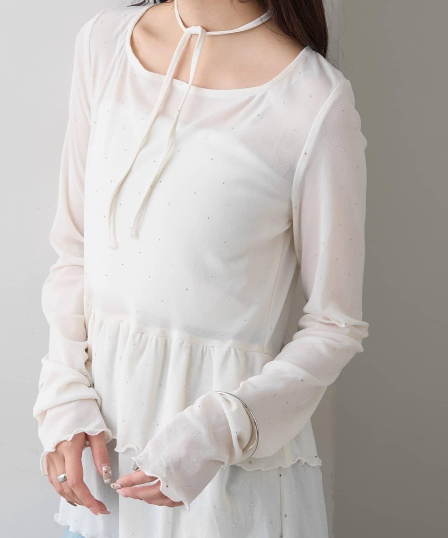 新色水鑽波點層疊下襬套頭衫