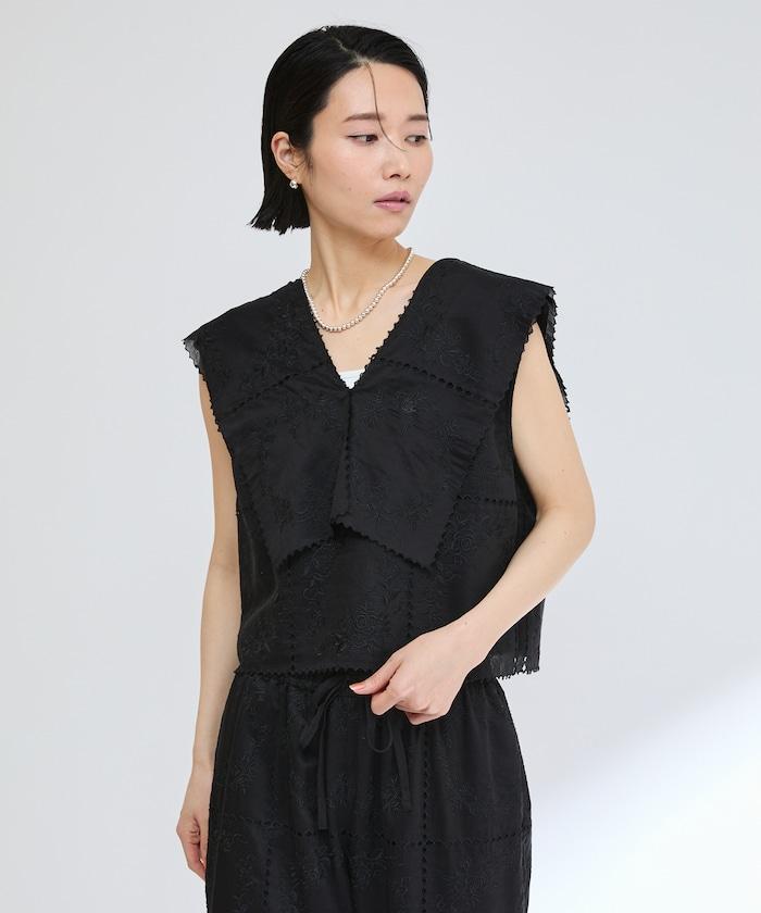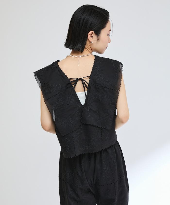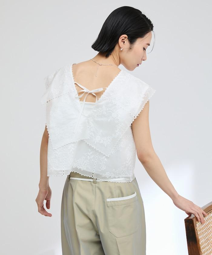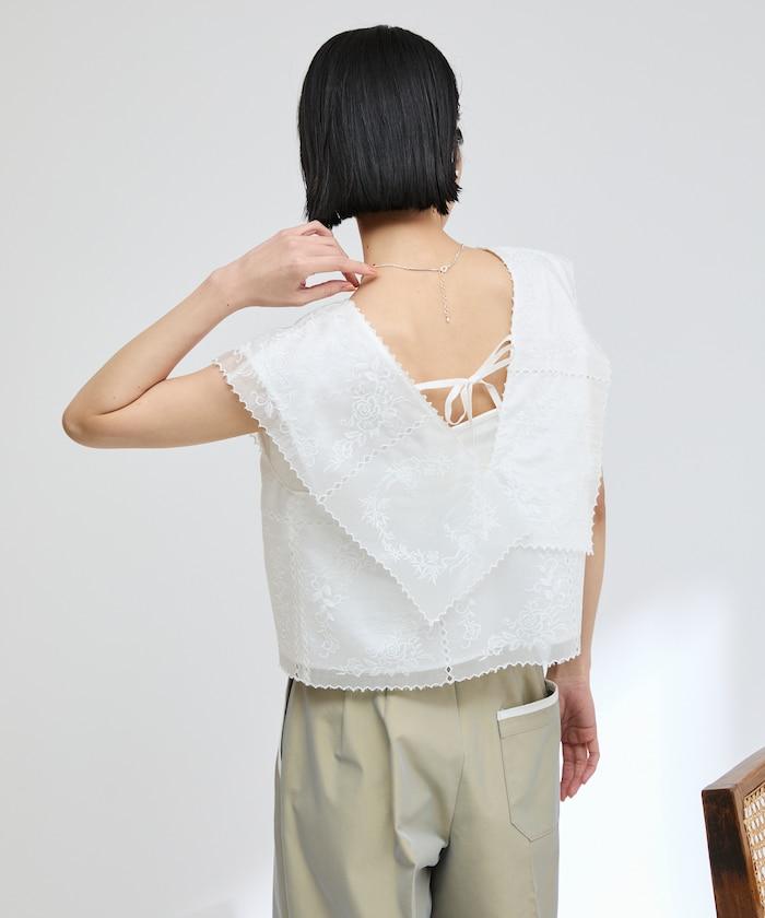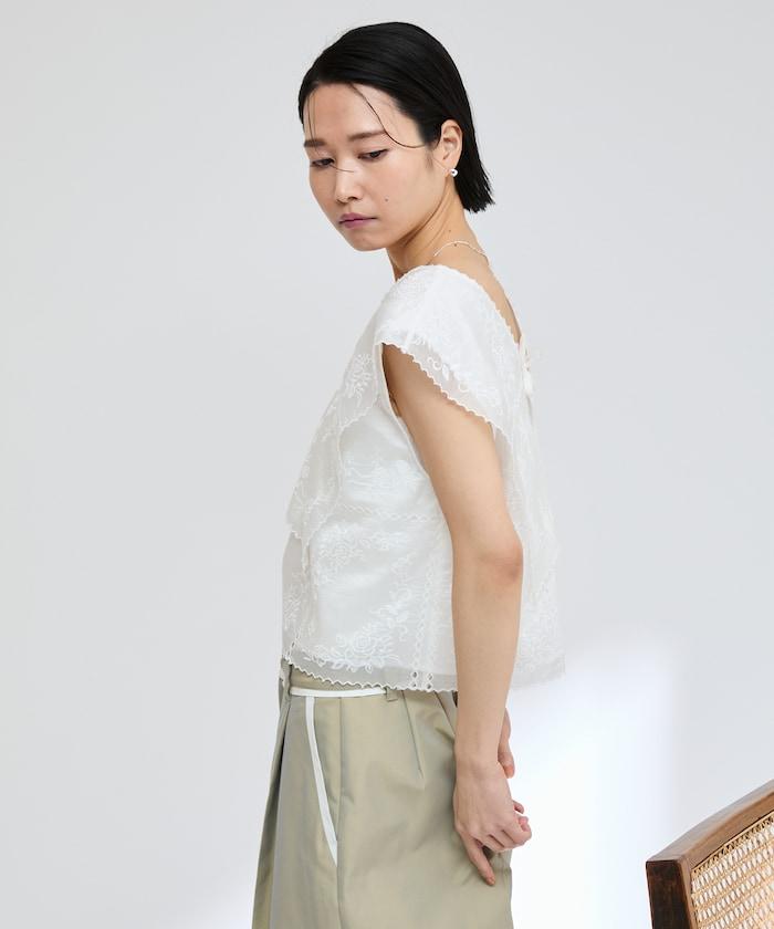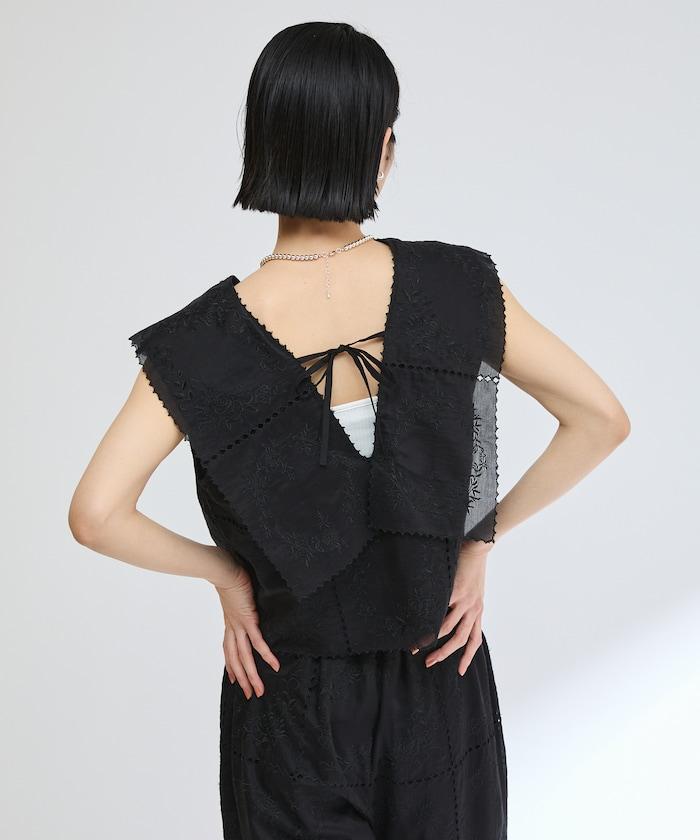 一款採用透視面料製成的奢華上衣,上面繡有獨具匠心的刺繡。