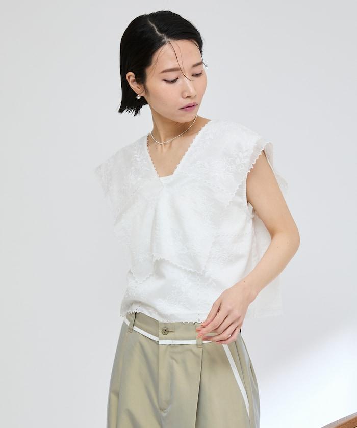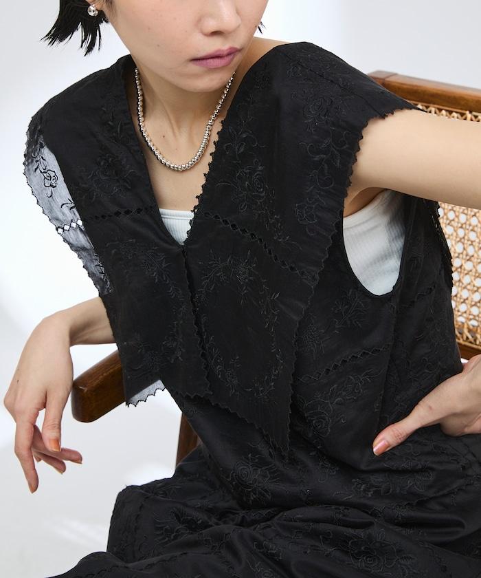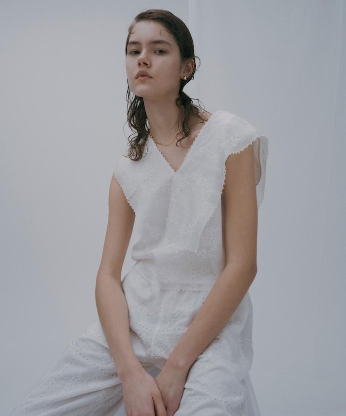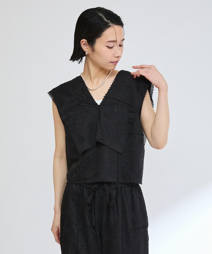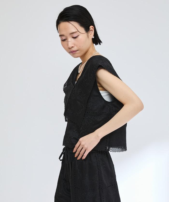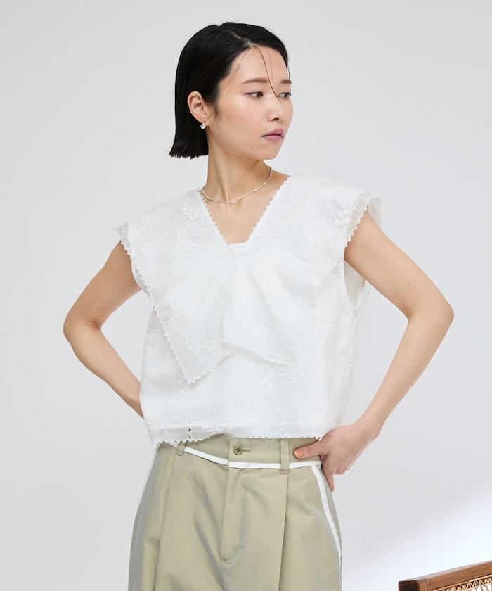 一款採用透視面料製成的奢華上衣,上面繡有獨具匠心的刺繡。