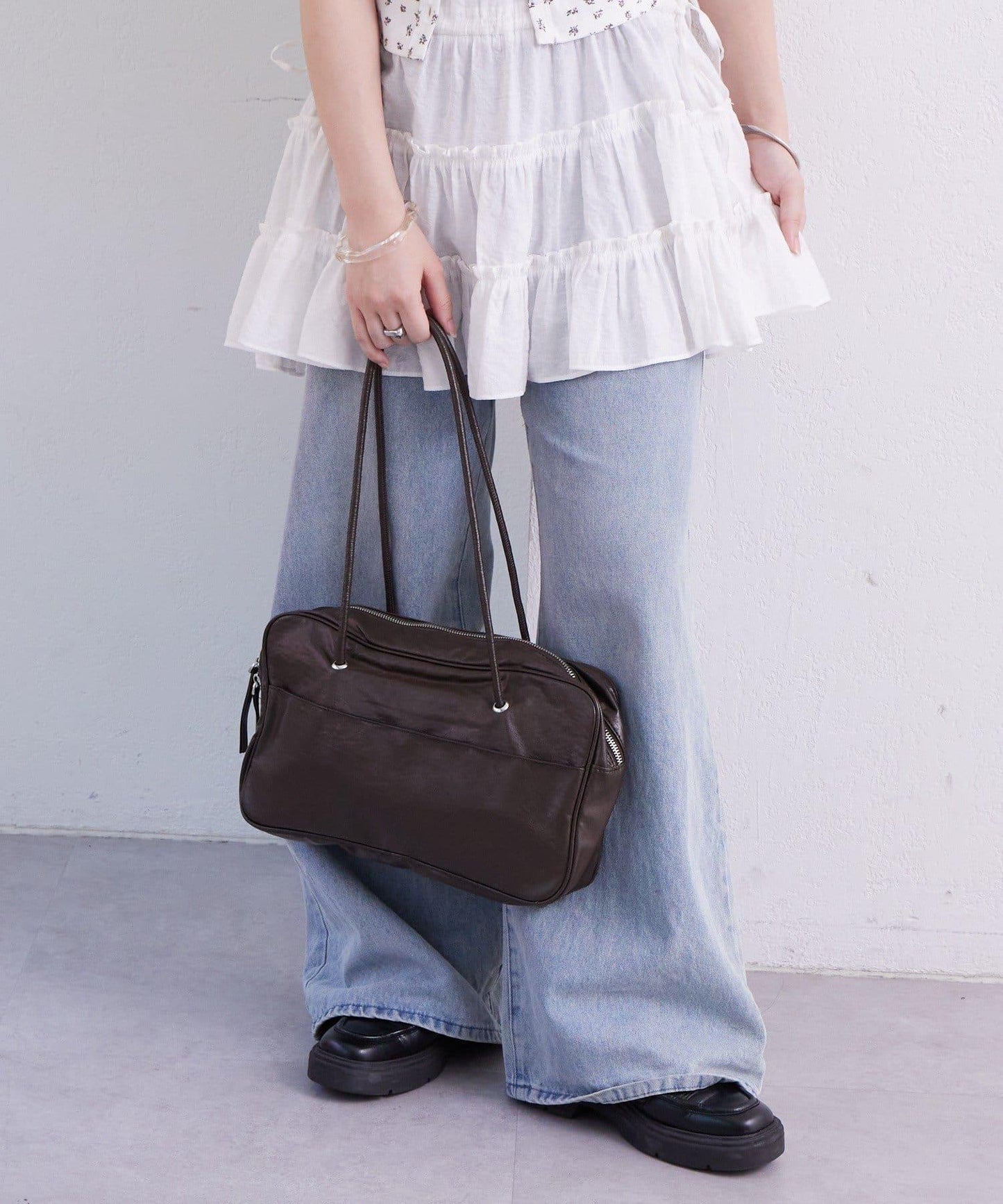 將這款包包與設計感十足的上衣和牛仔褲搭配,打造甜美而辛辣的造型。