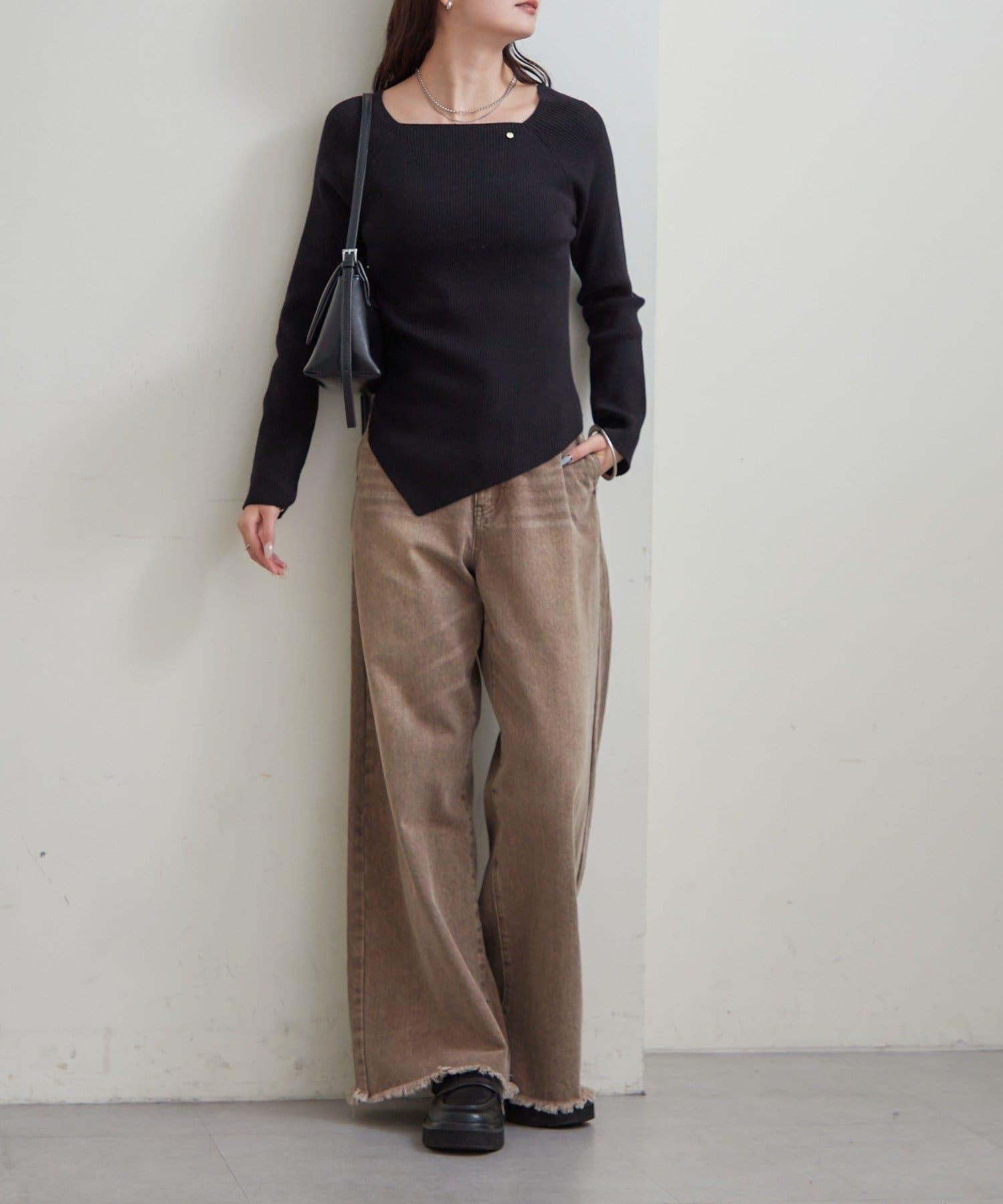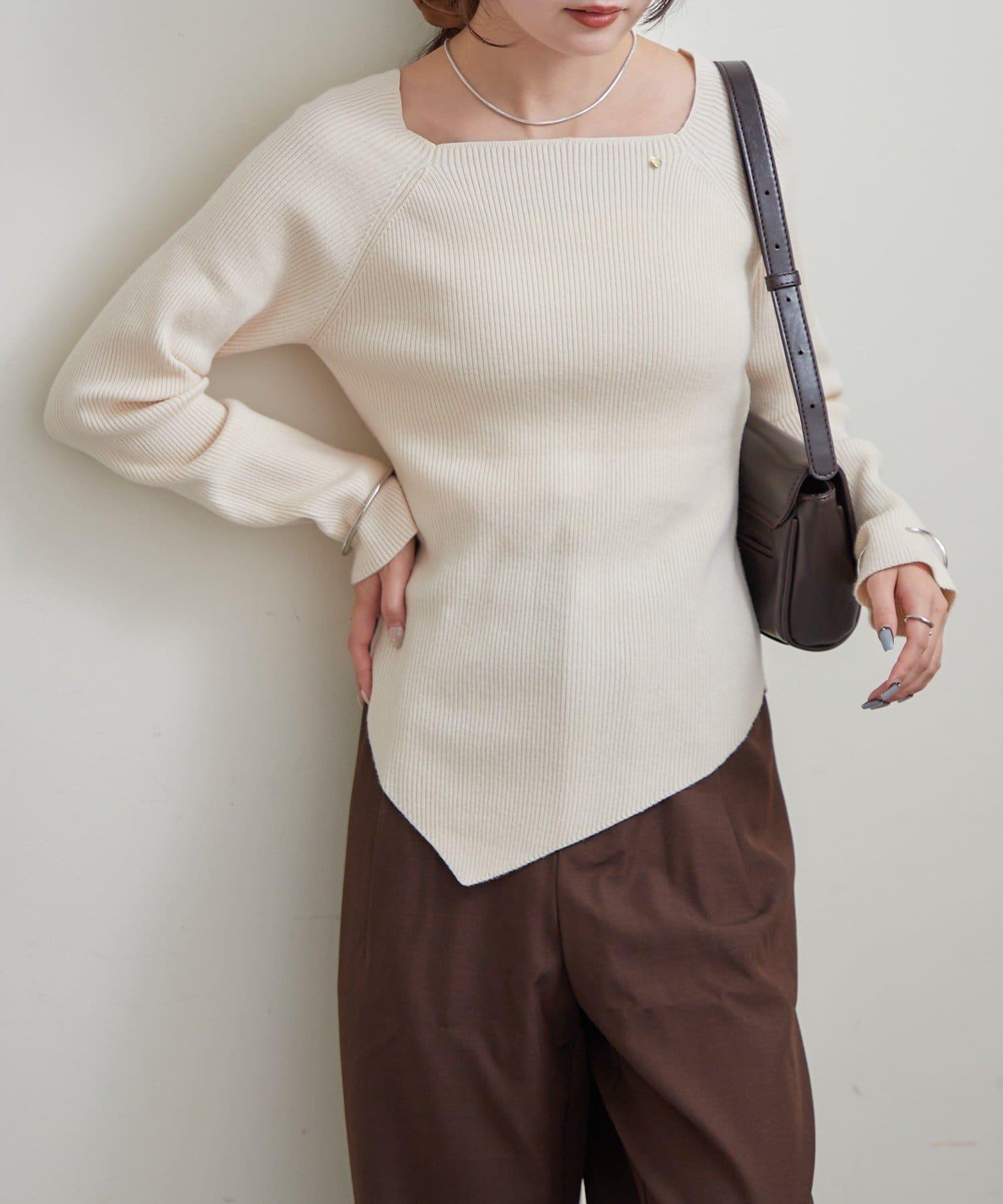 羅紋針織衫,方領設計簡潔大方,更顯女性柔美。