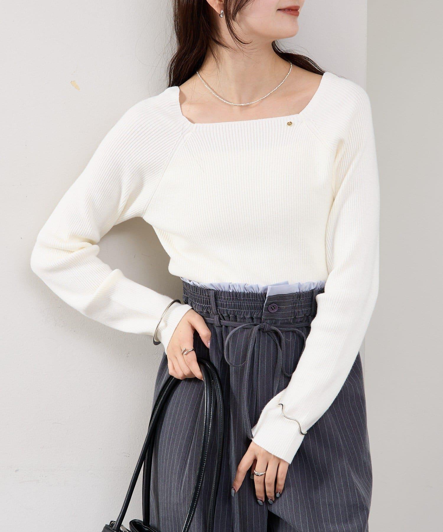 羅紋針織方領設計,讓你的肩部看起來美麗動人!