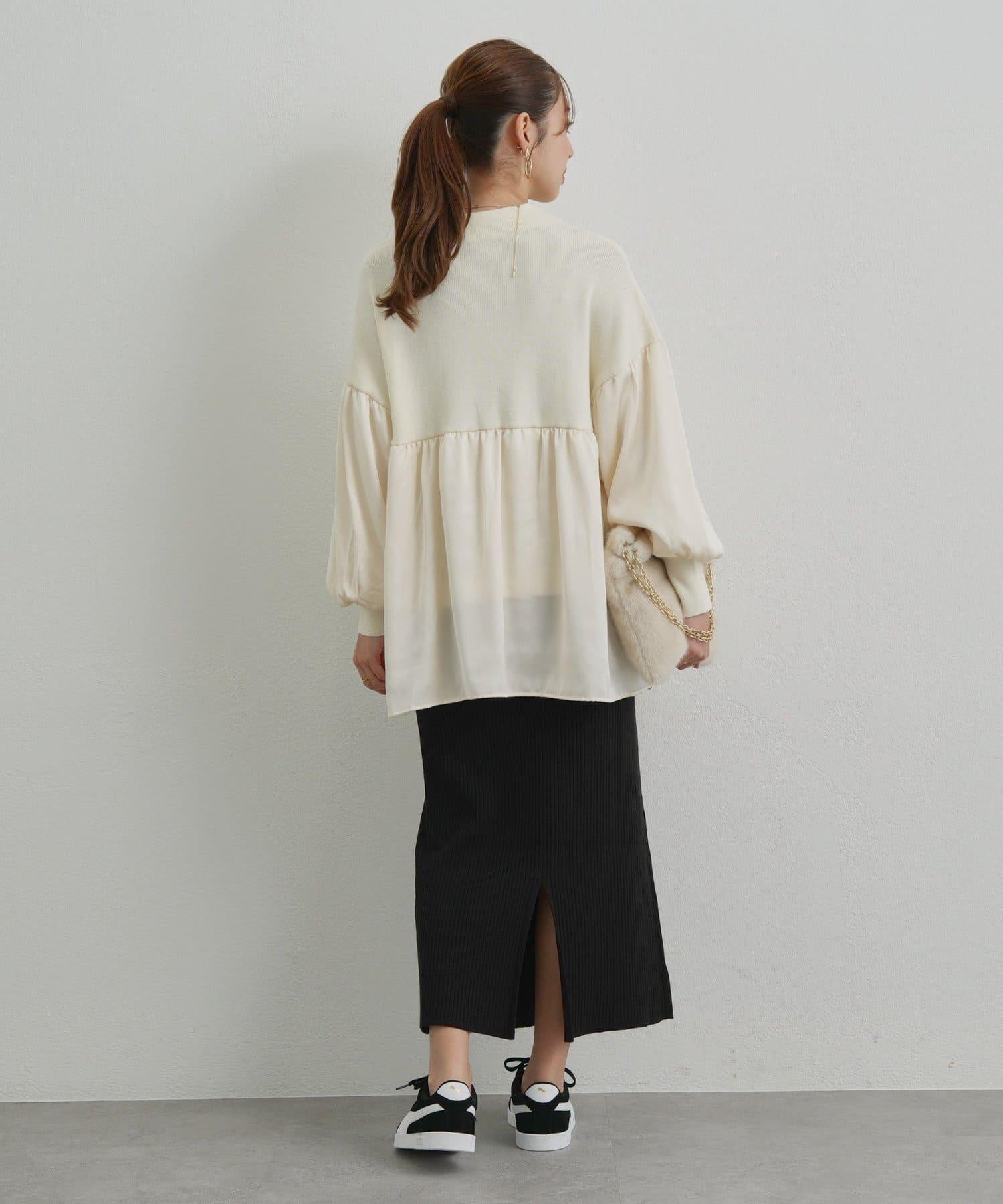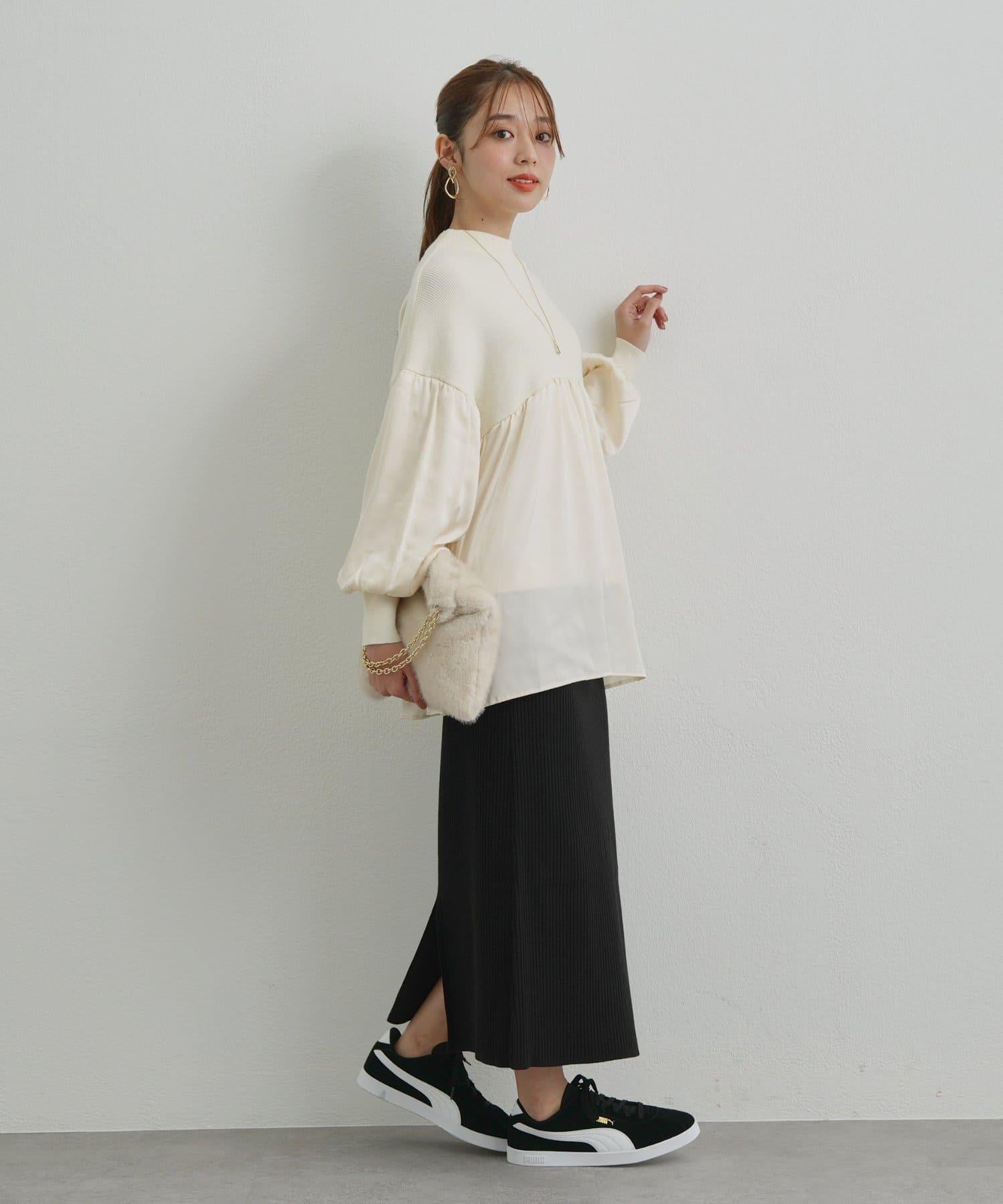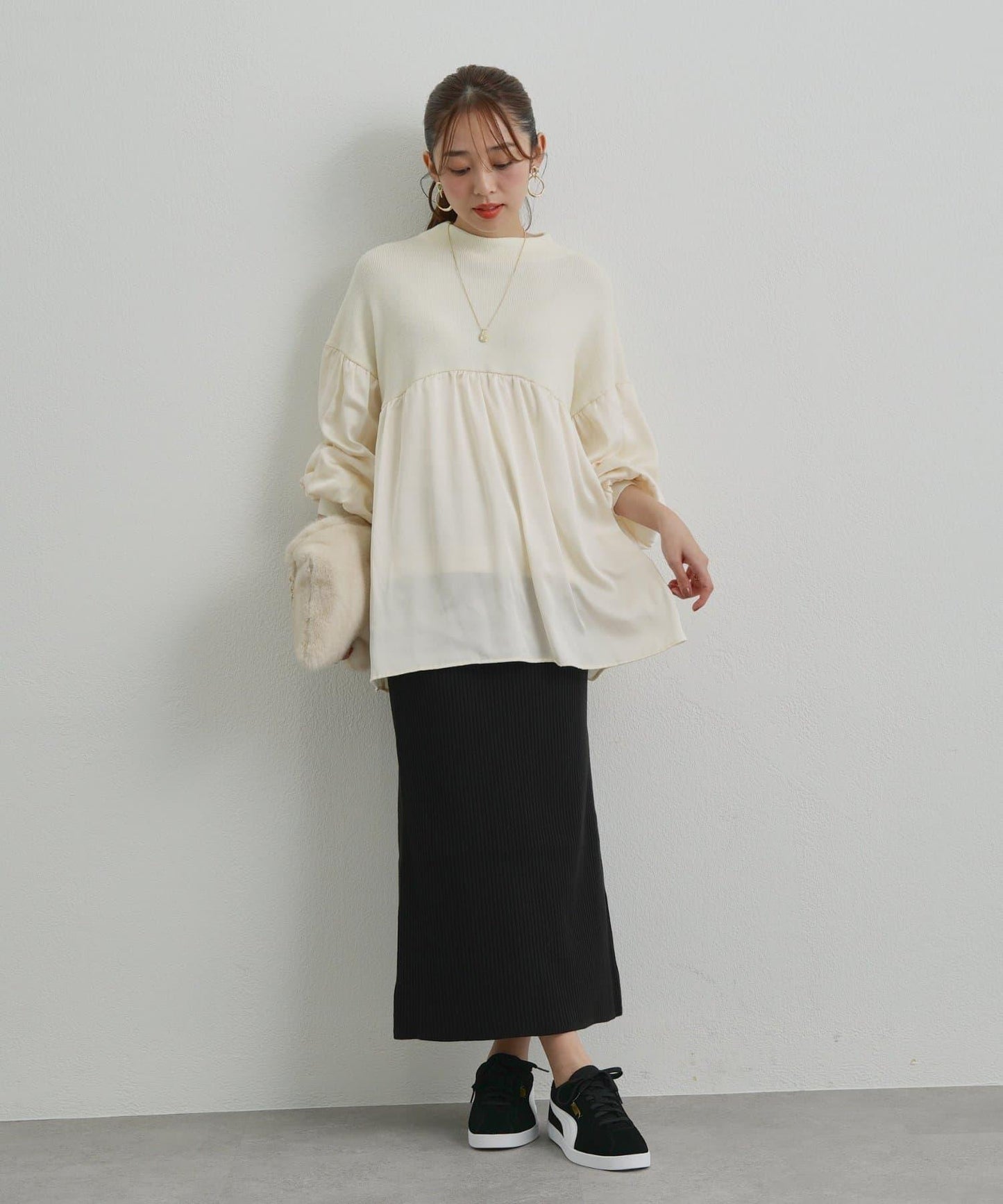 搭配緊身裙,更能襯托出上衣的輪廓。