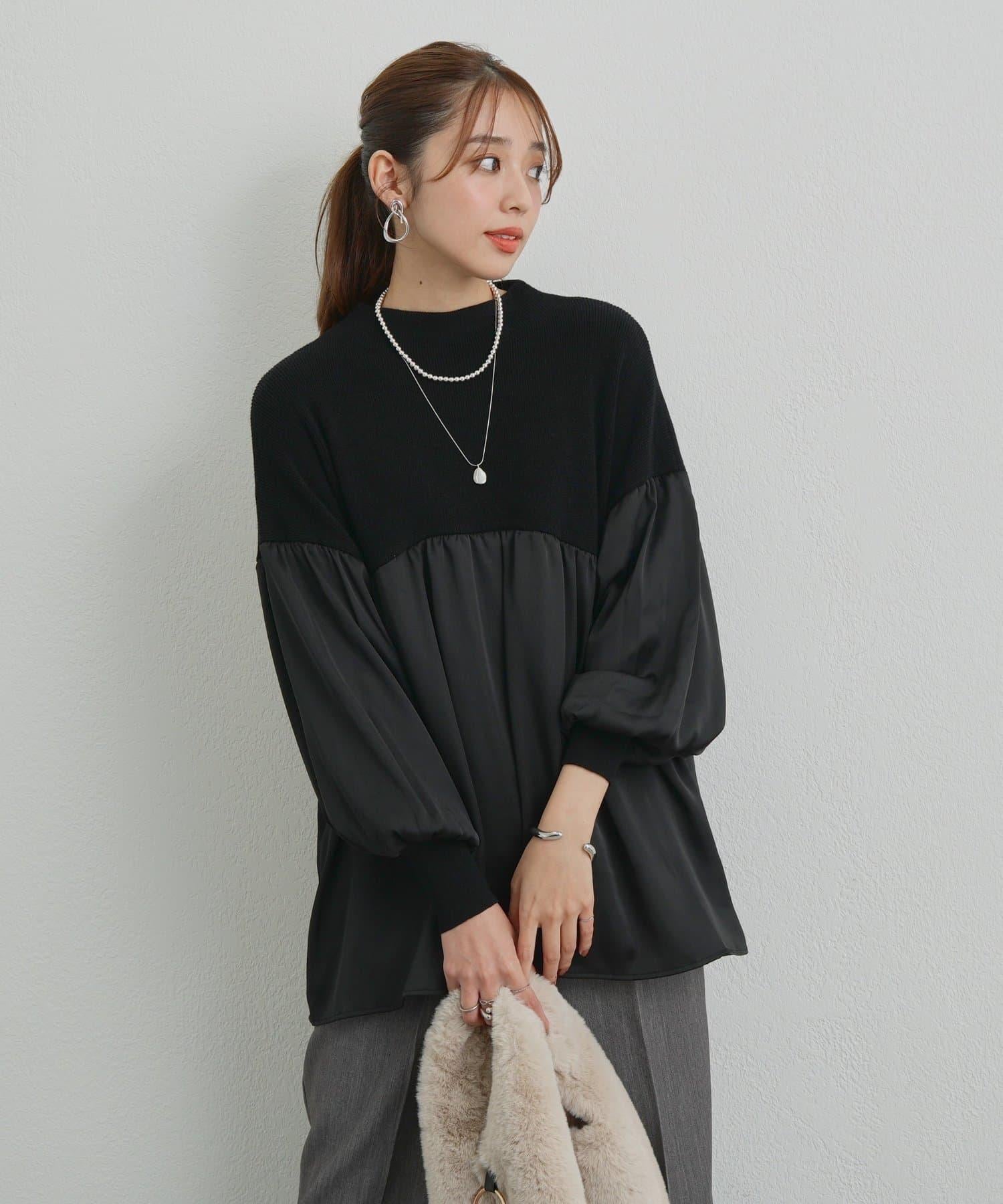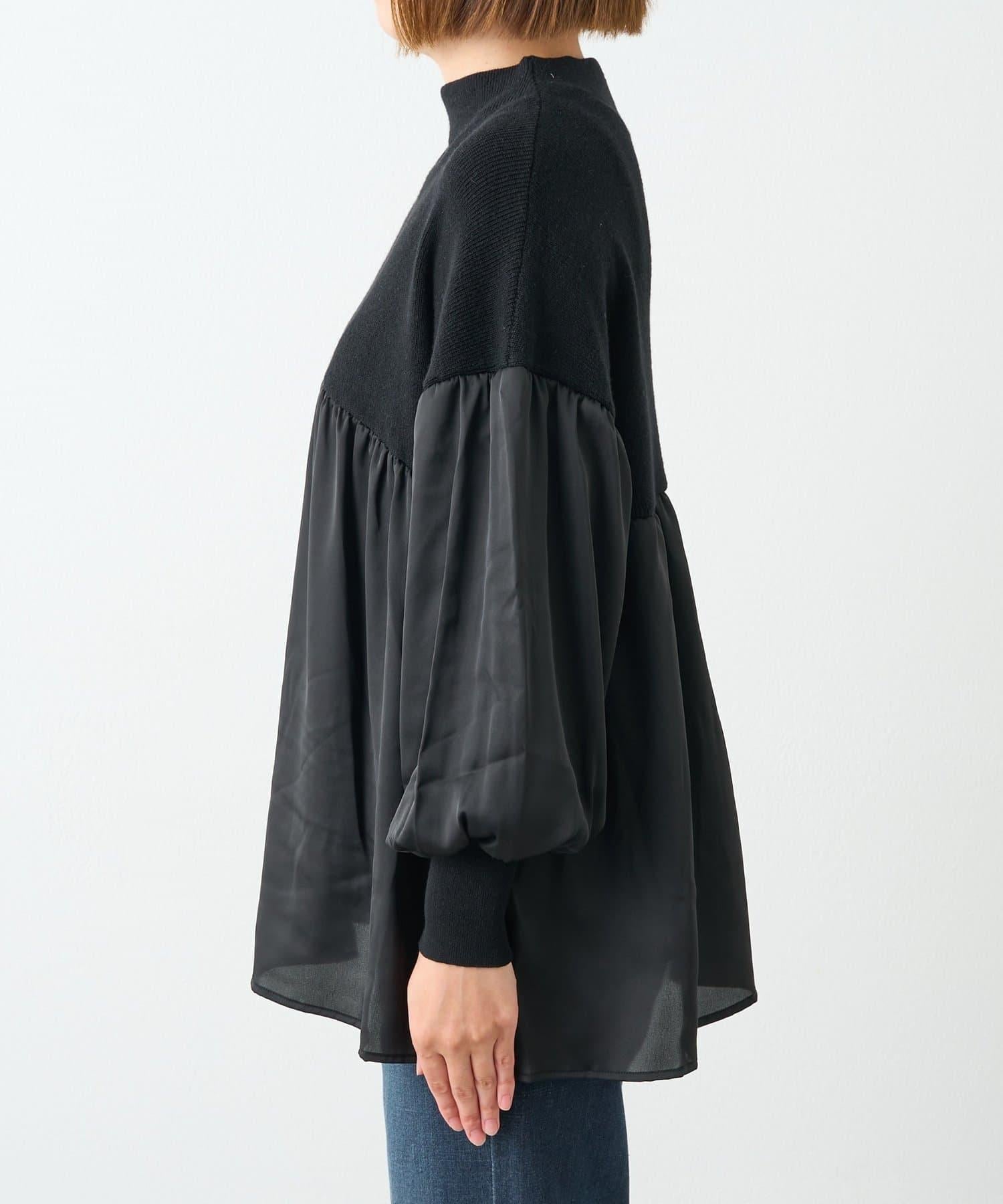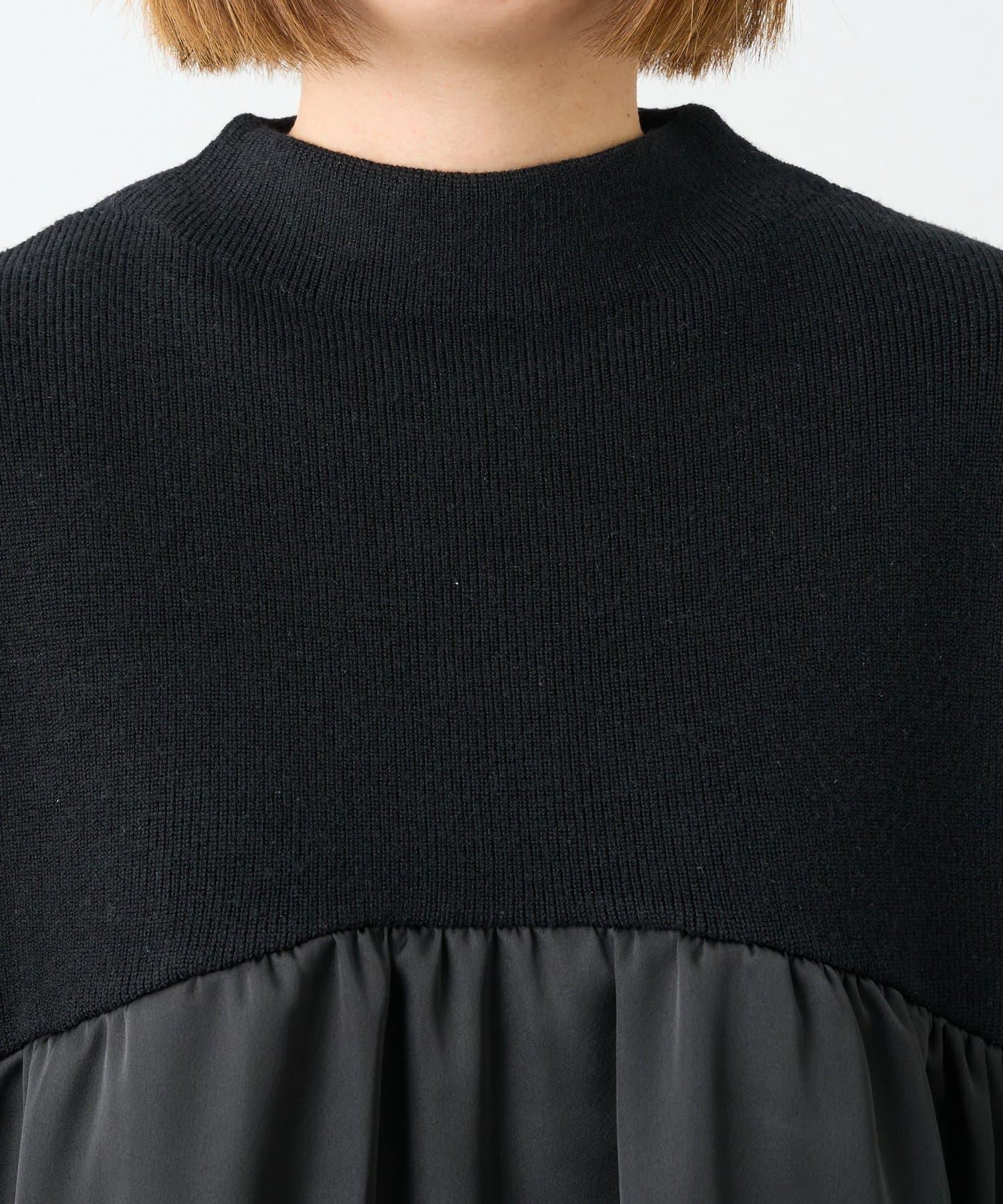 這款設計上衣由不同材質組合而成,給人舒適的印象。