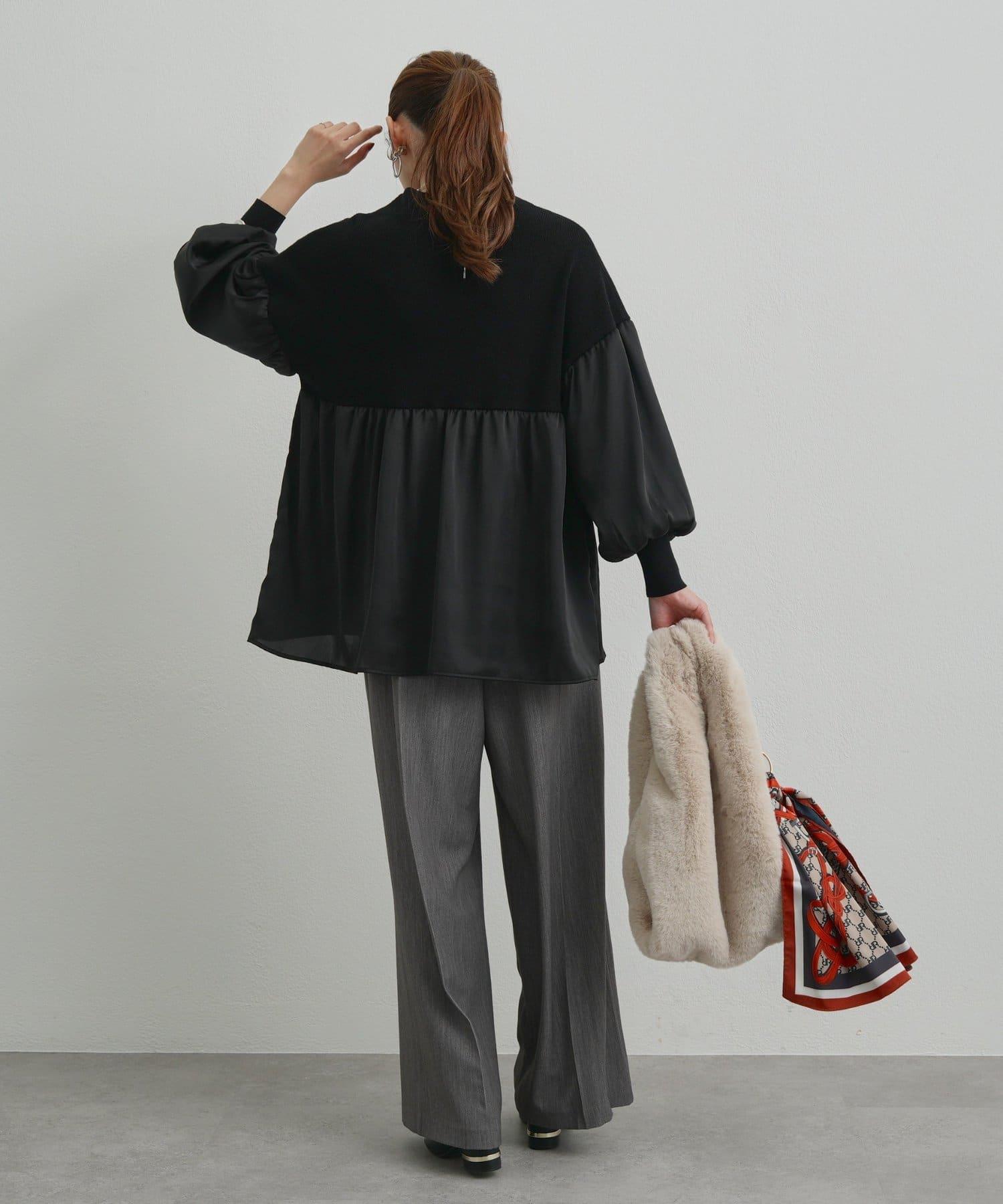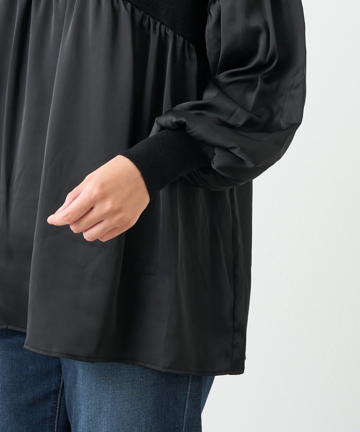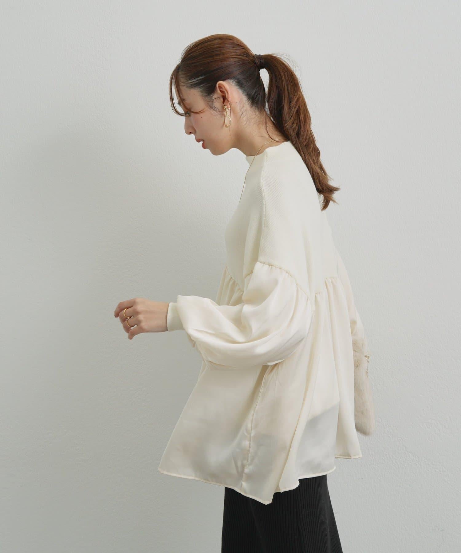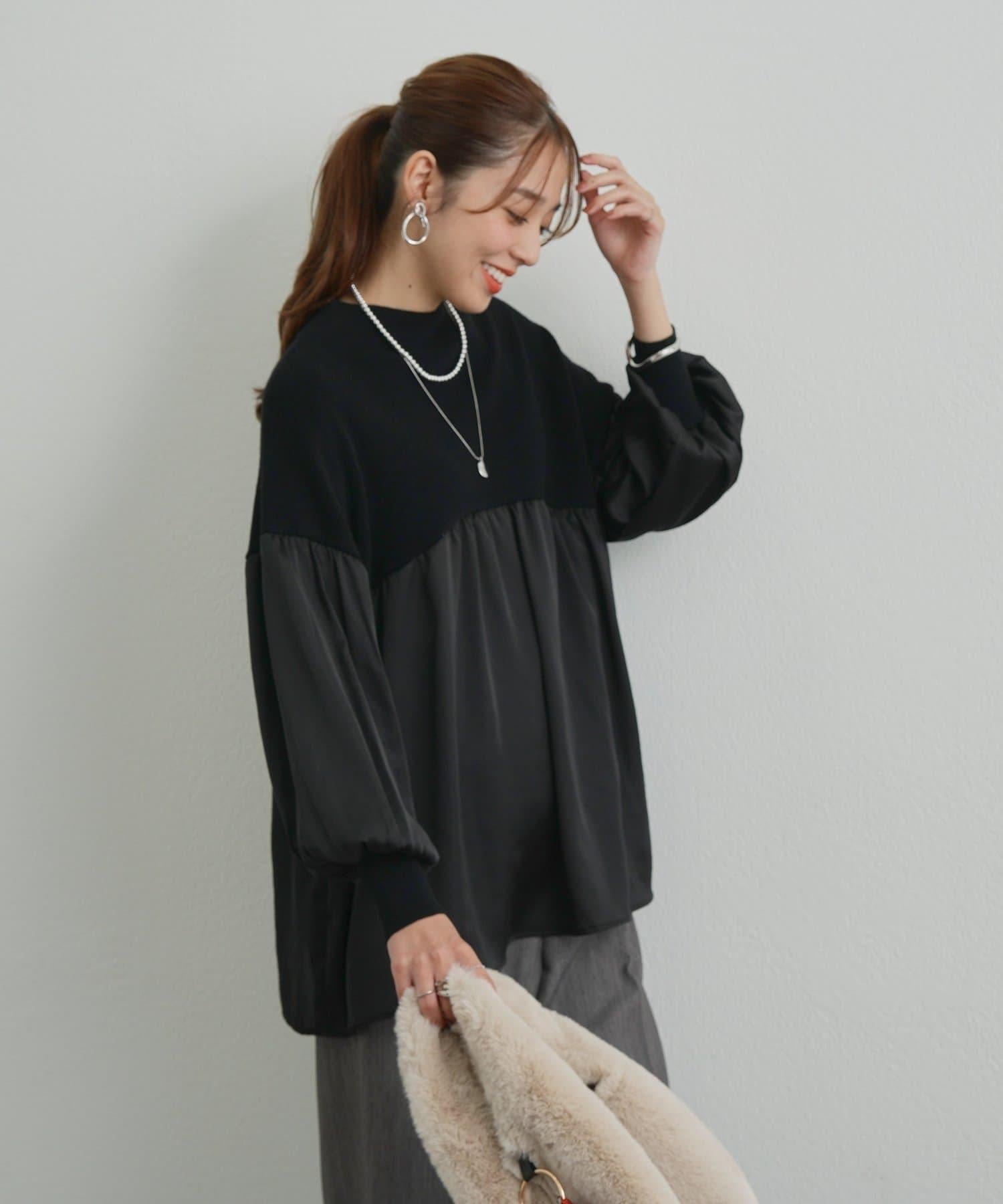 這款設計上衣由不同材質組合而成,給人舒適的印象。