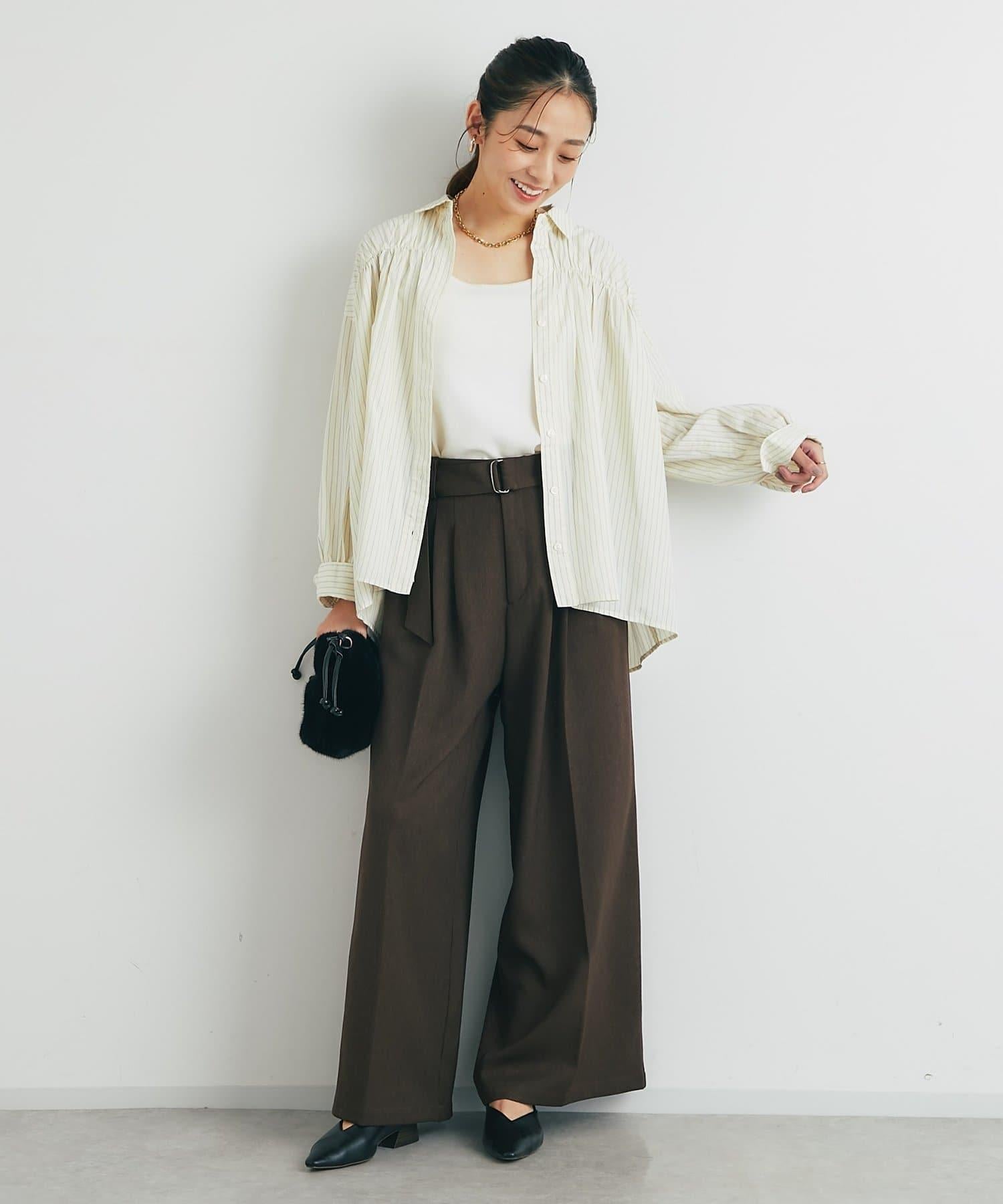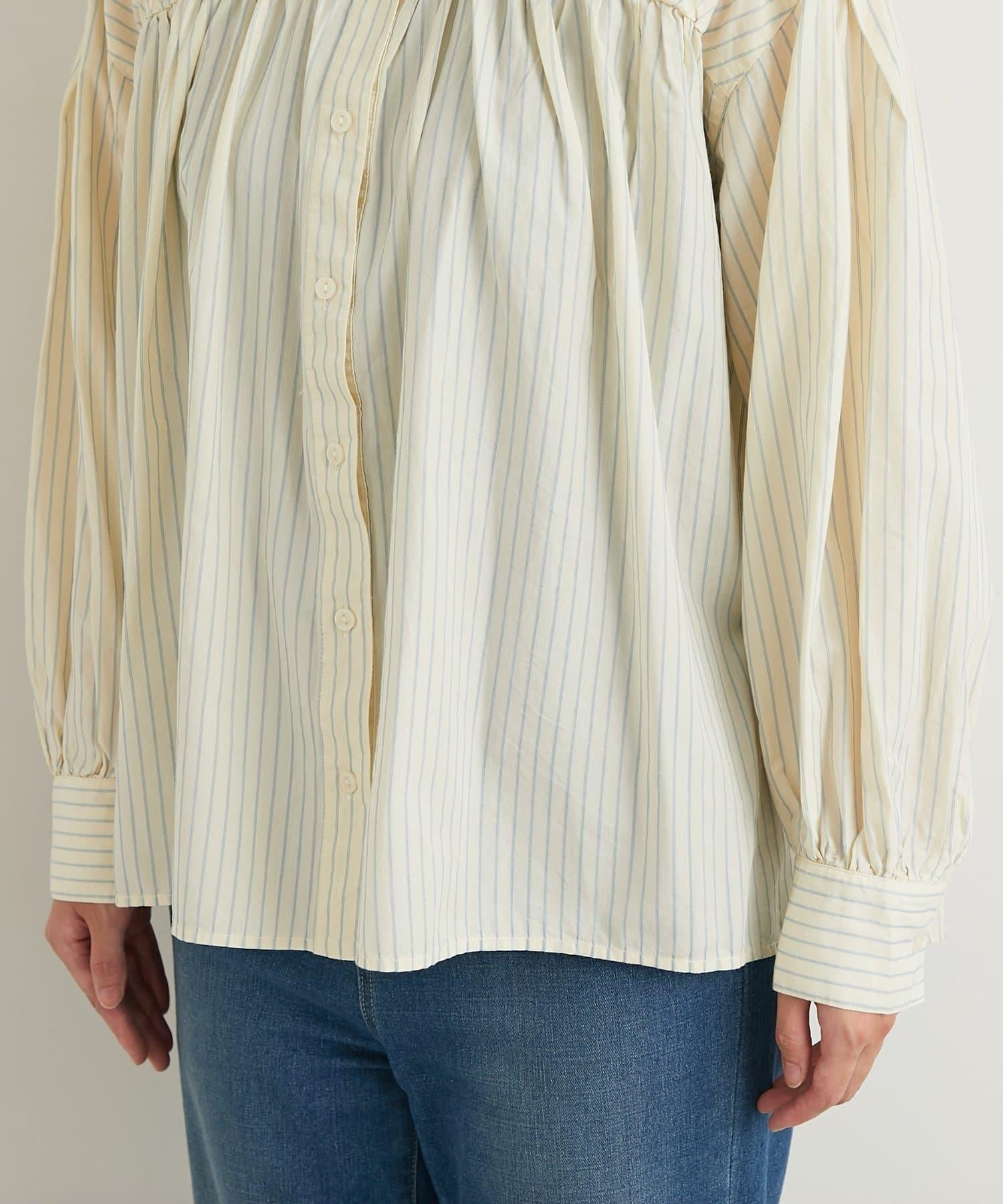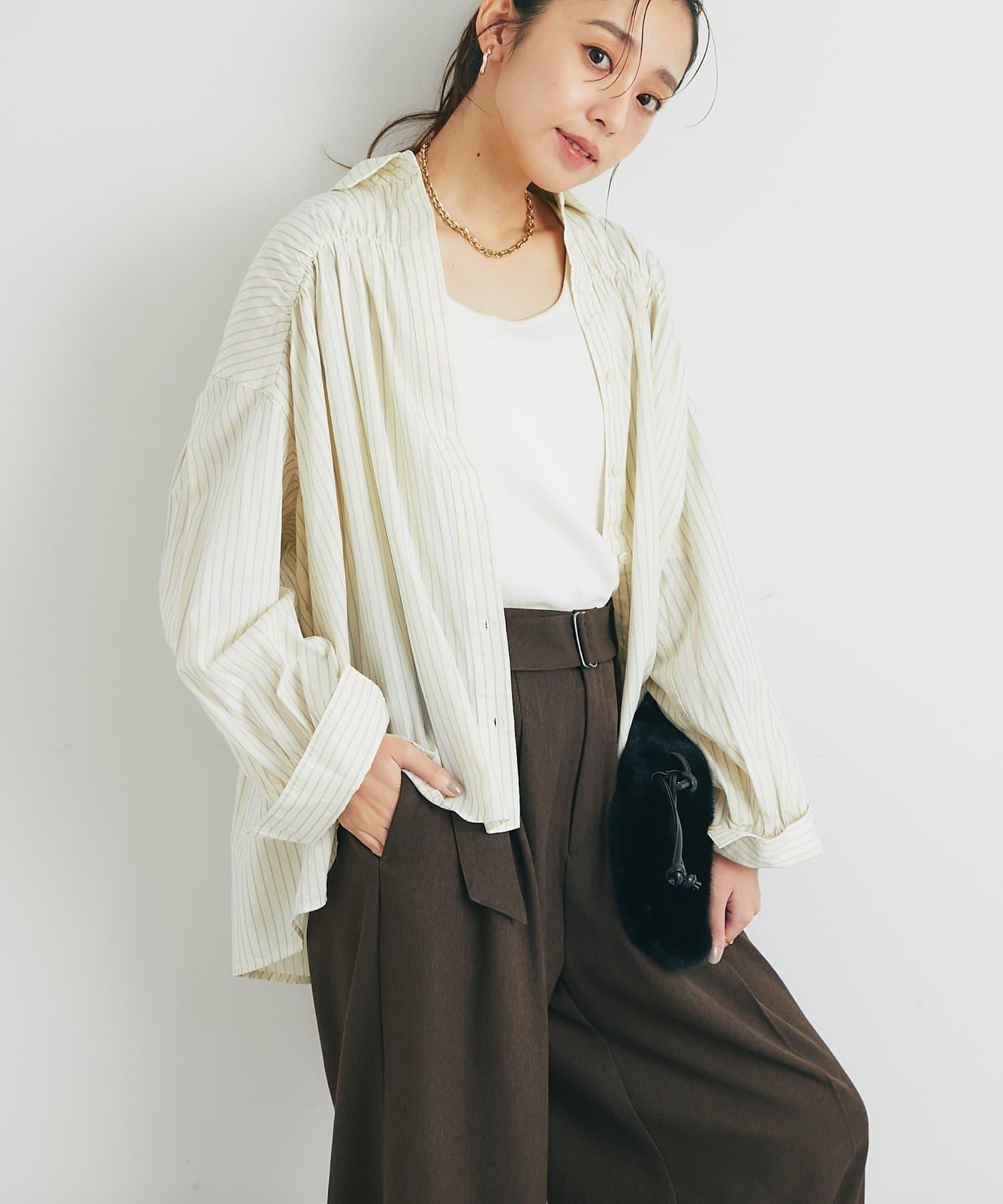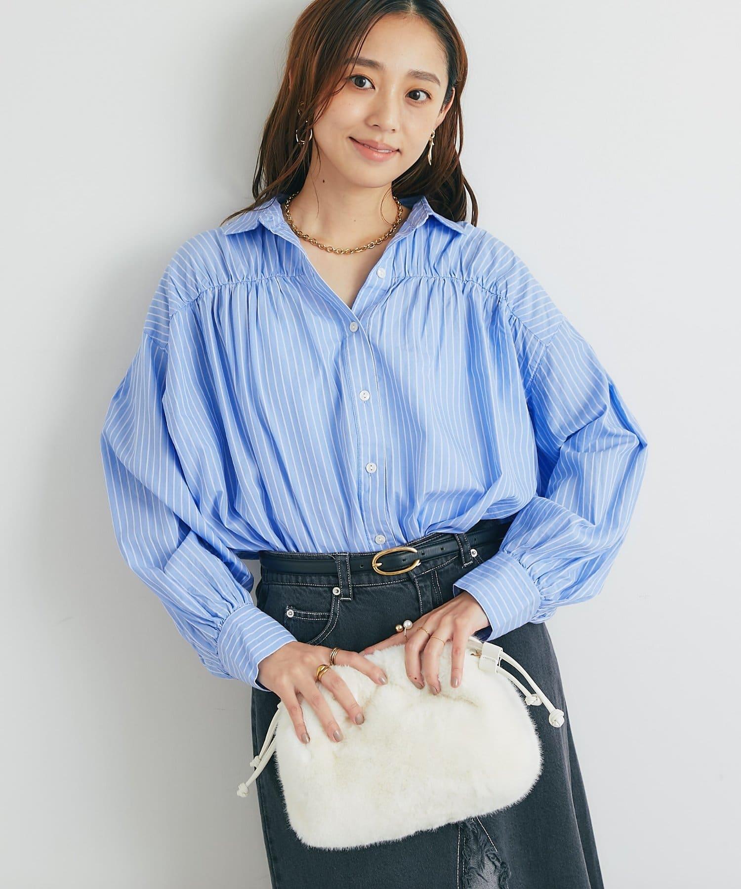 前襟的褶皺設計營造出適度蓬鬆的女性廓形。