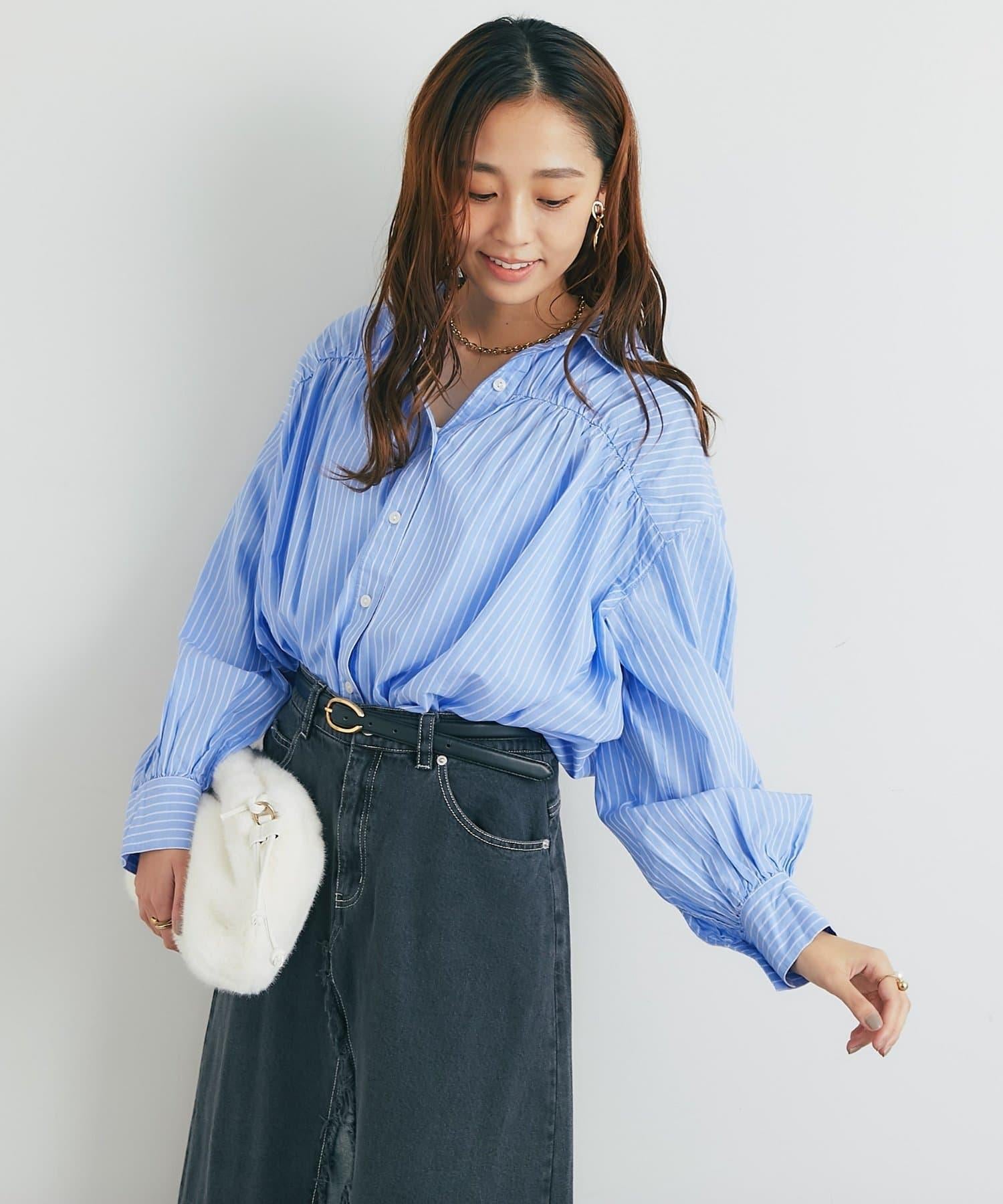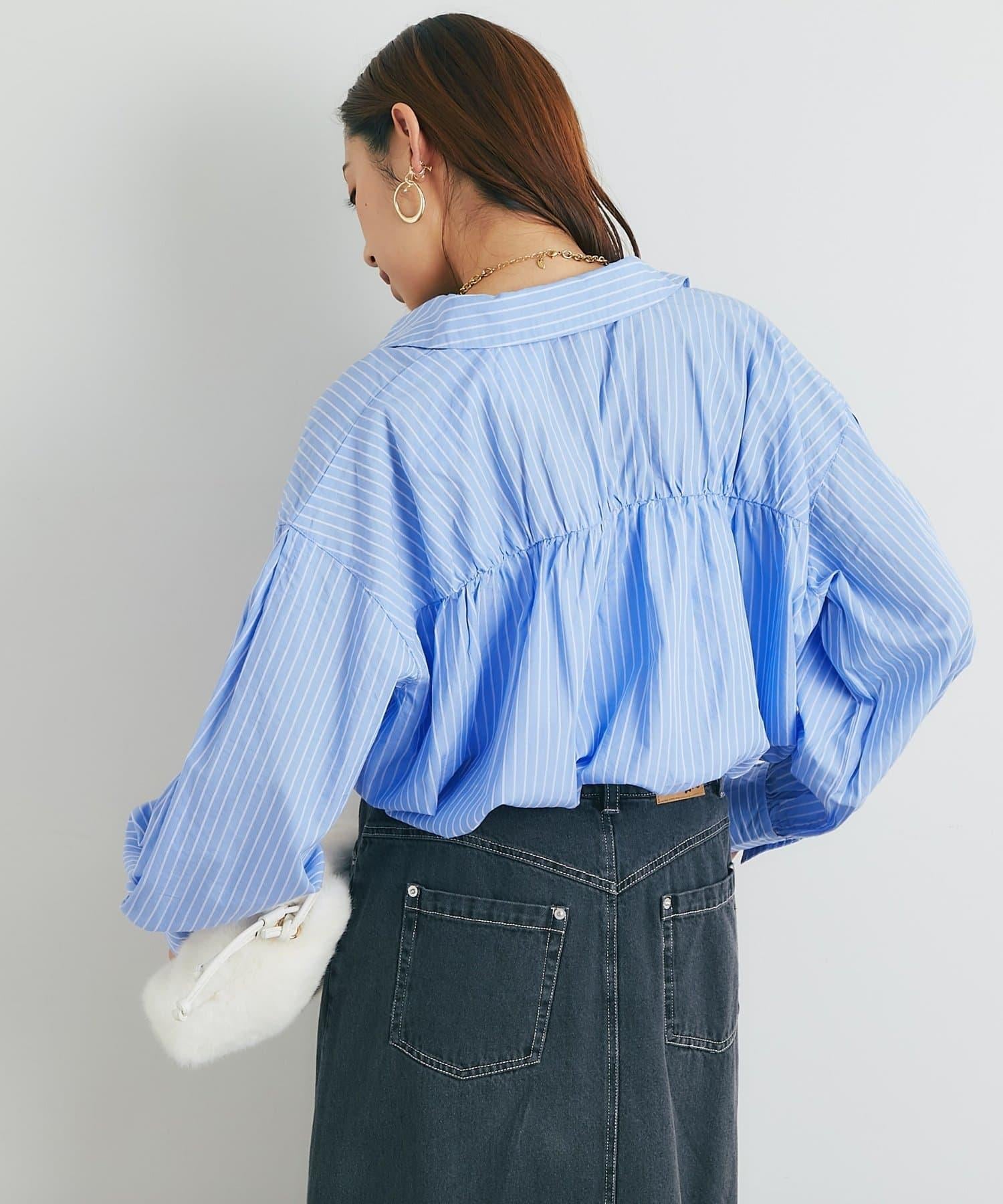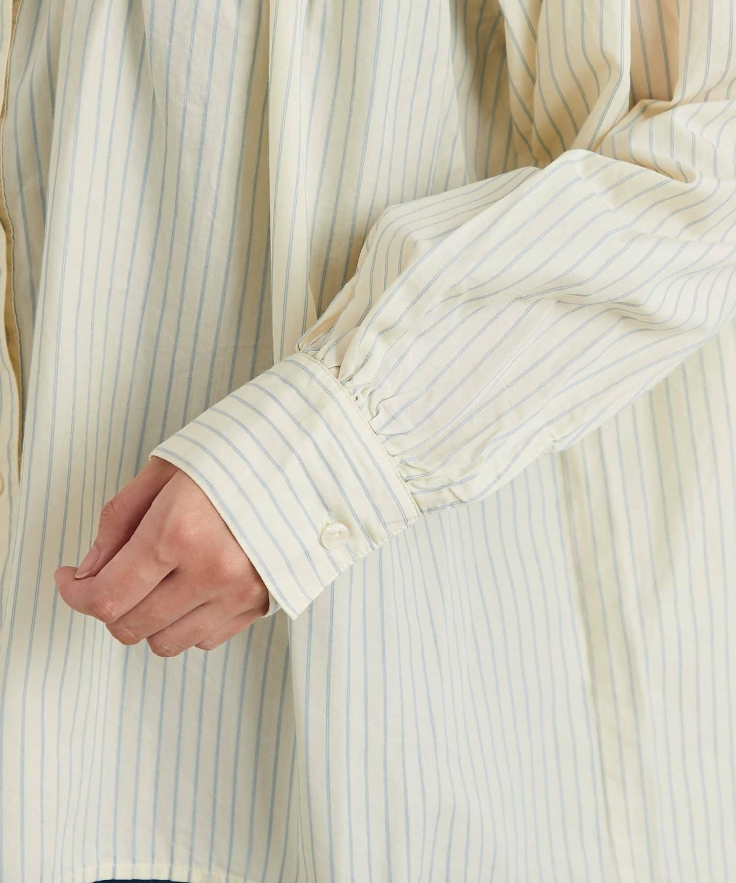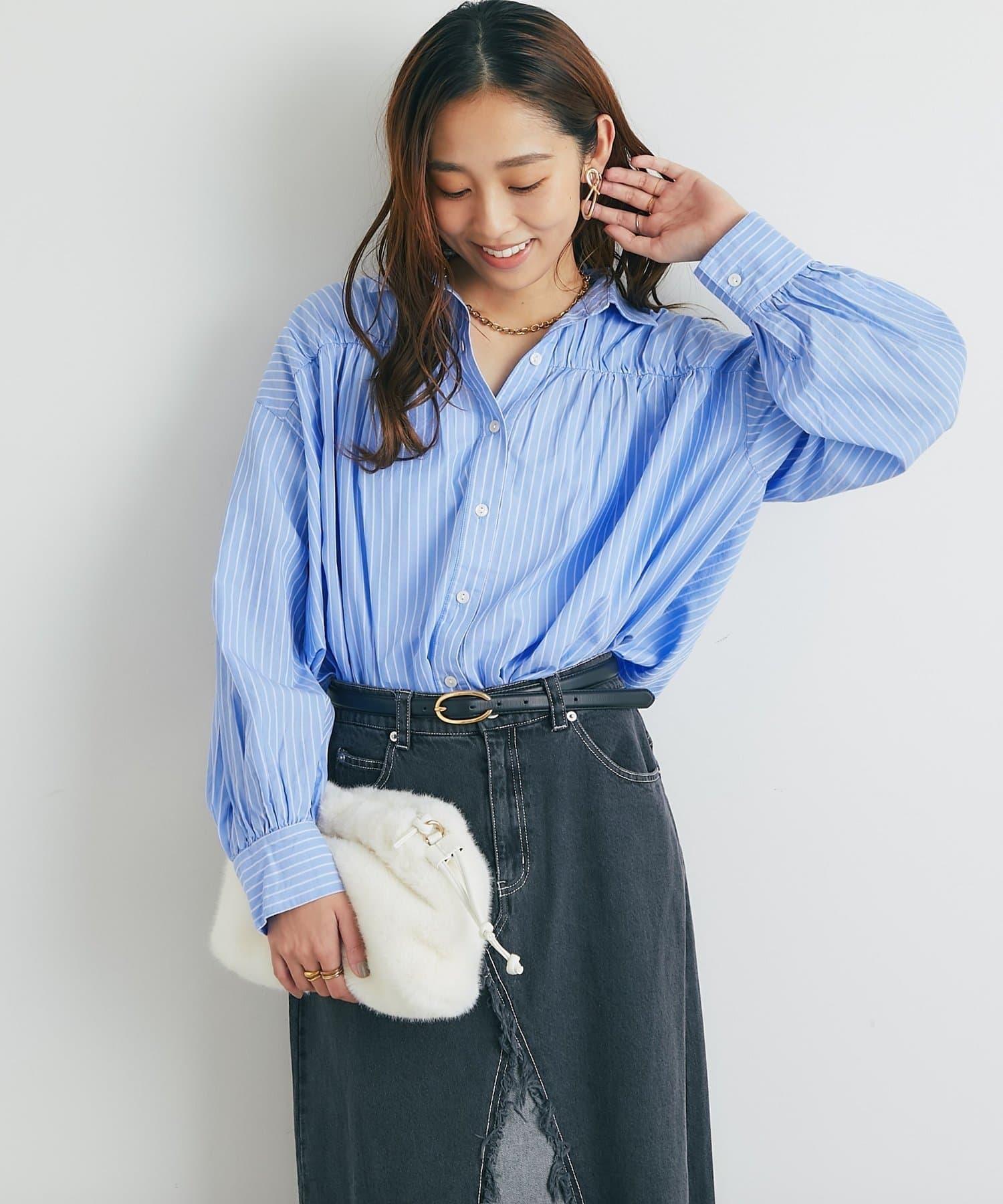 前襟的褶皺設計營造出適度蓬鬆的女性廓形。