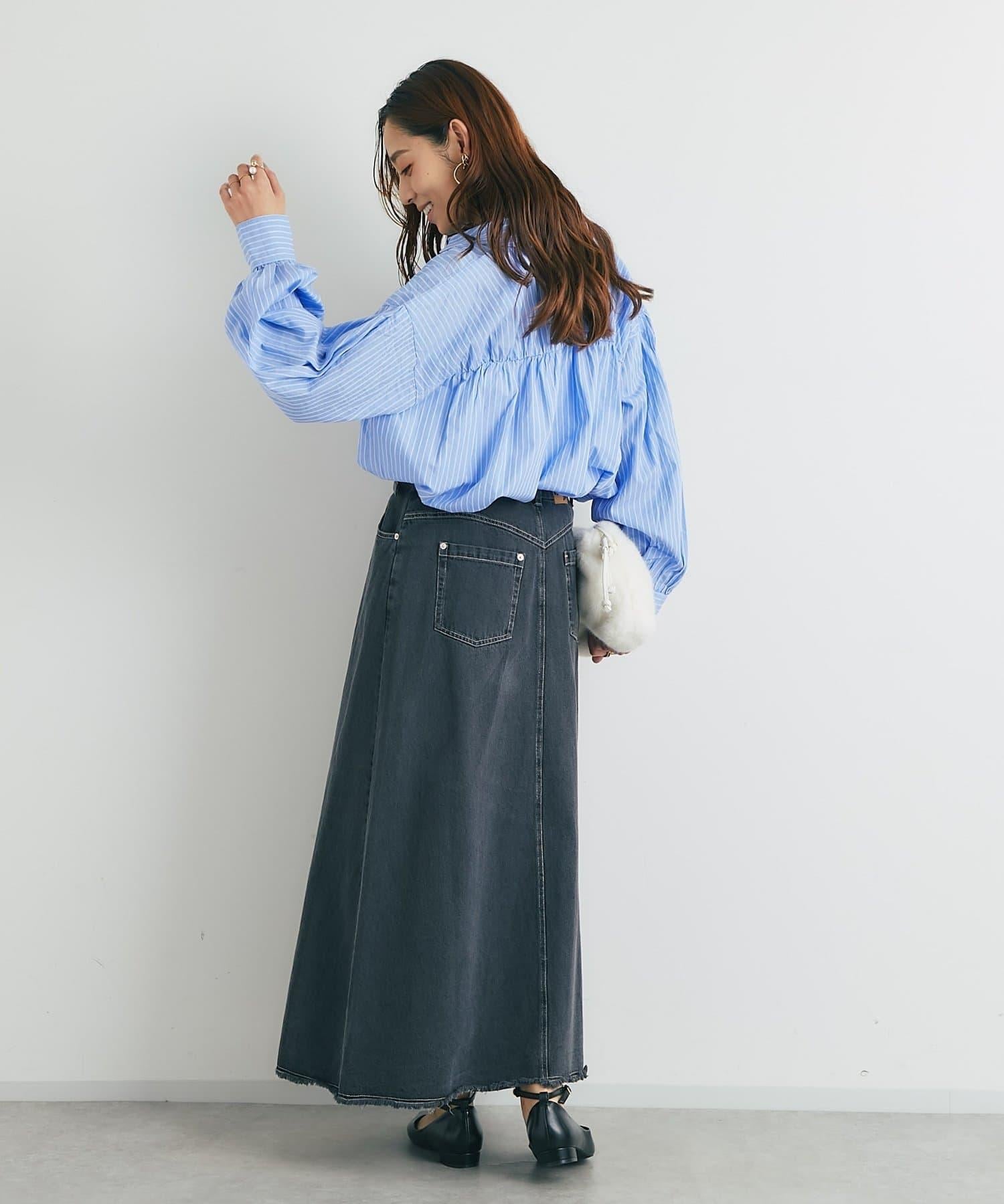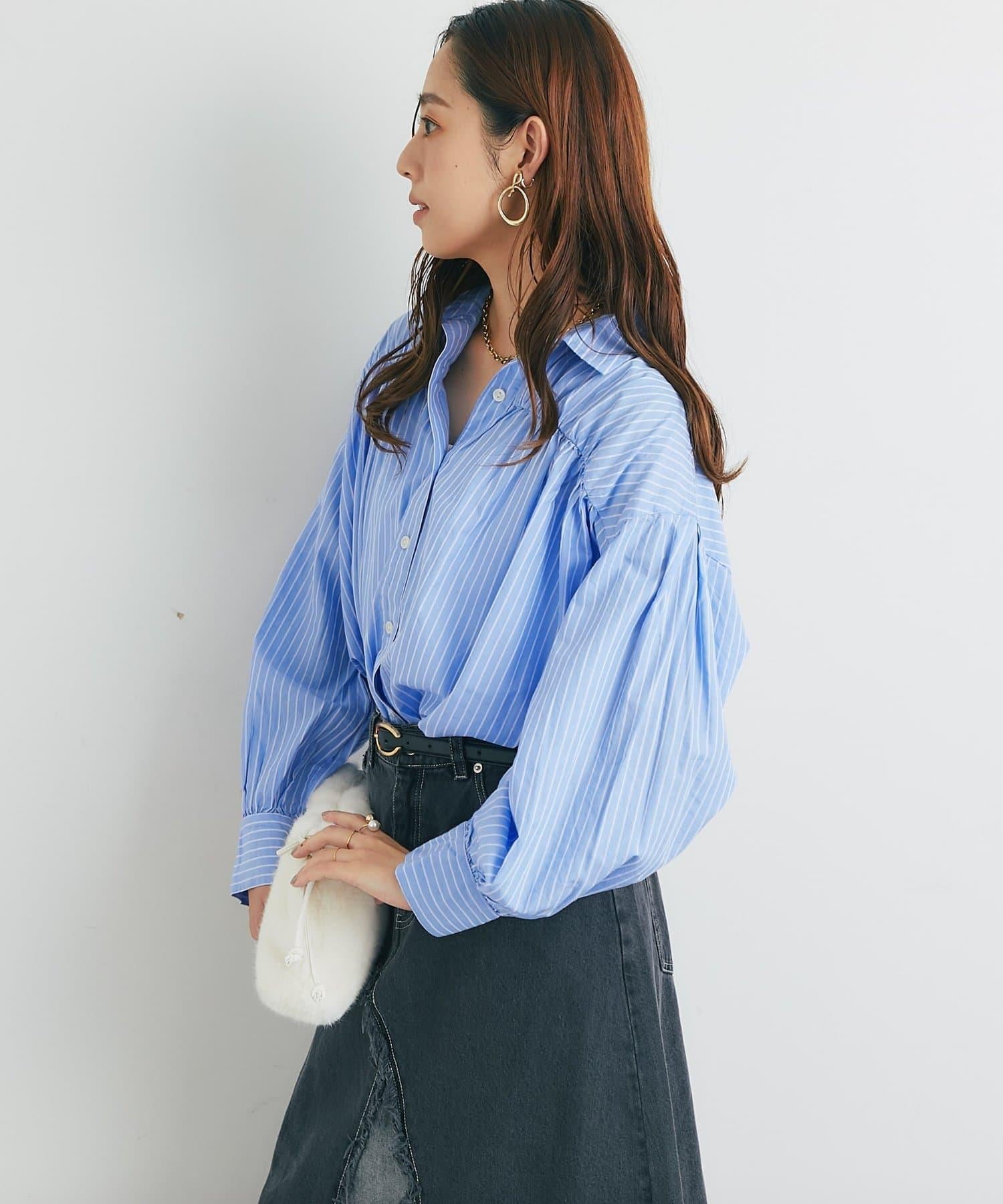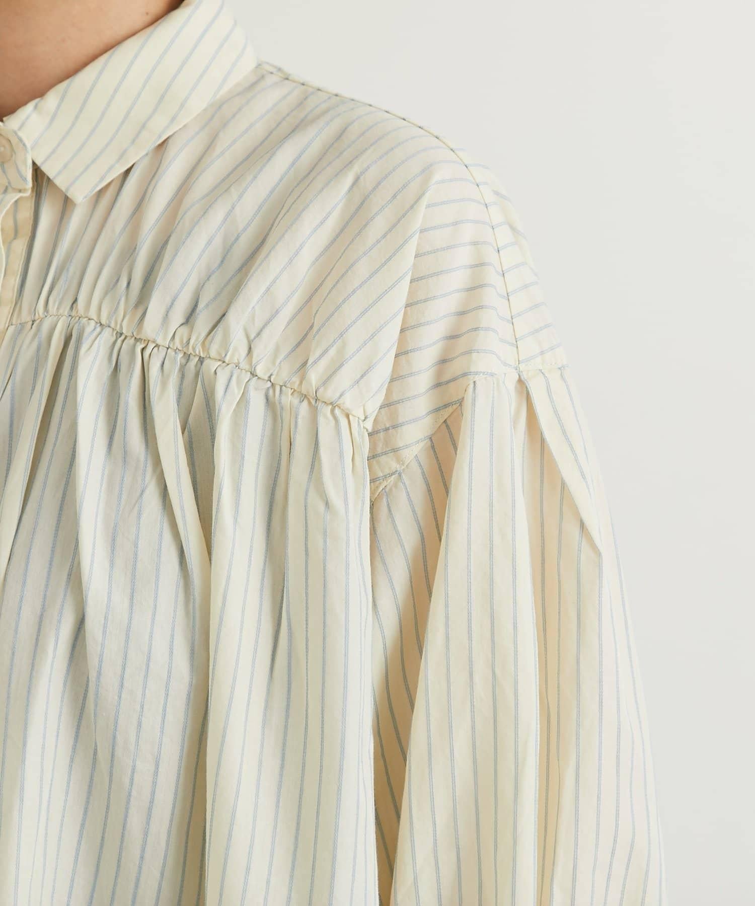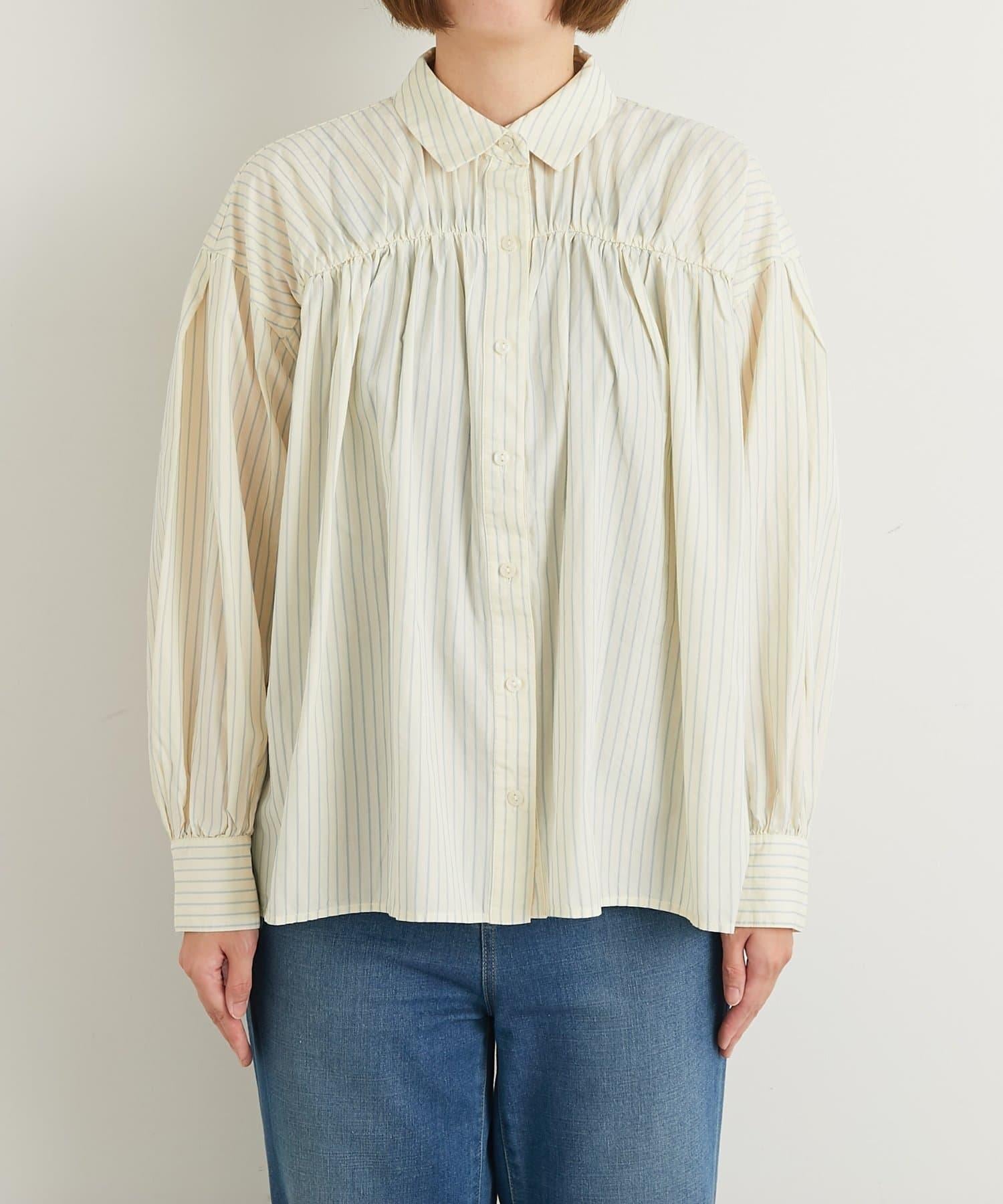 前襟的褶皺設計營造出適度蓬鬆的女性廓形。