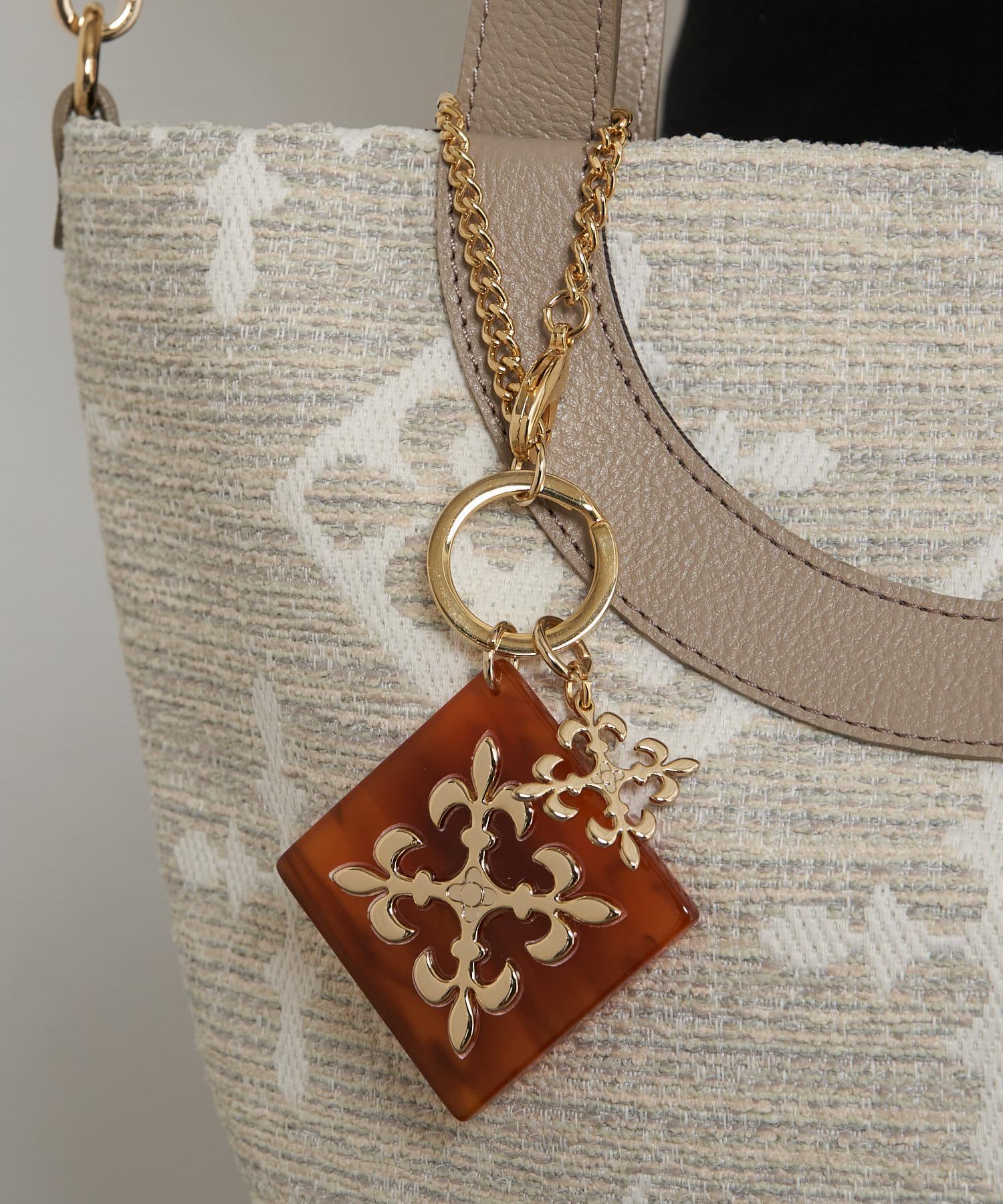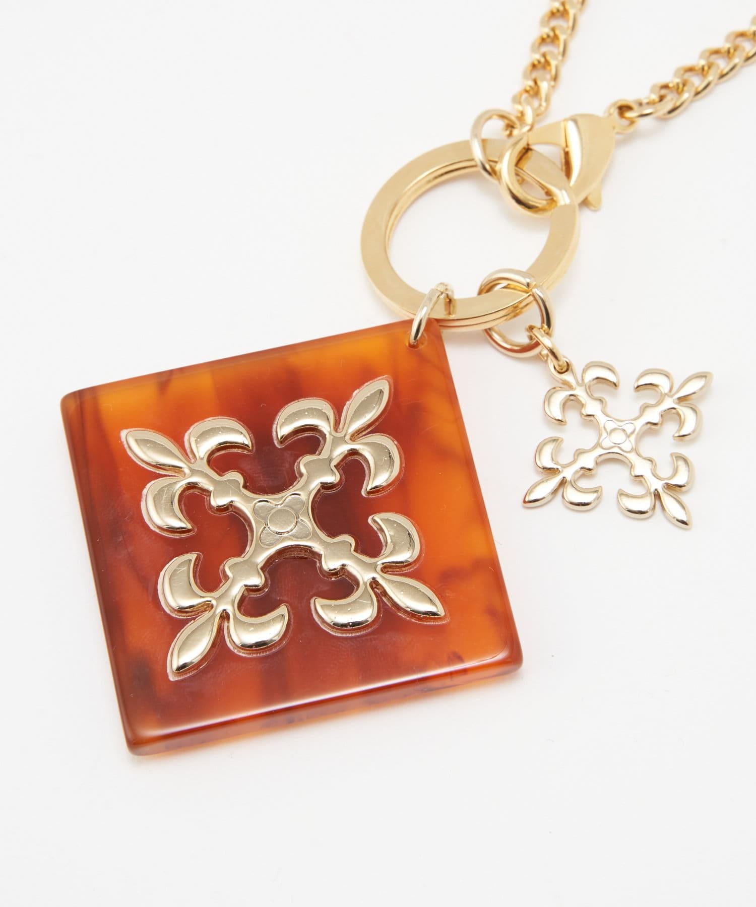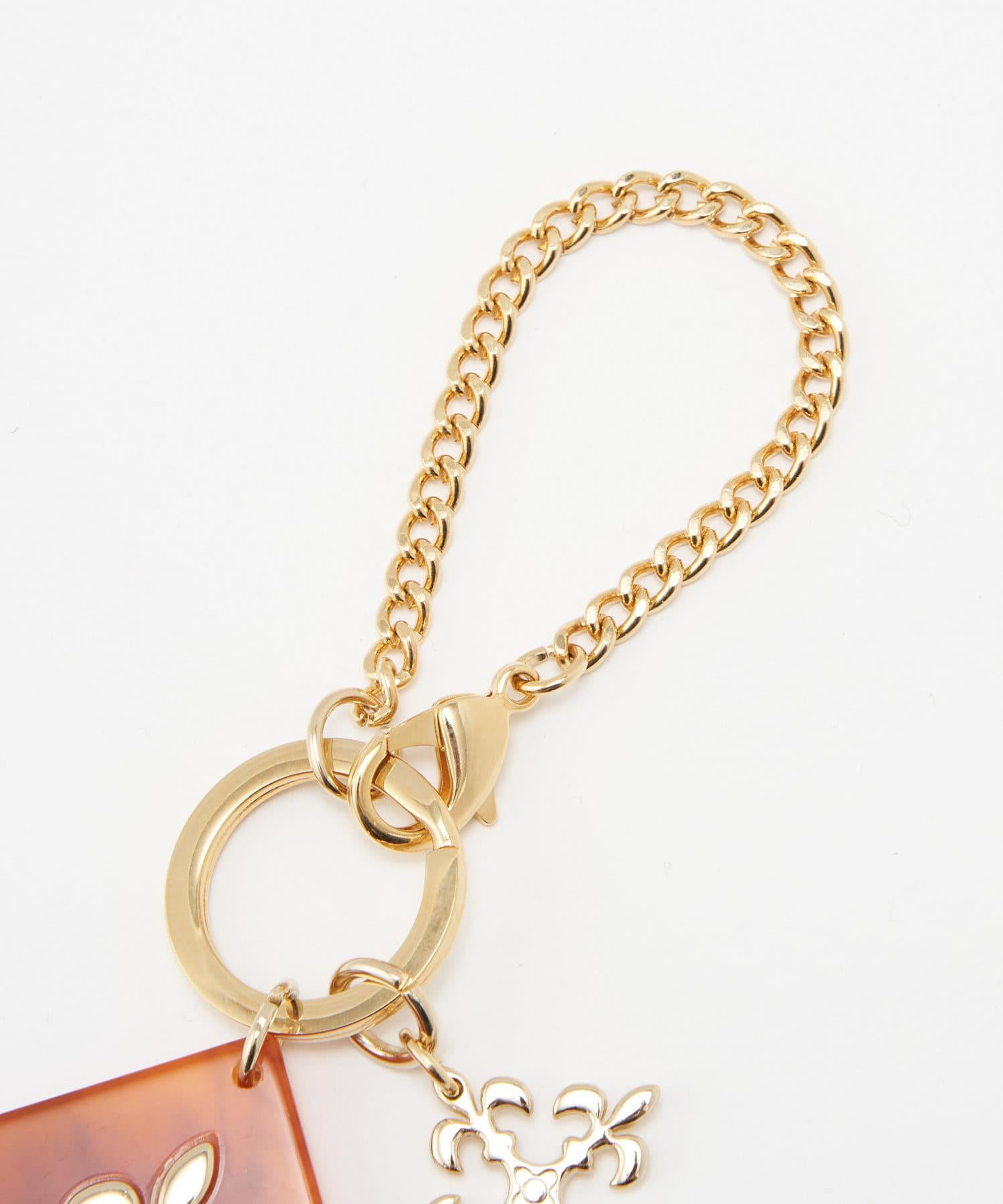 這款吊飾閃耀著玳瑁色丙烯酸圖案和金色字母圖案。
