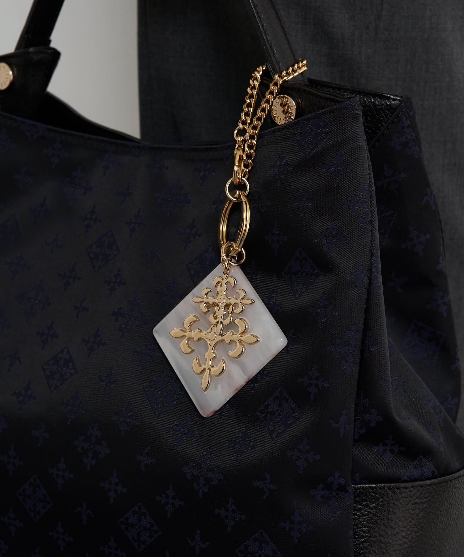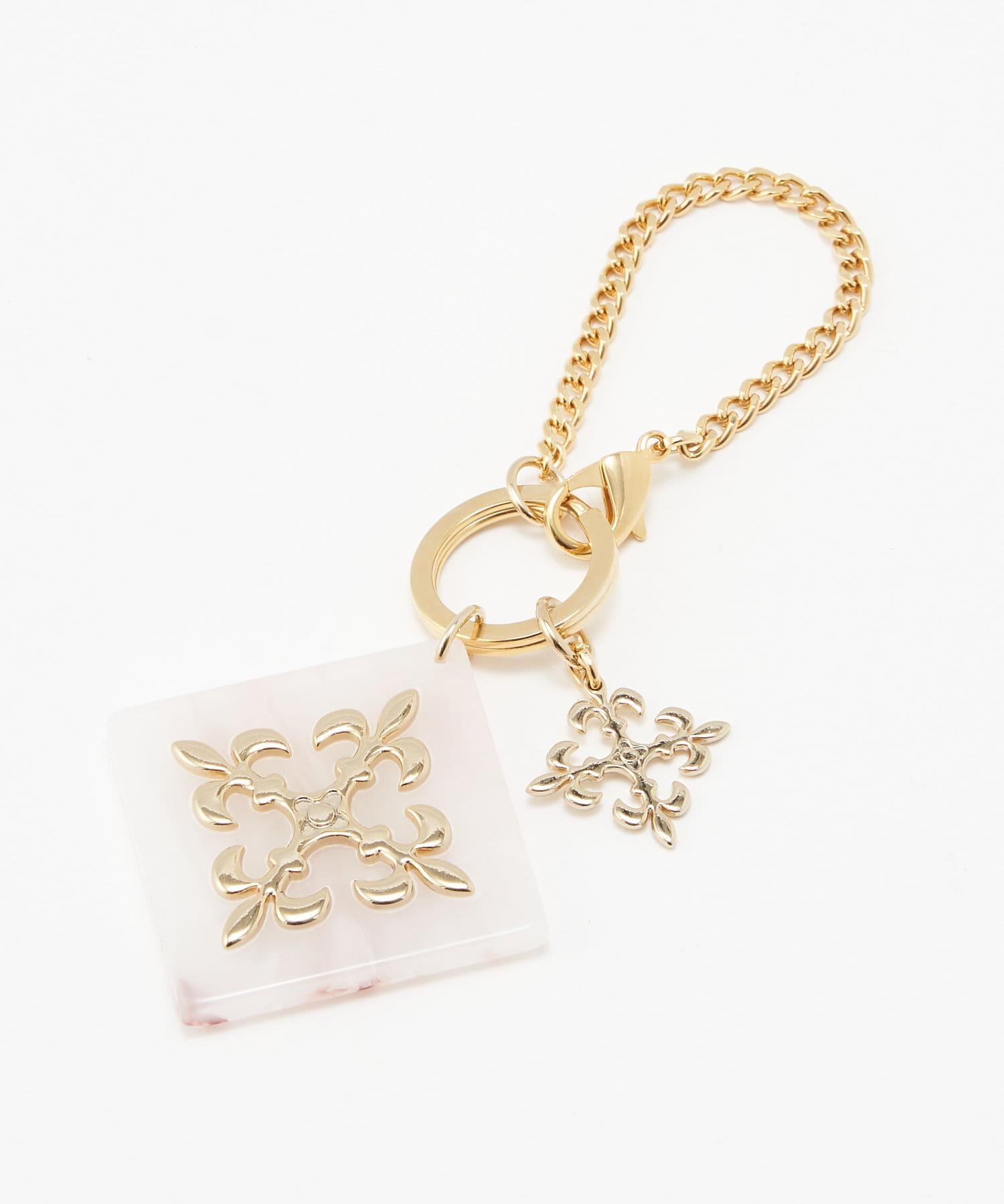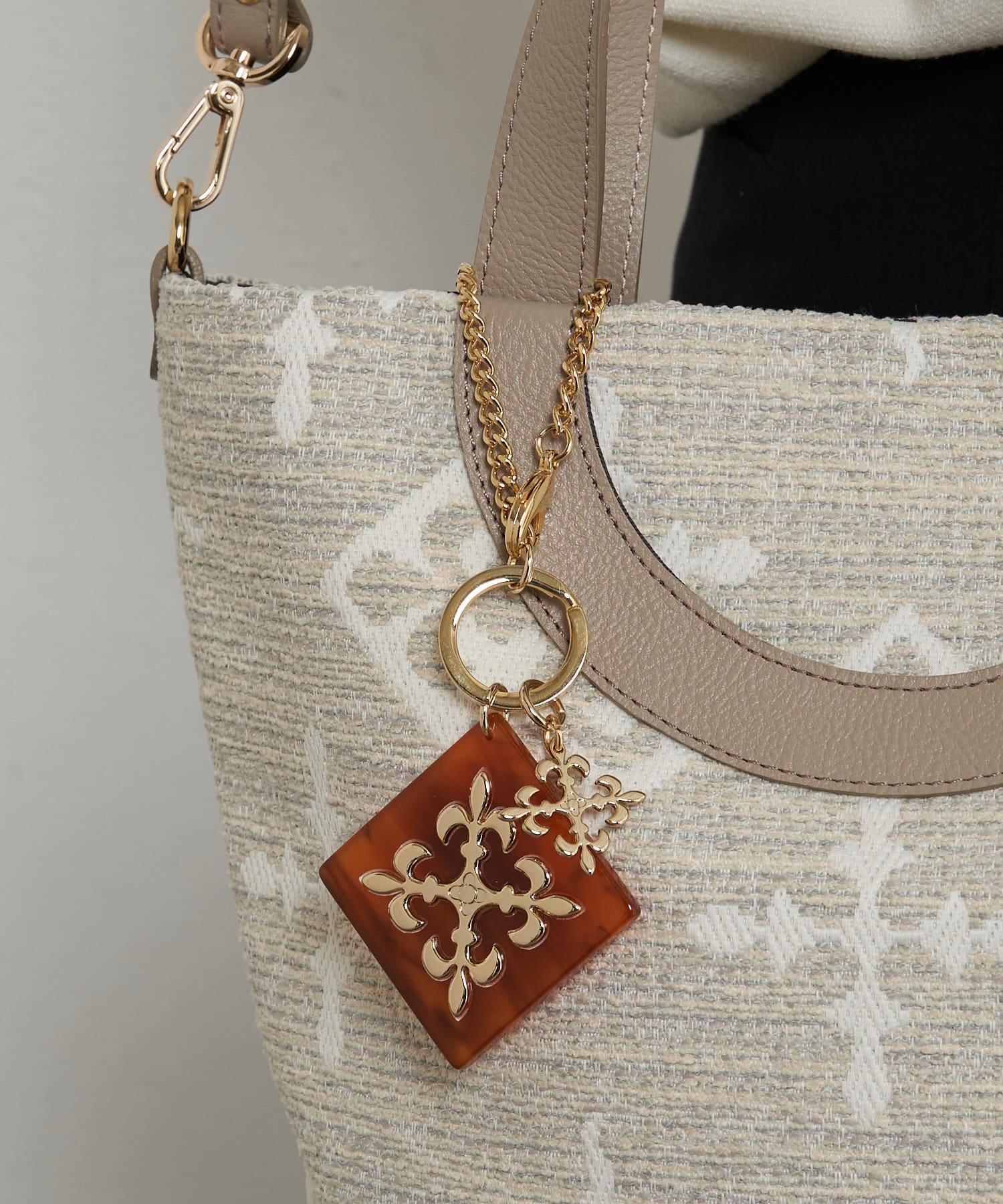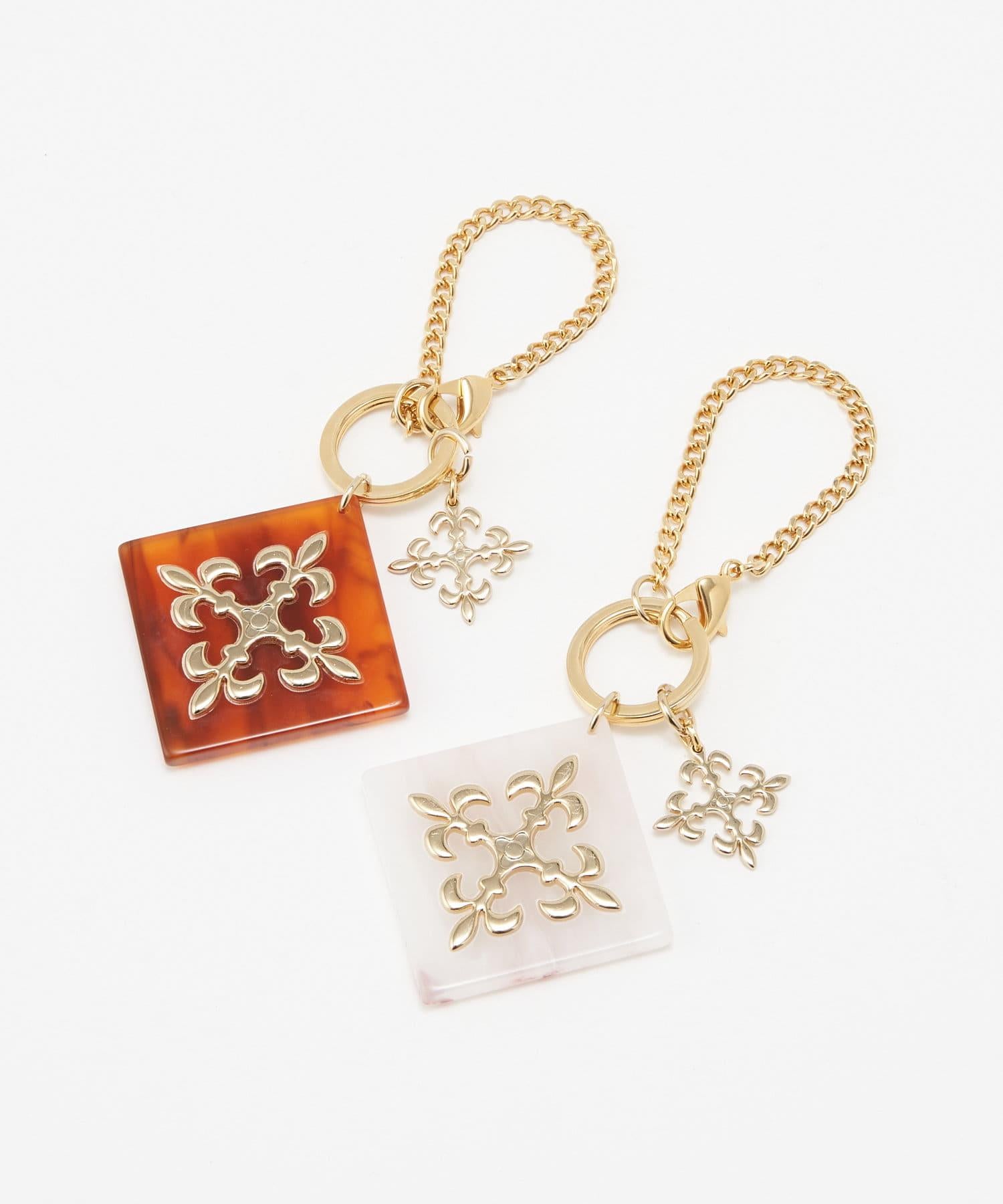 這款吊飾閃耀著玳瑁色丙烯酸圖案和金色字母圖案。