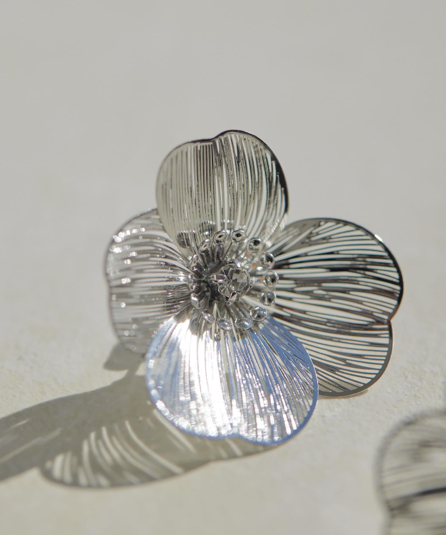 這款花朵耳環將精緻的半透明花瓣與閃亮的水晶相結合。