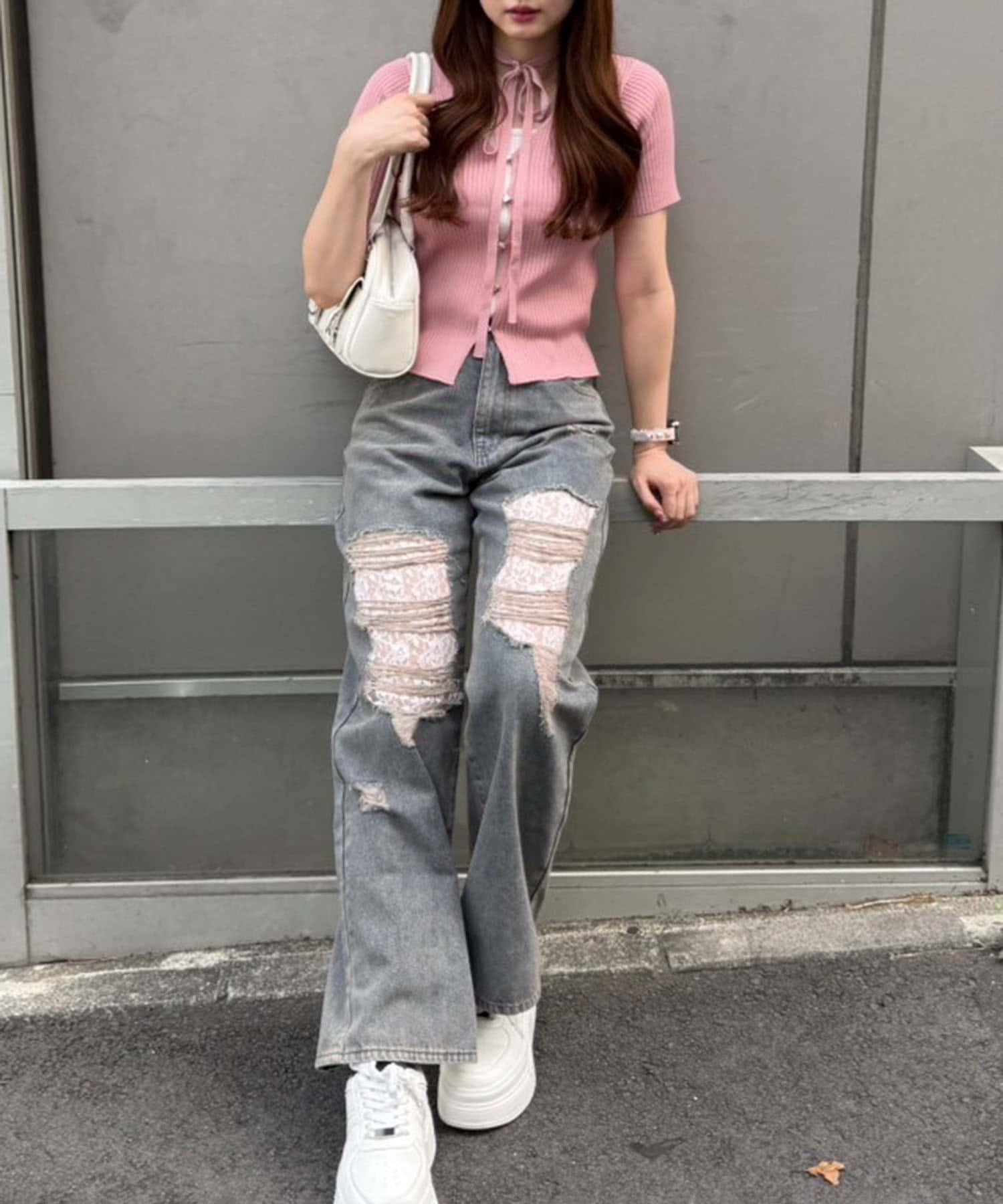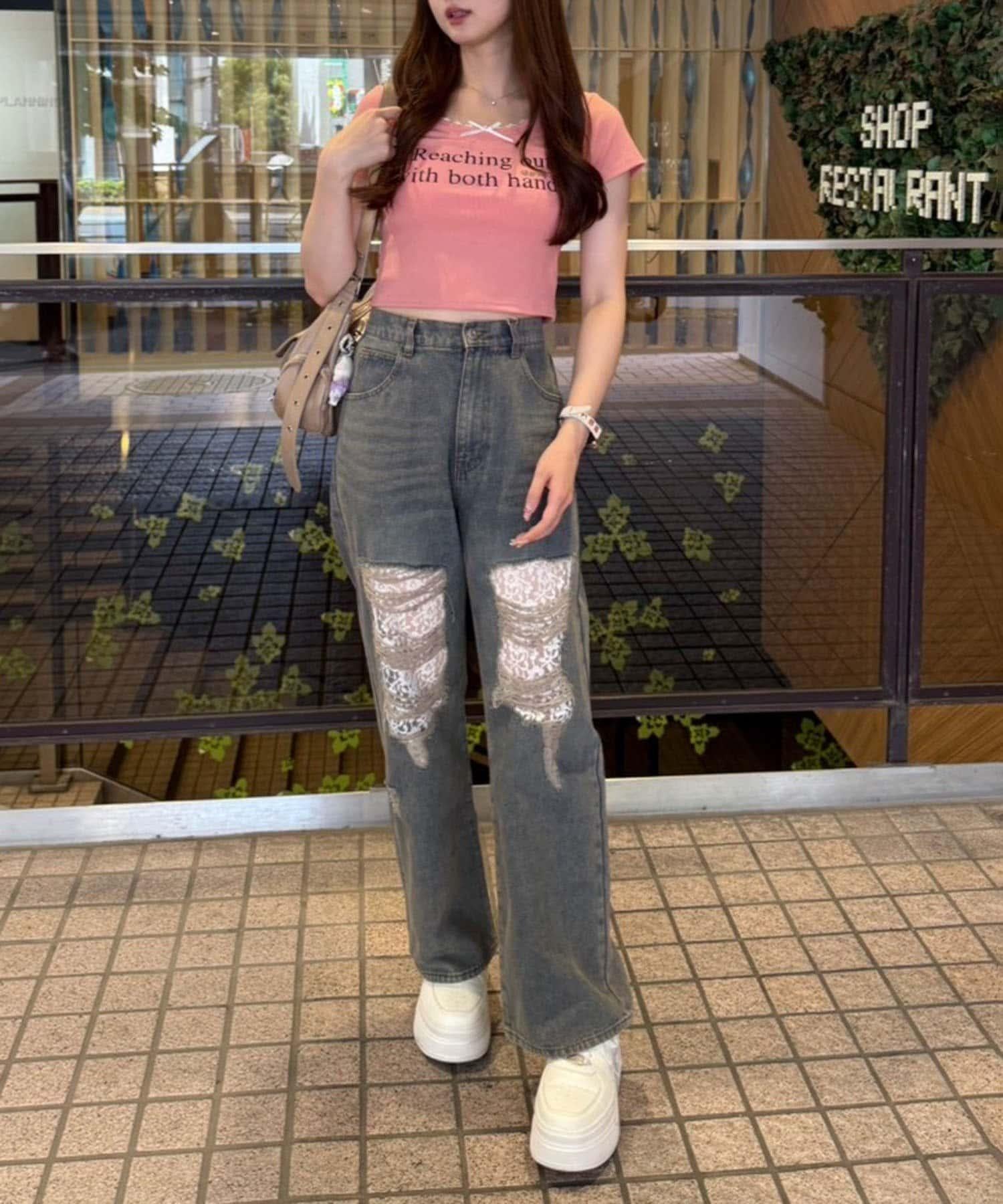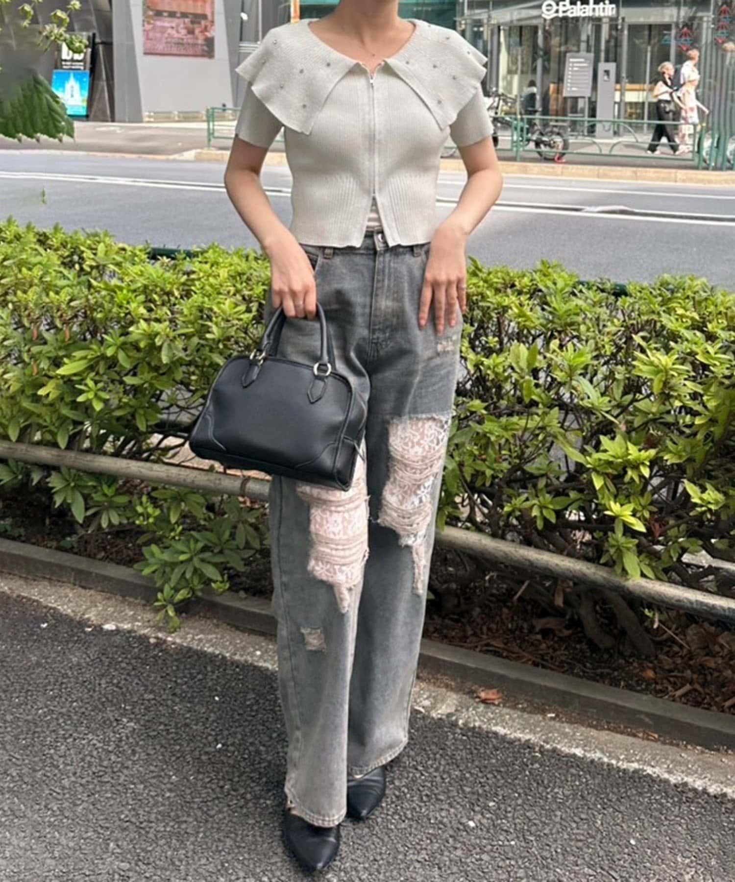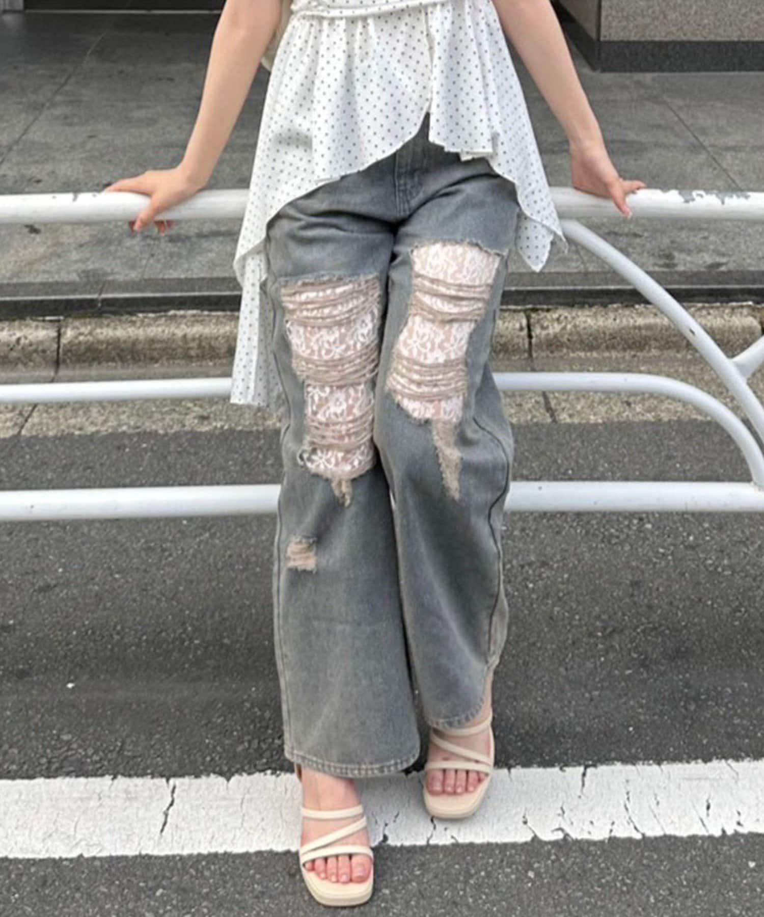 甜美而辛辣的牛仔布與大膽的撞色處理和精緻的蕾絲混搭。
