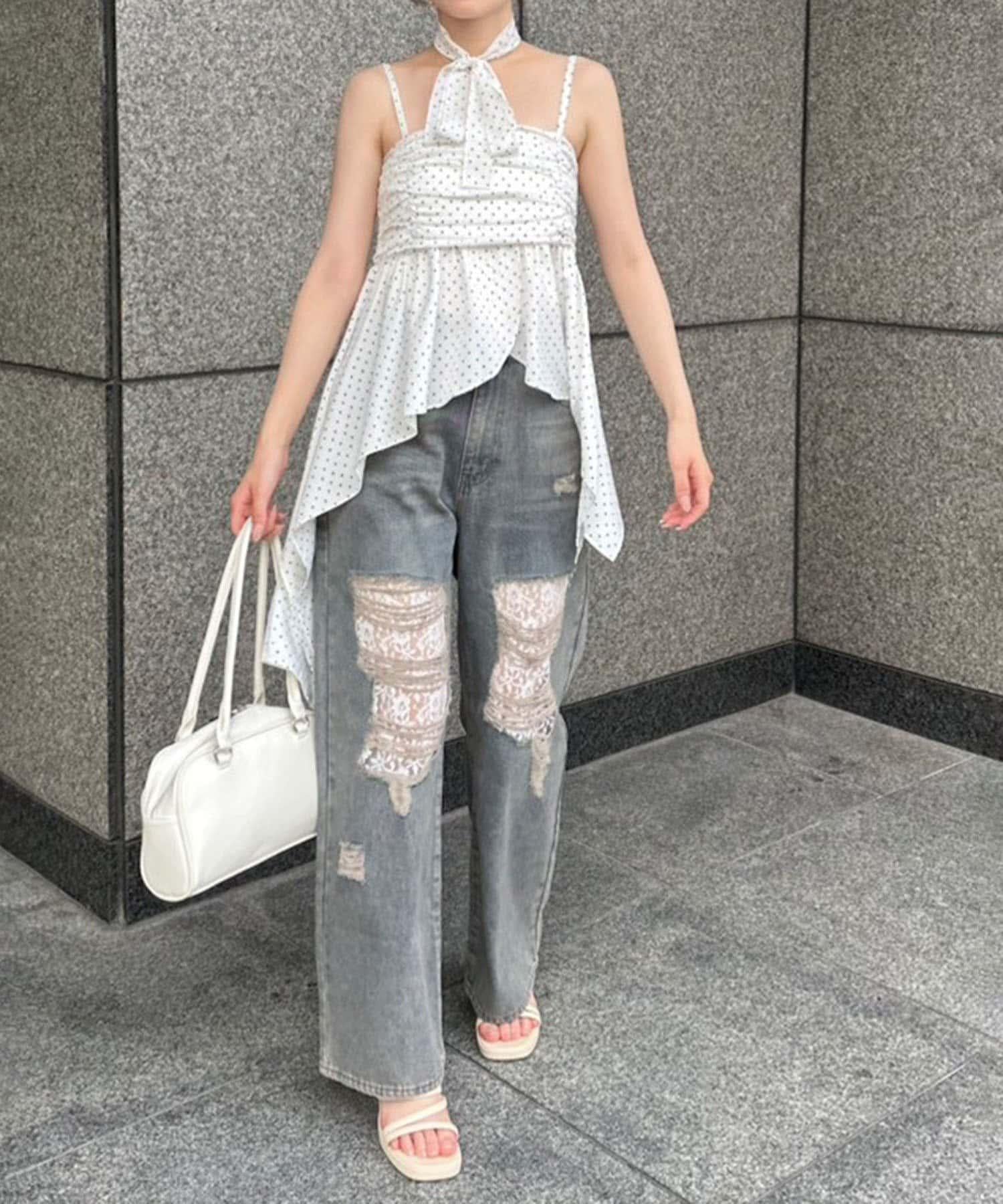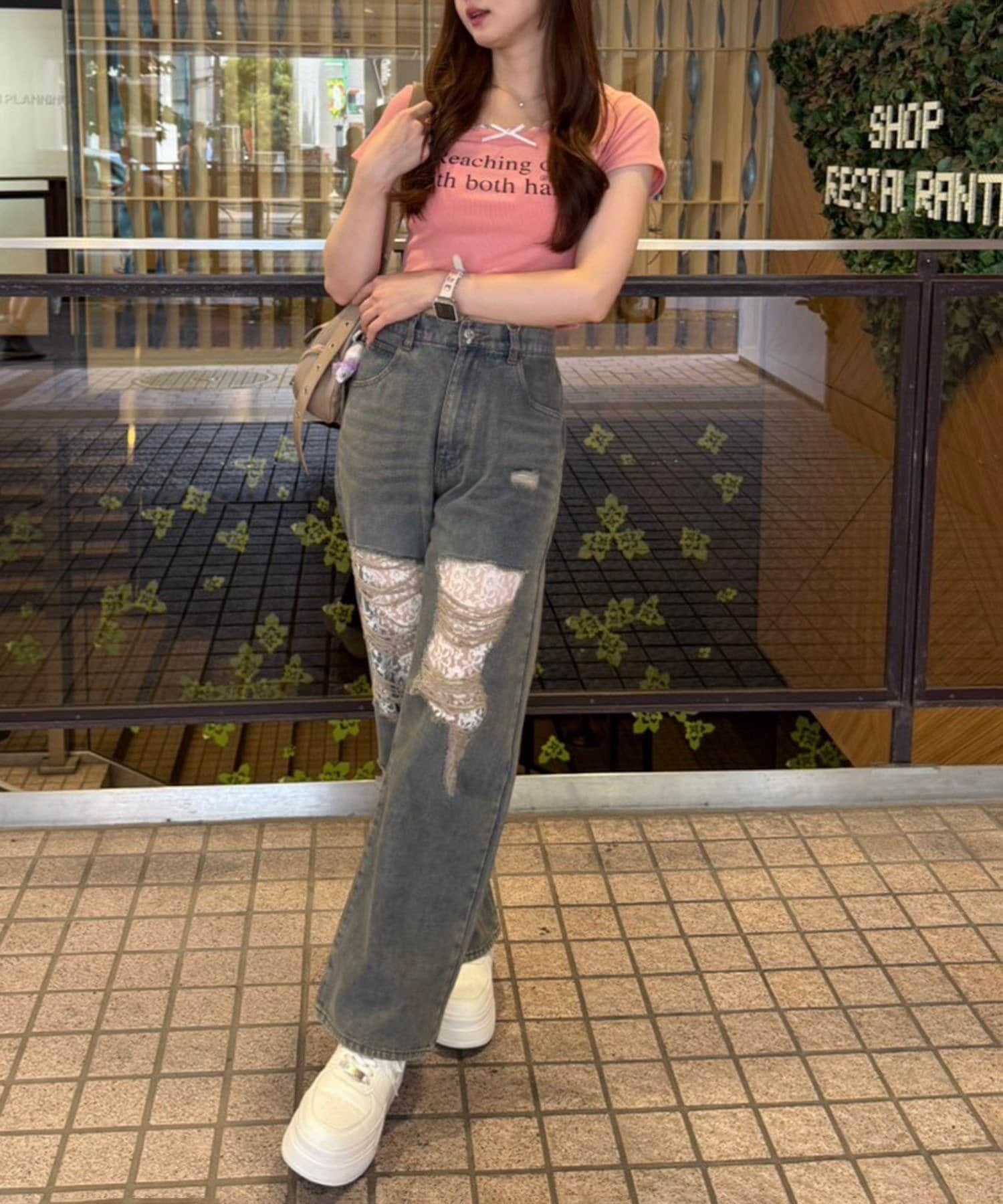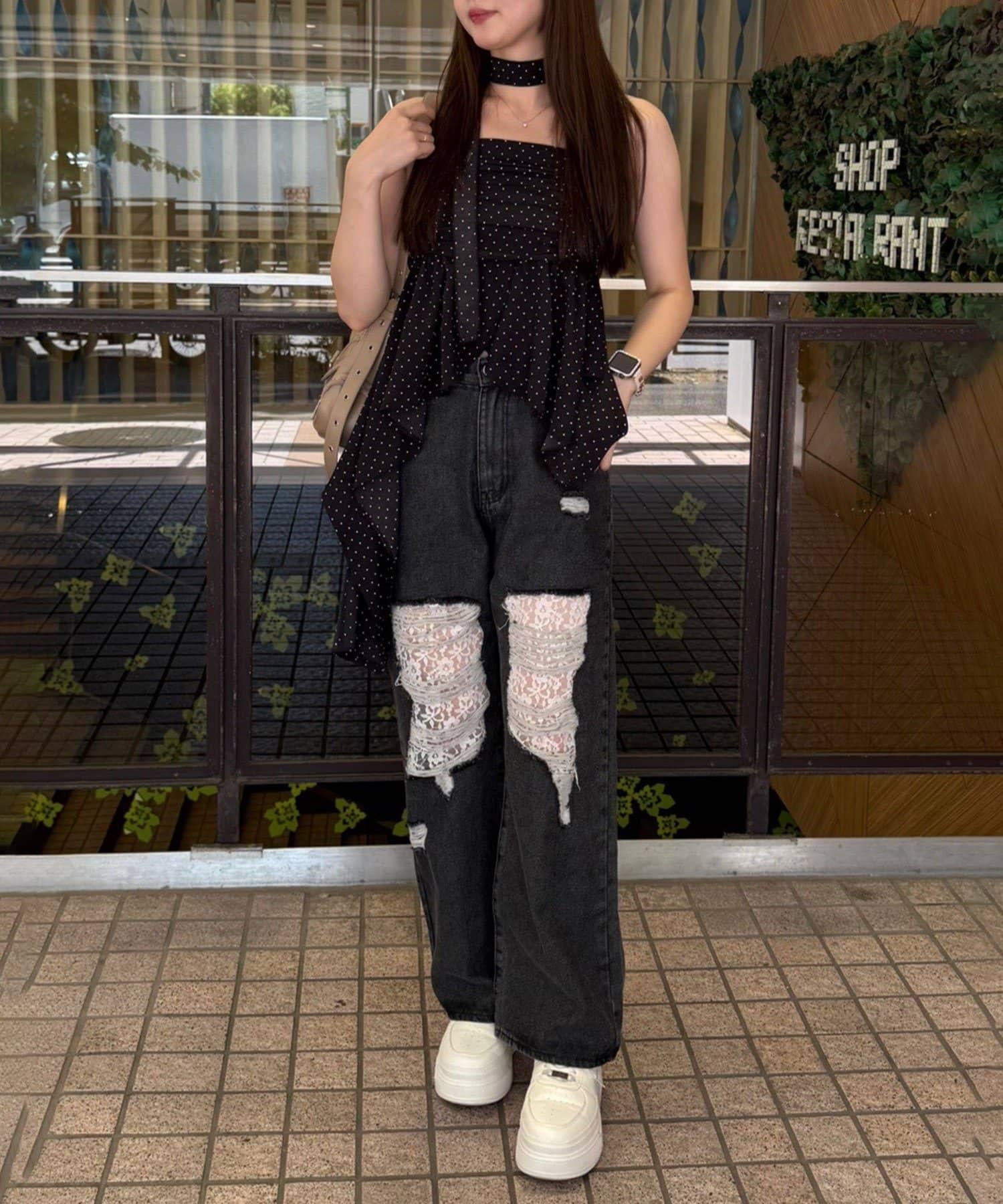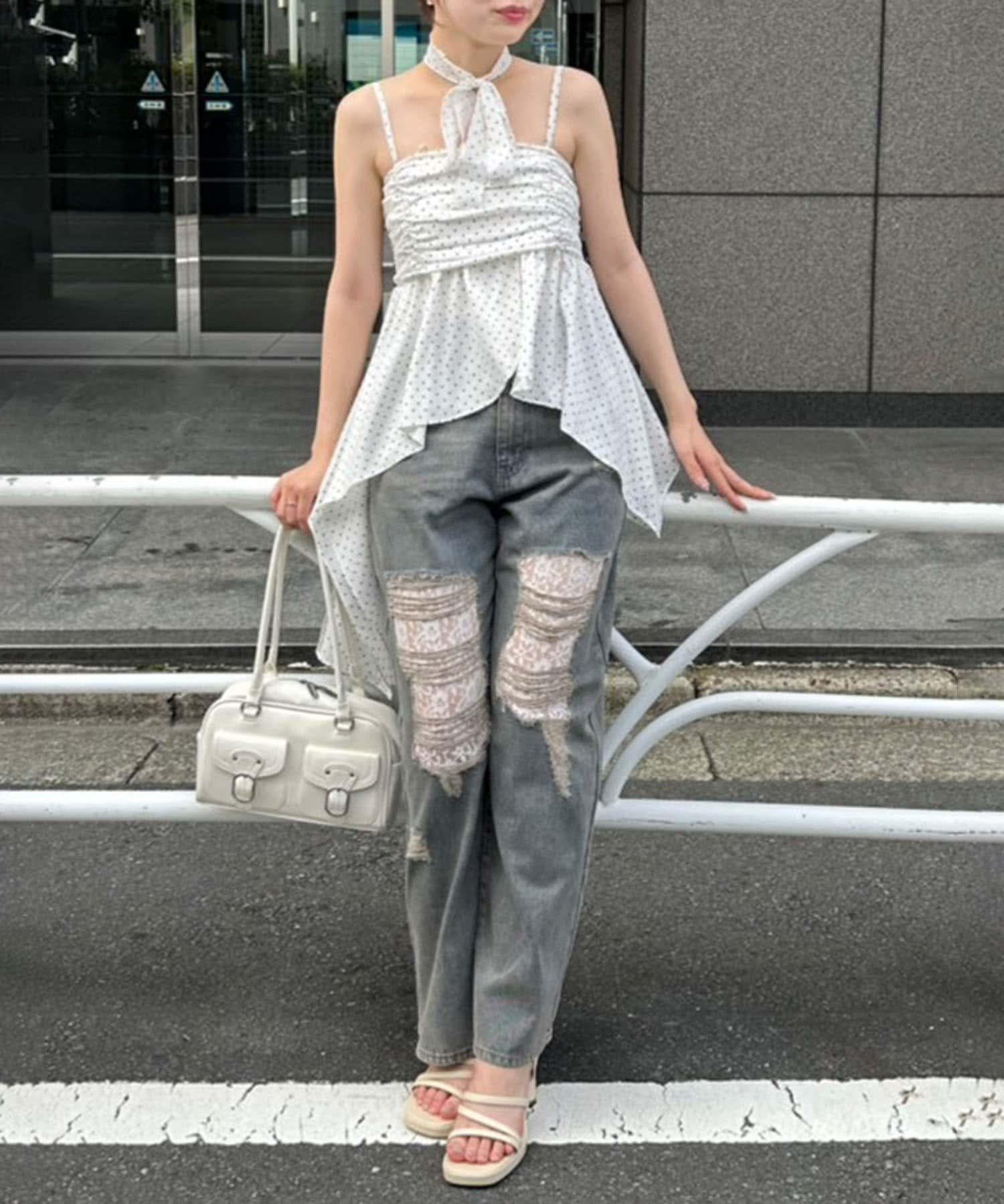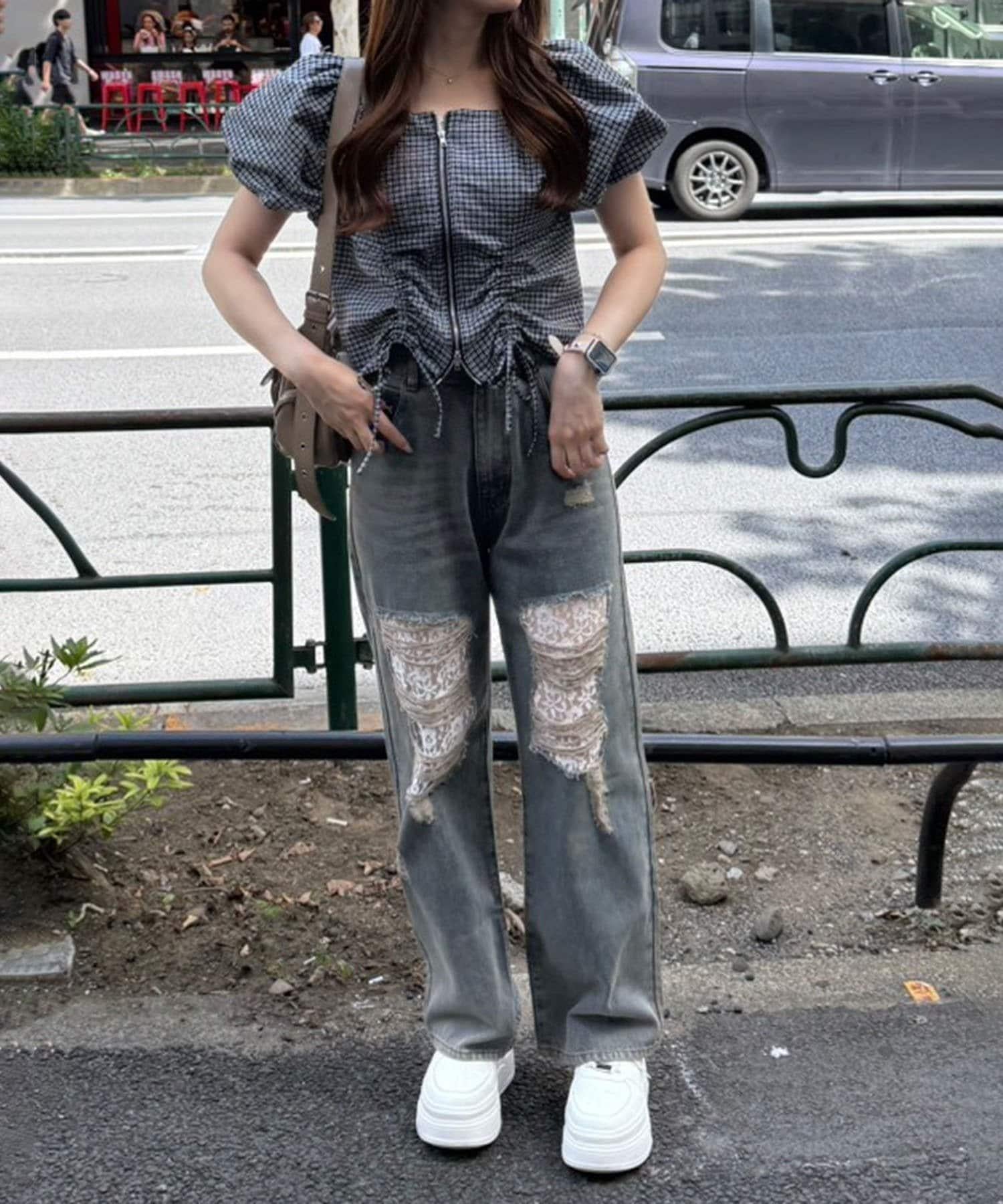 甜美而辛辣的牛仔布與大膽的撞色處理和精緻的蕾絲混搭。