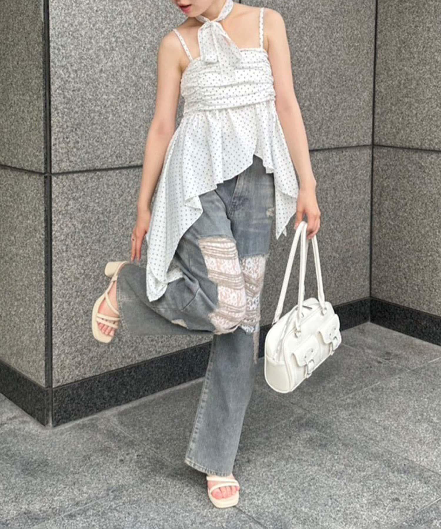 也可簡單搭配吊帶衫或背心,以牛仔褲為主打造型。