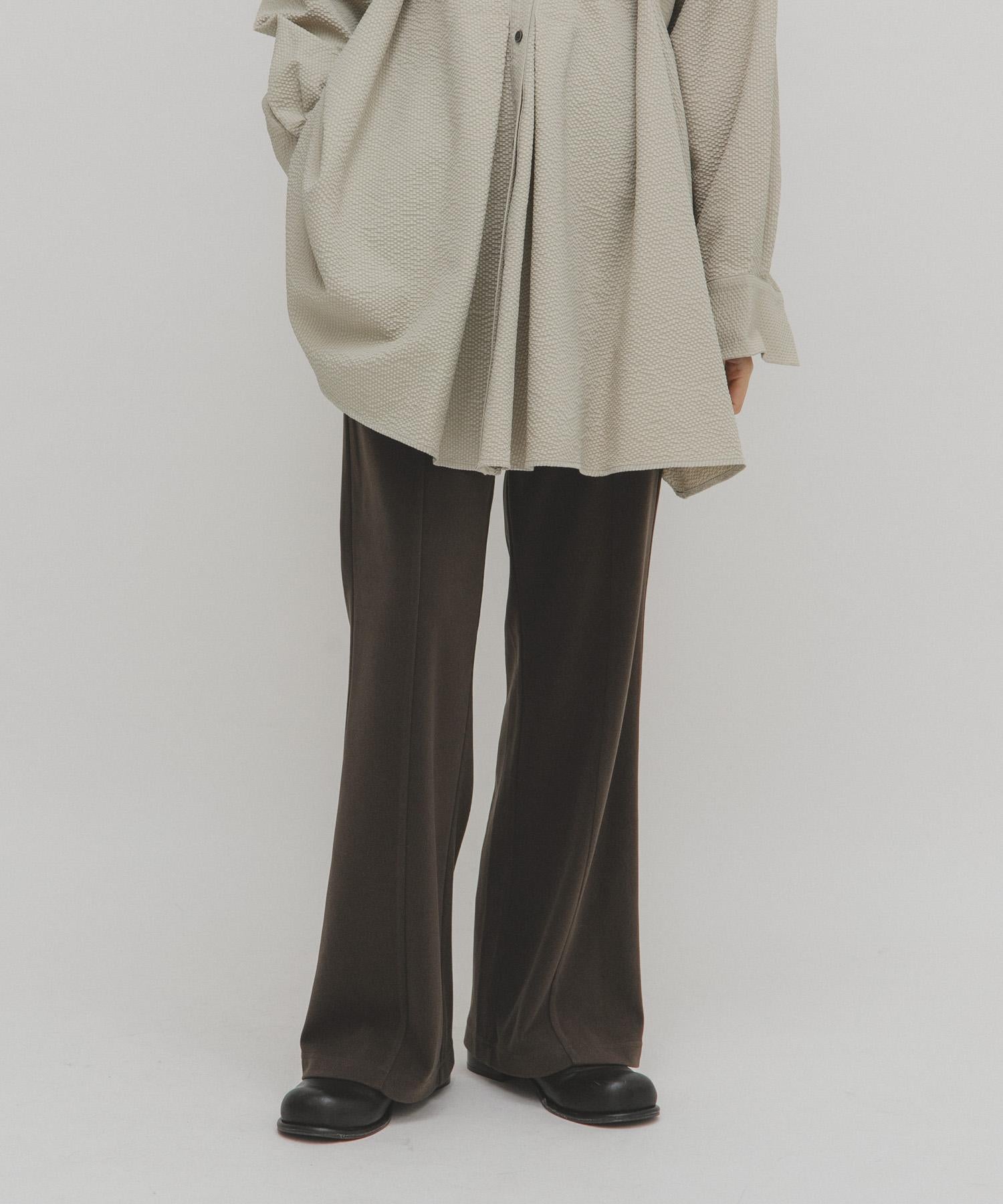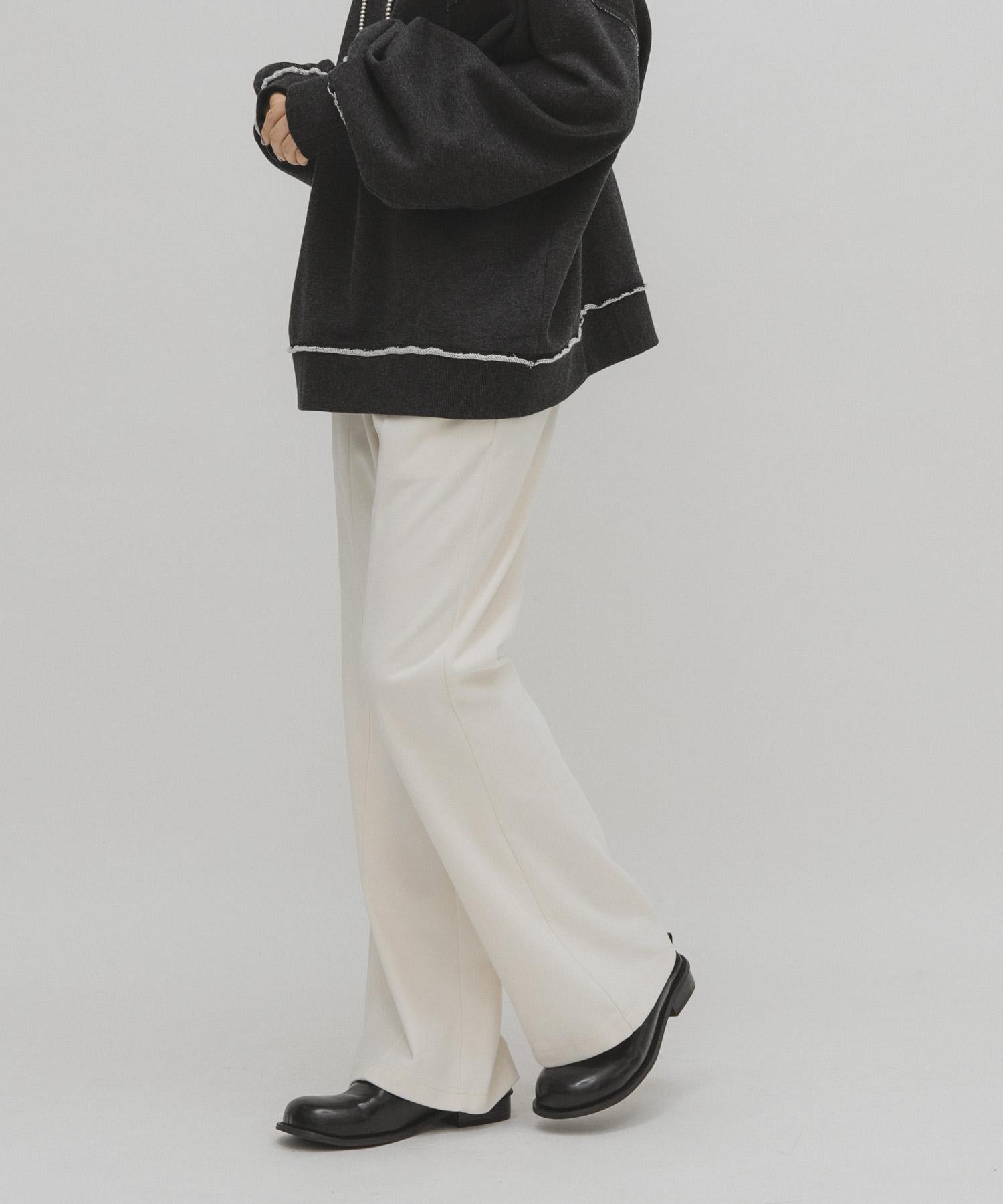 喇叭褲柔軟蓬鬆,略帶磨毛感。腰部鬆緊帶設計,寬鬆合體。可單穿、搭配迷你裙或長款上衣作為疊穿單品。