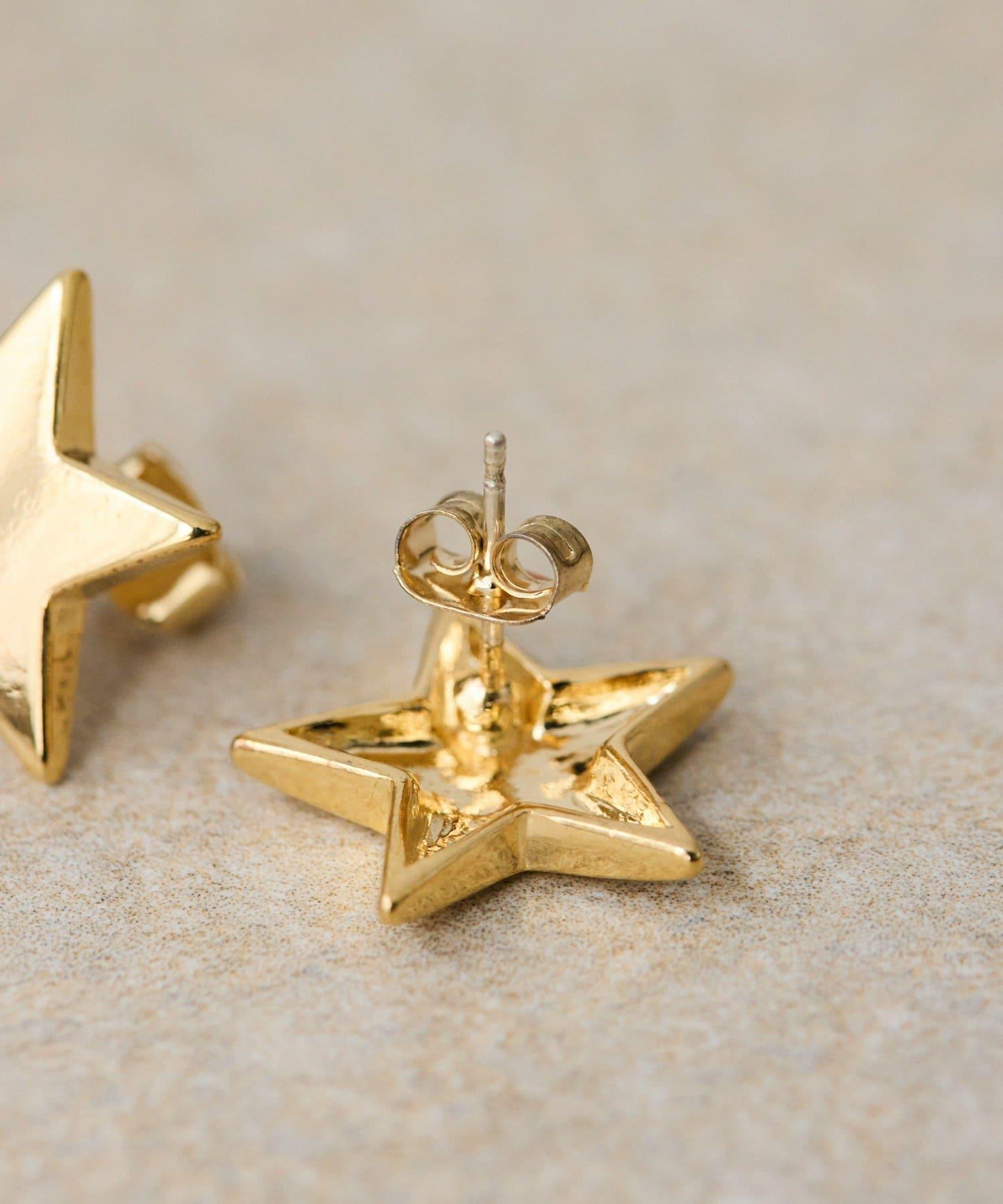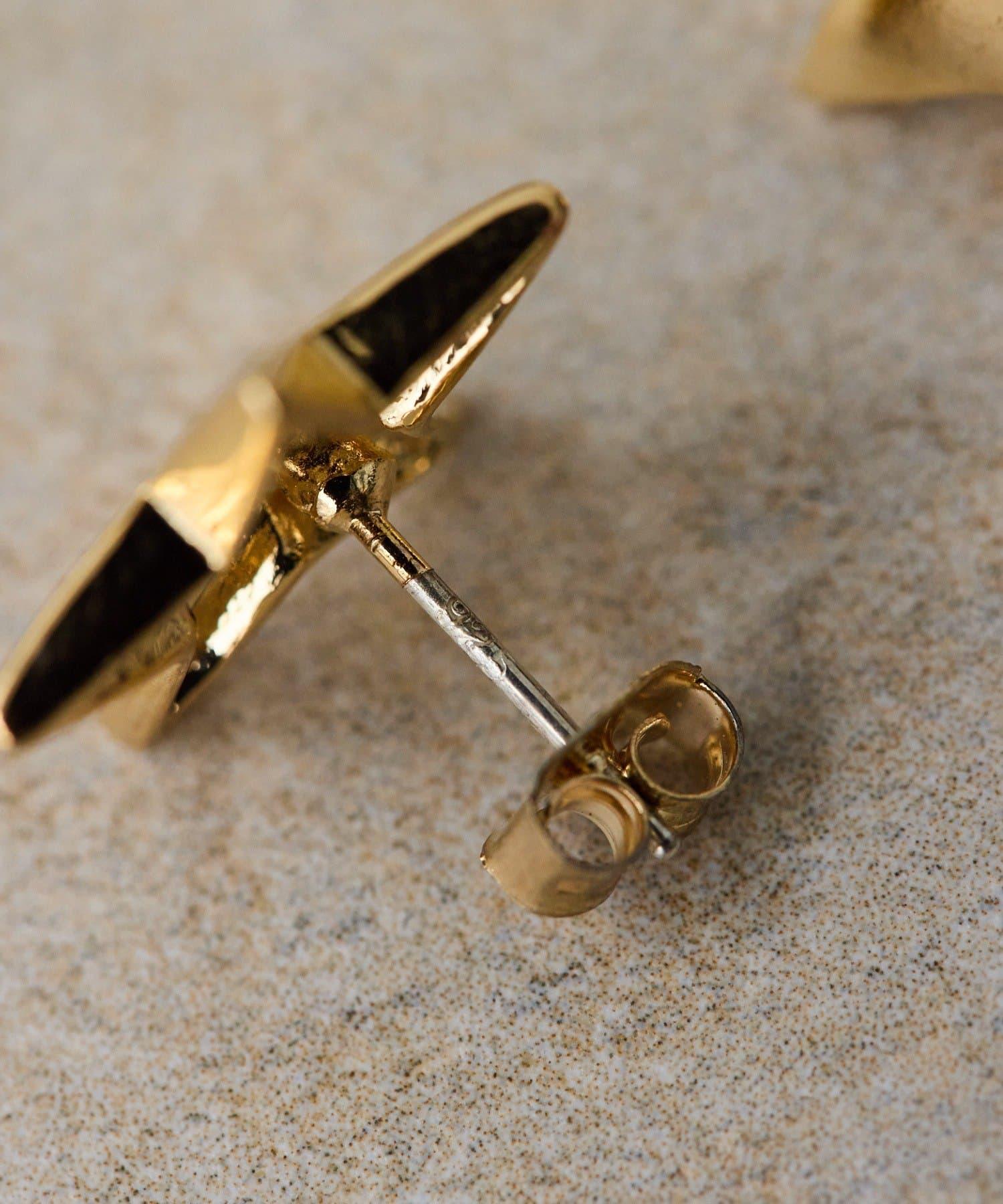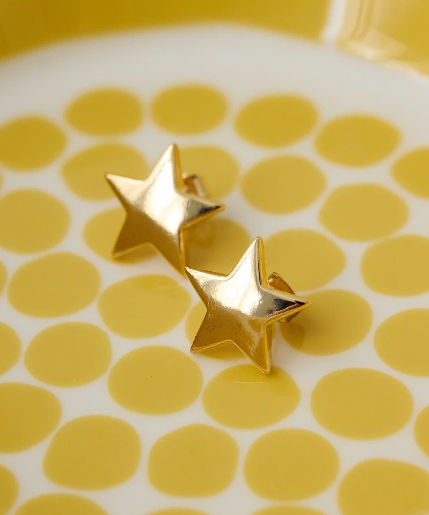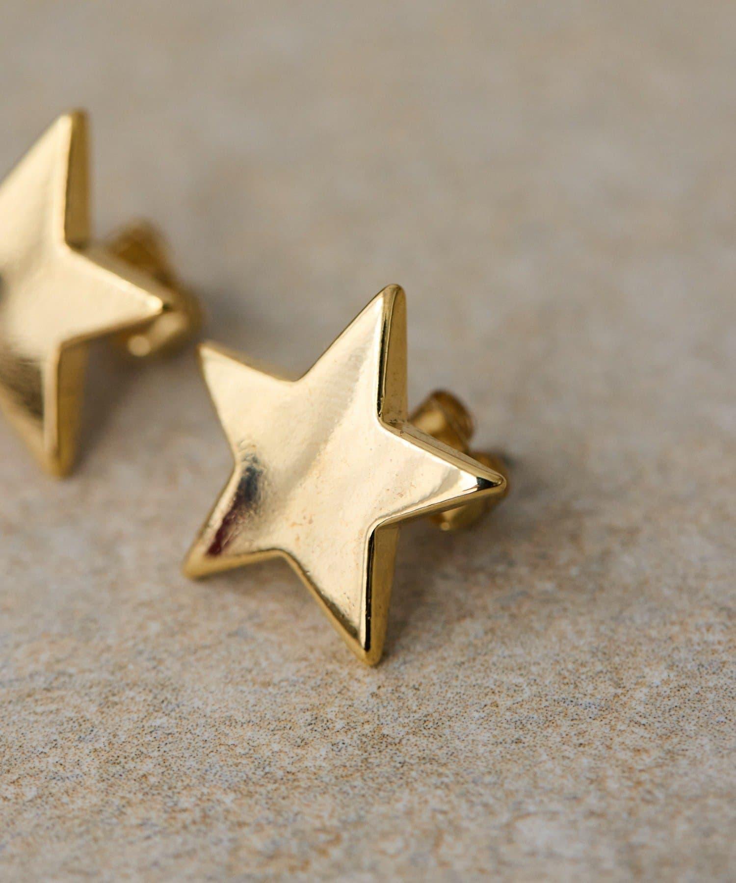 星形柱狀耳環具有清晰的金色平衡感。