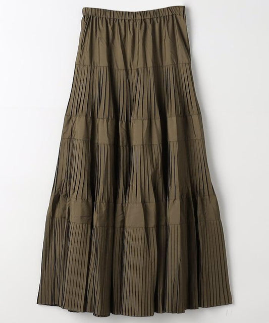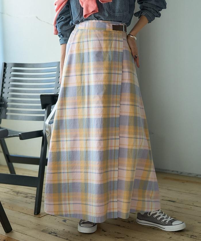 帶有淺色格紋圖案的喇叭裙,營造出本季的氛圍。