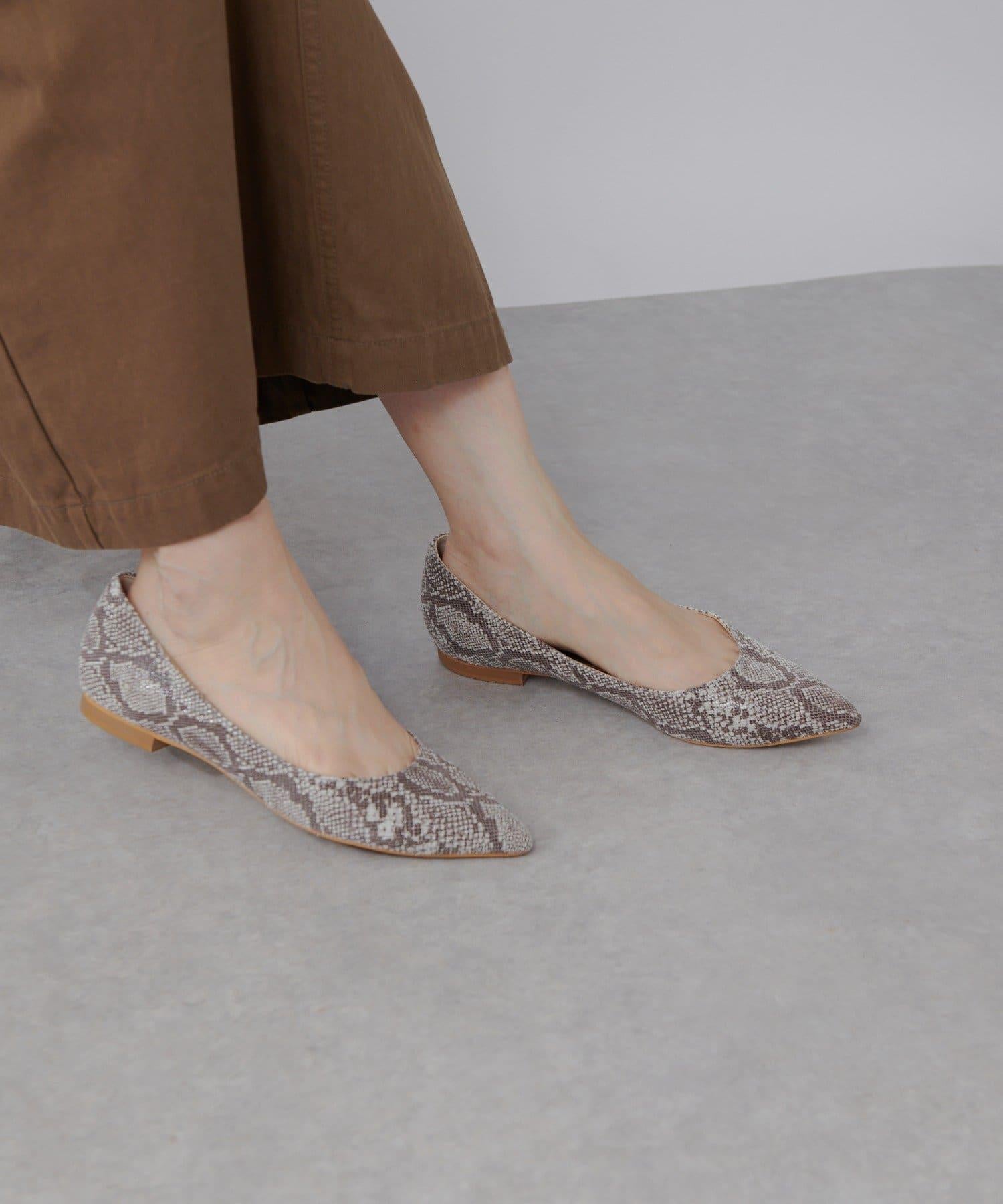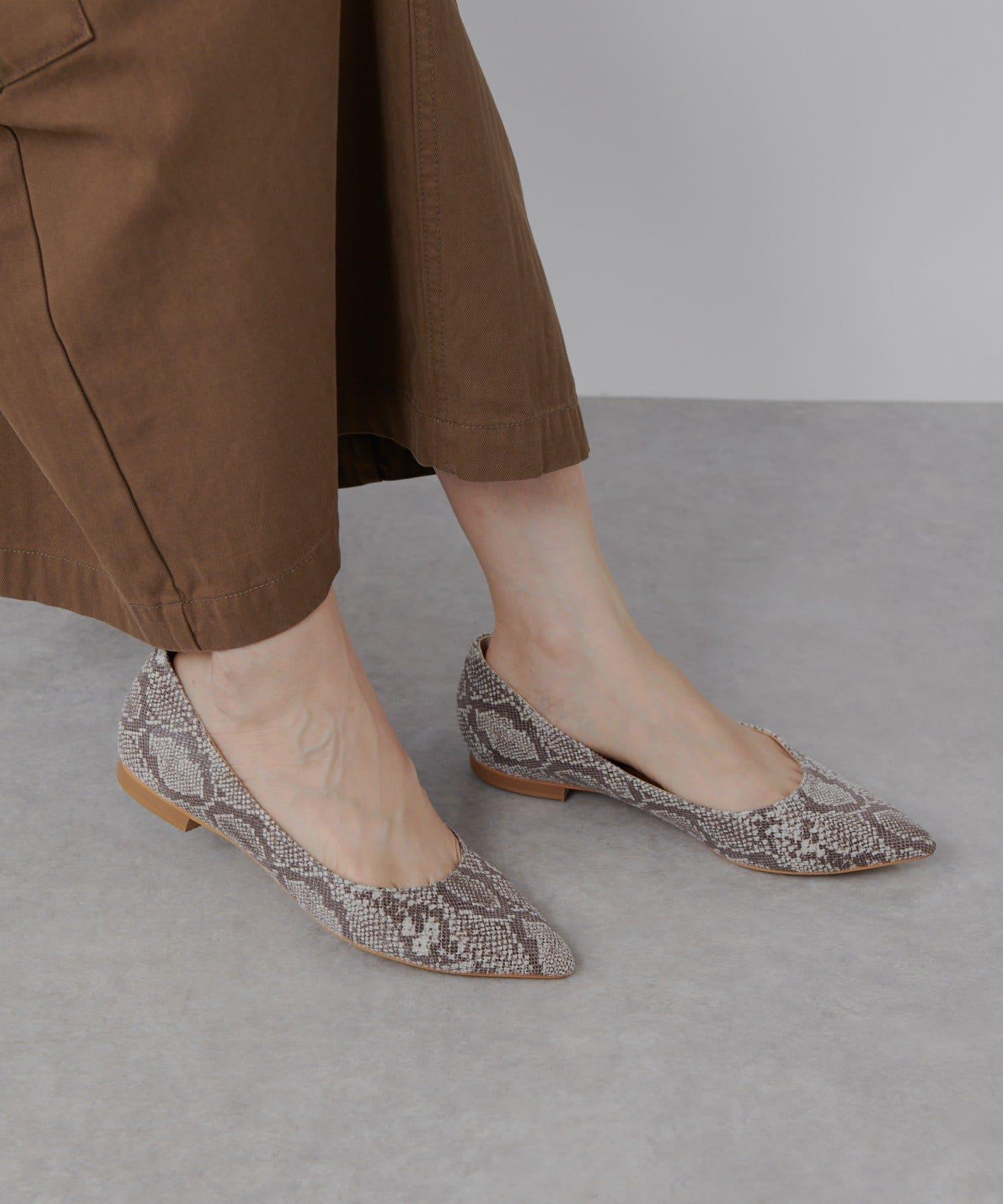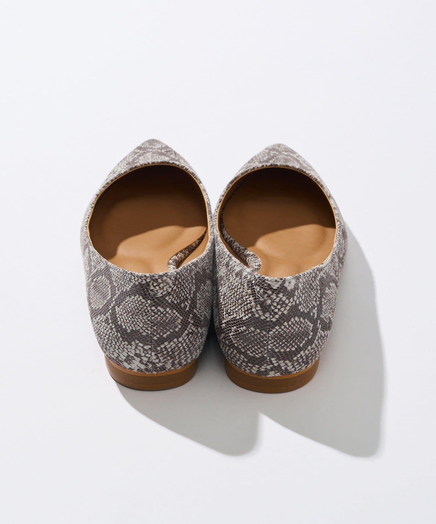 【時尚尖銳風格的腳下】Python紋平底鞋