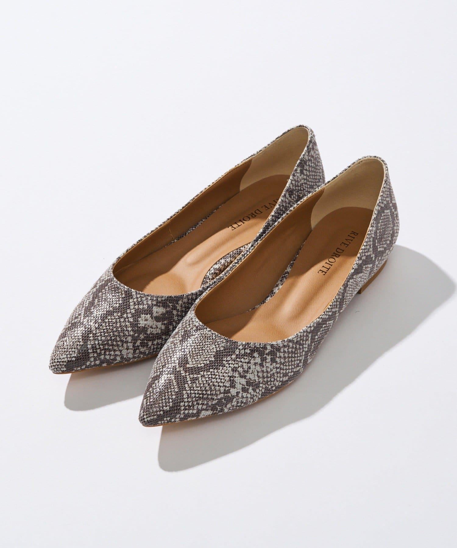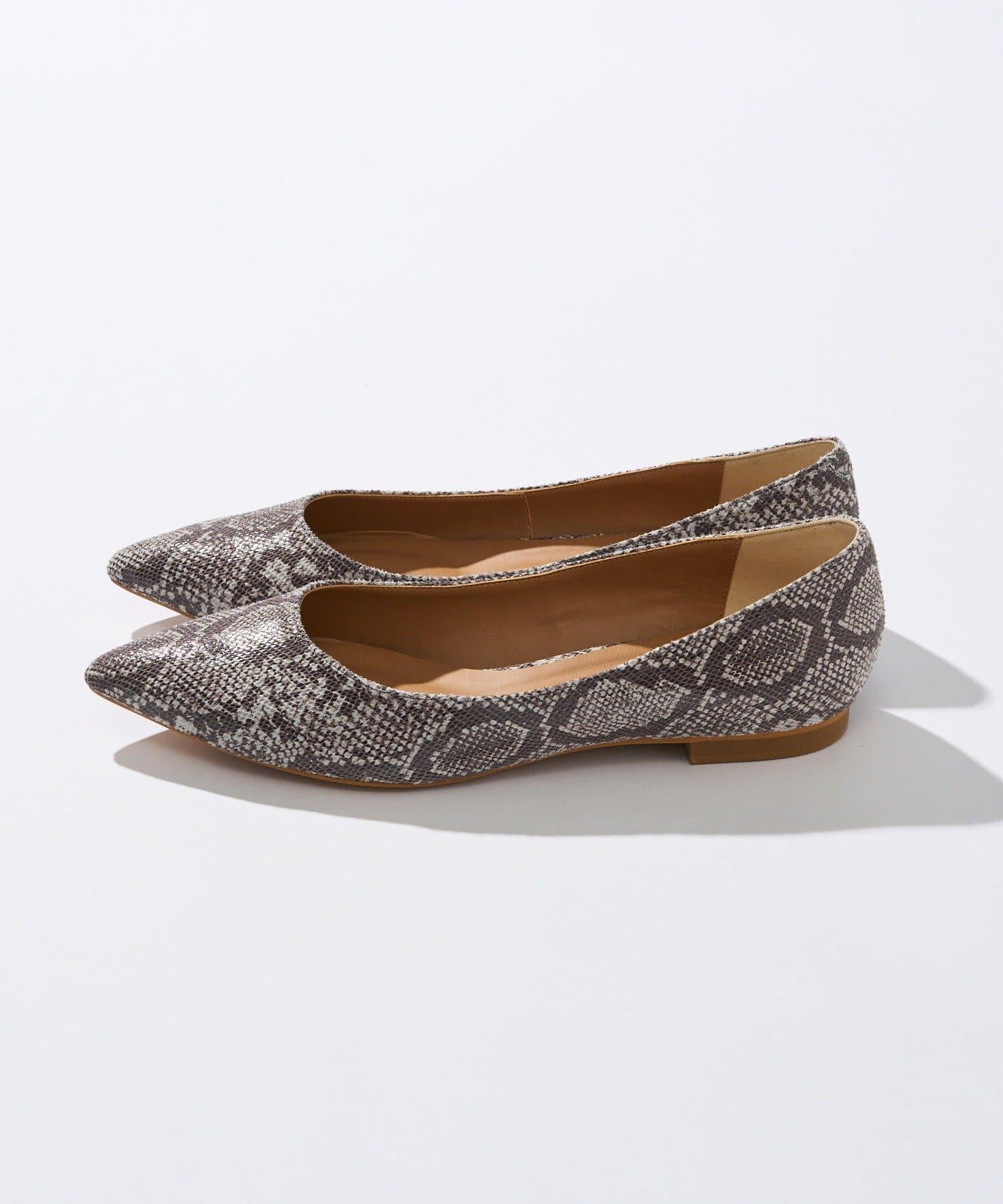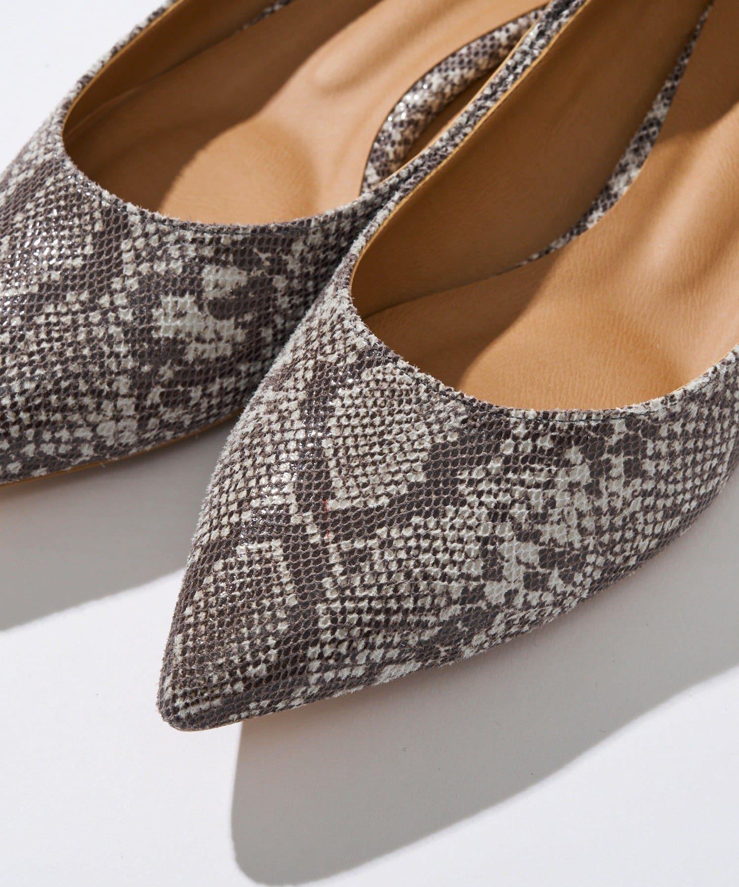 【時尚尖銳風格的腳下】Python紋平底鞋