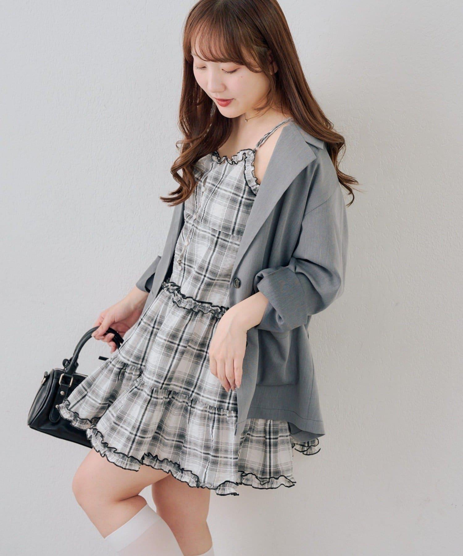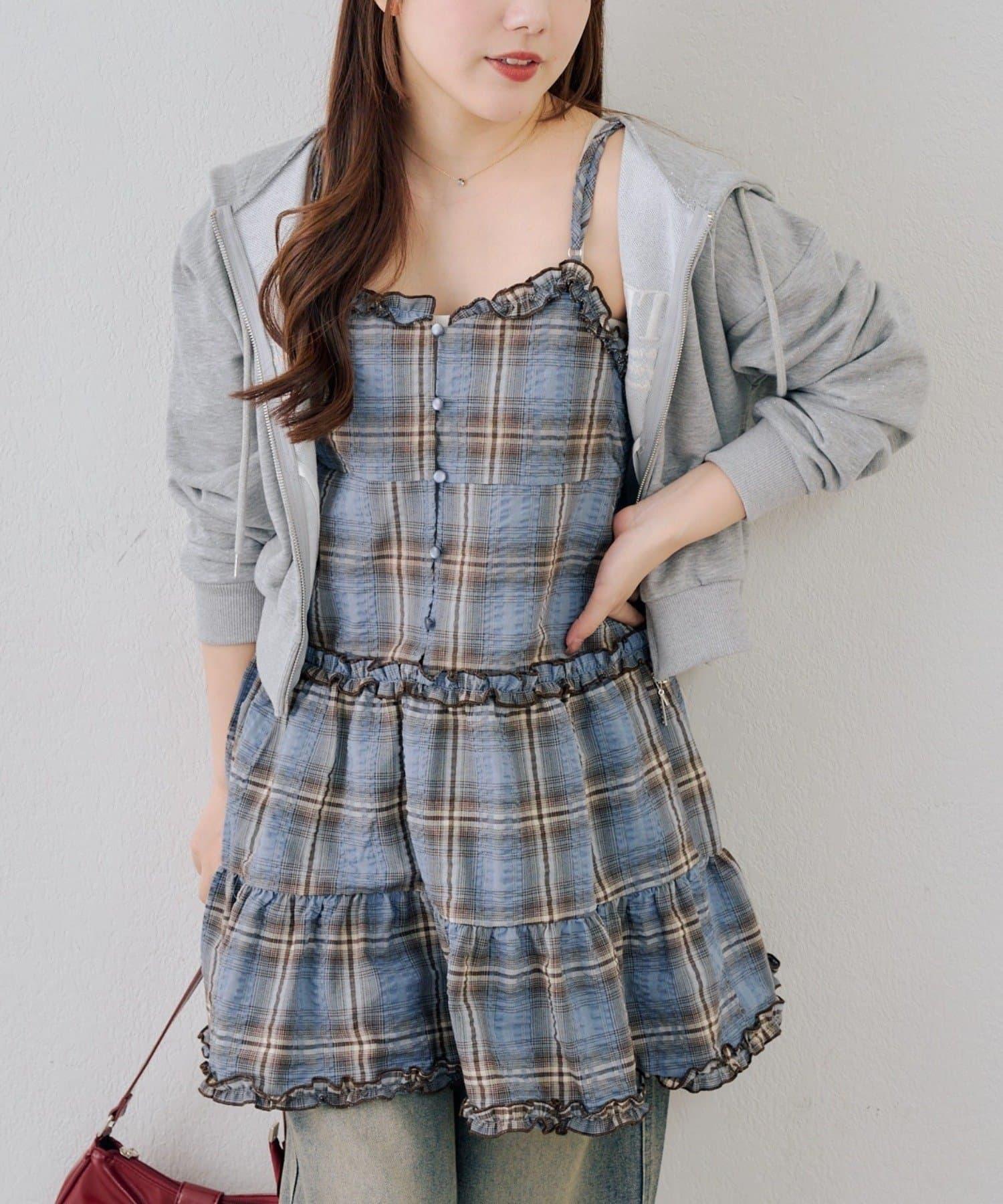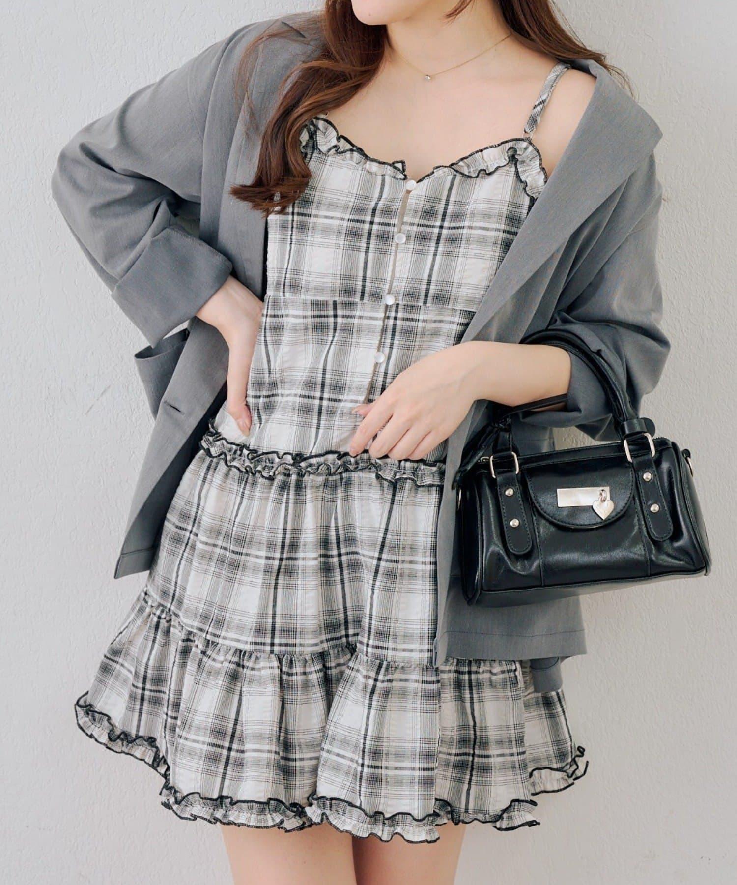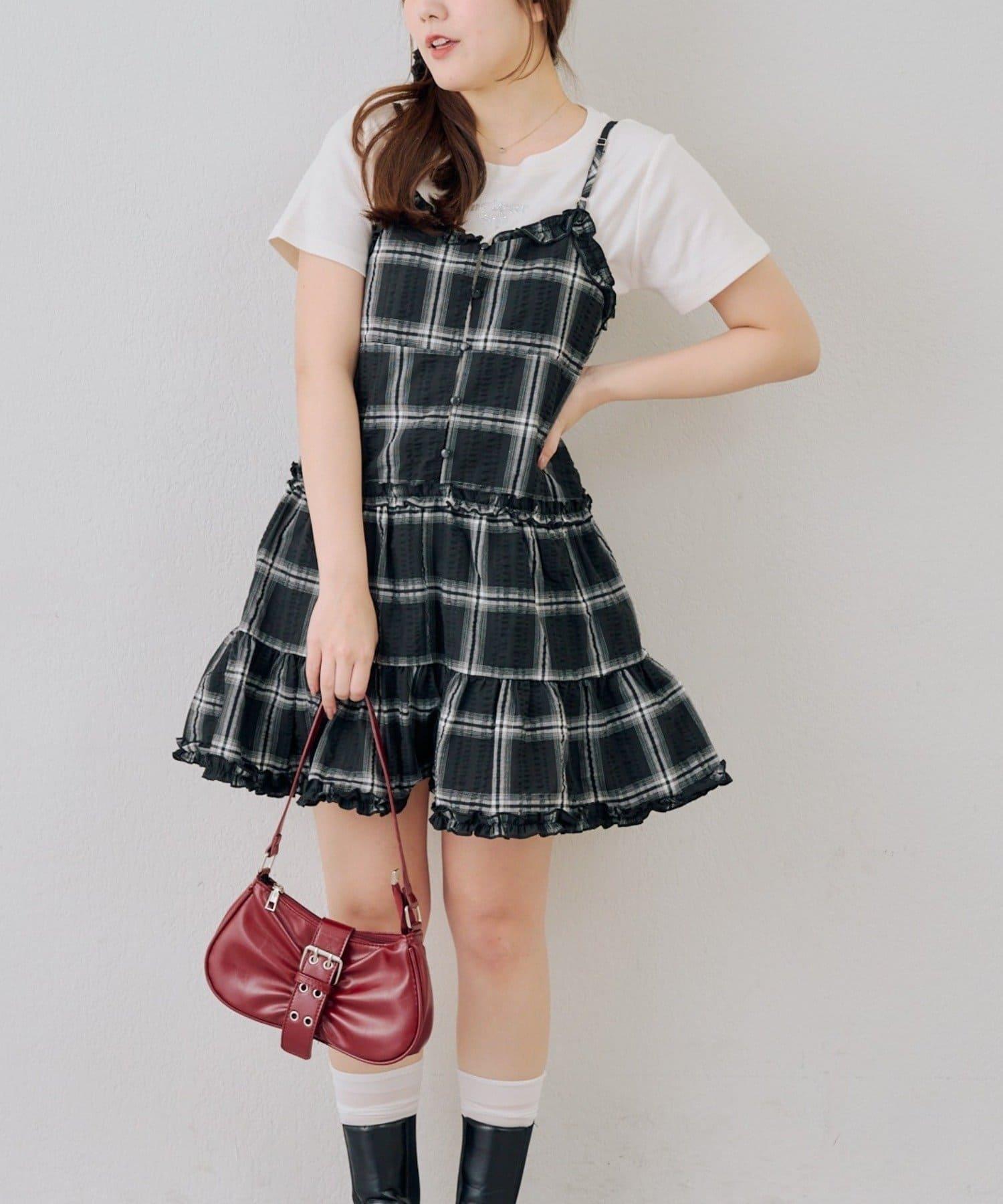 時尚層次感吊帶層疊連衣裙