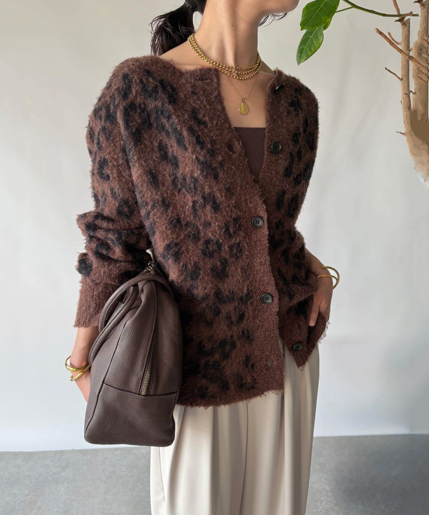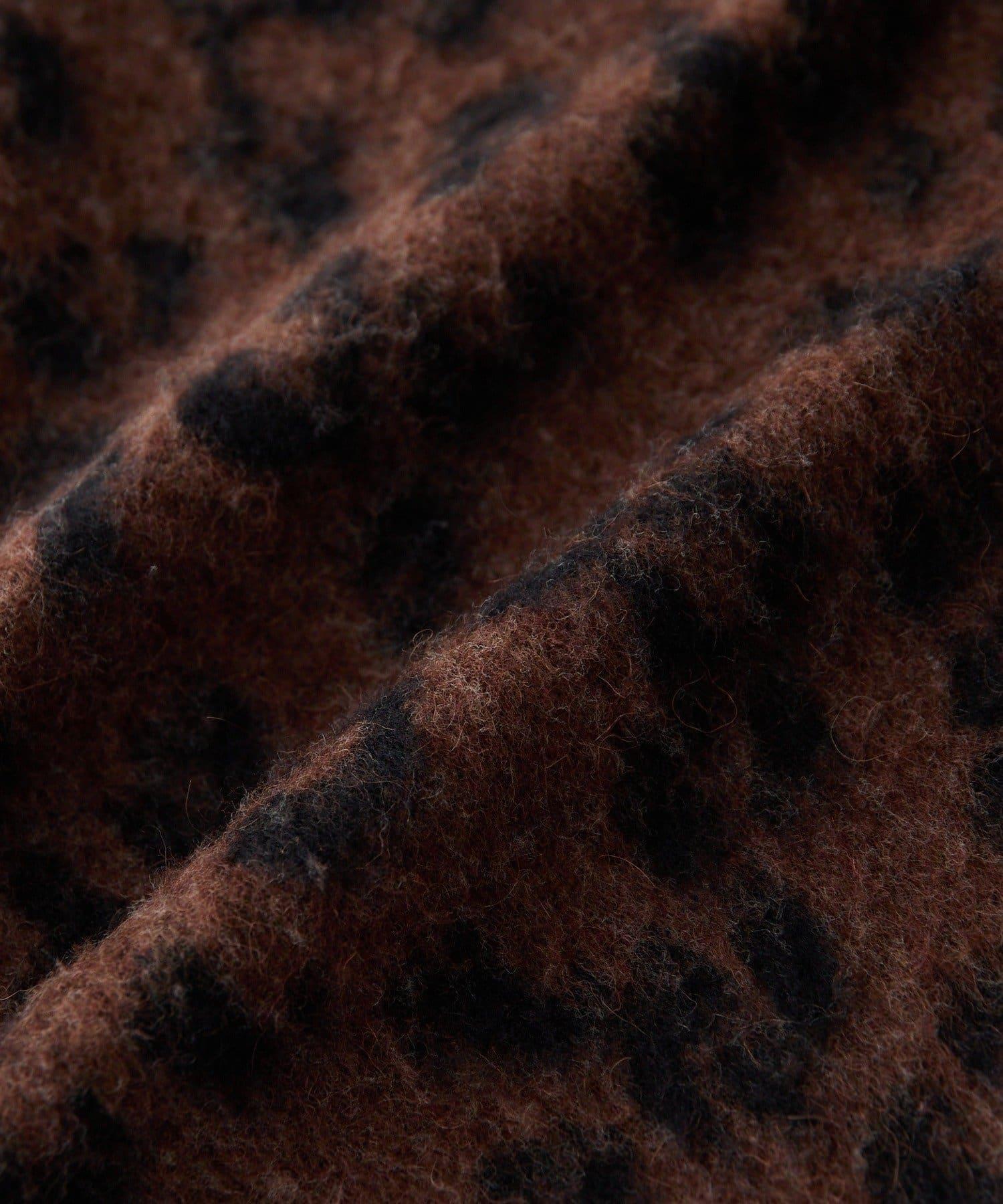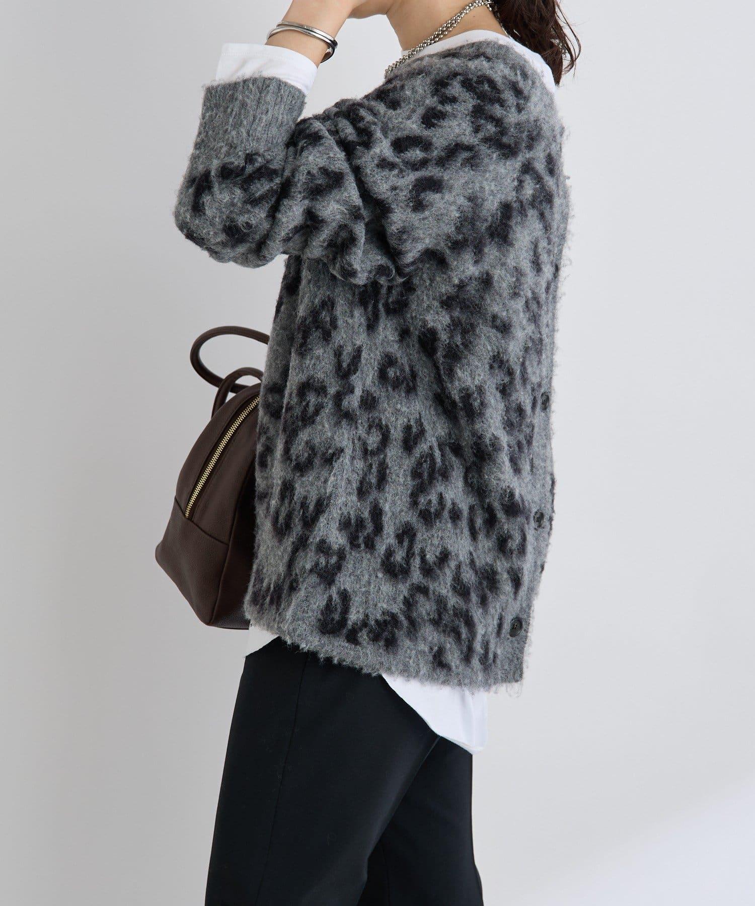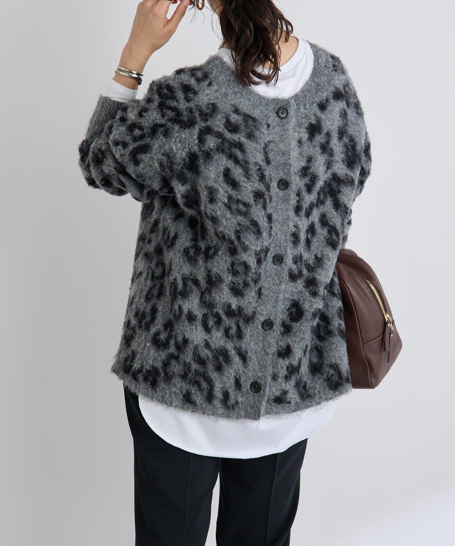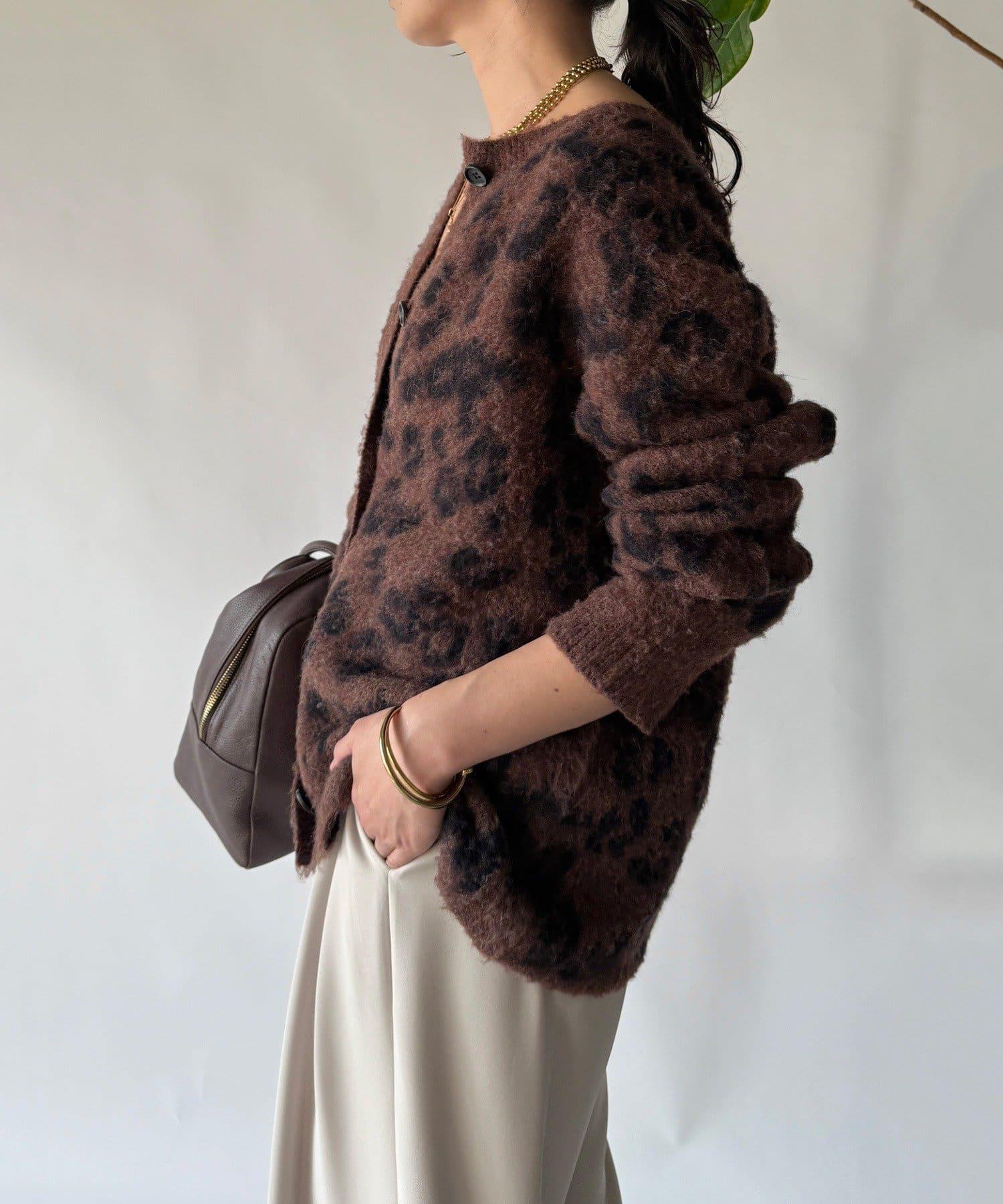 這款開衫的表面是長長的絨毛羊駝混紡面料和豹紋圖案,同時具有季節感和時尚感。