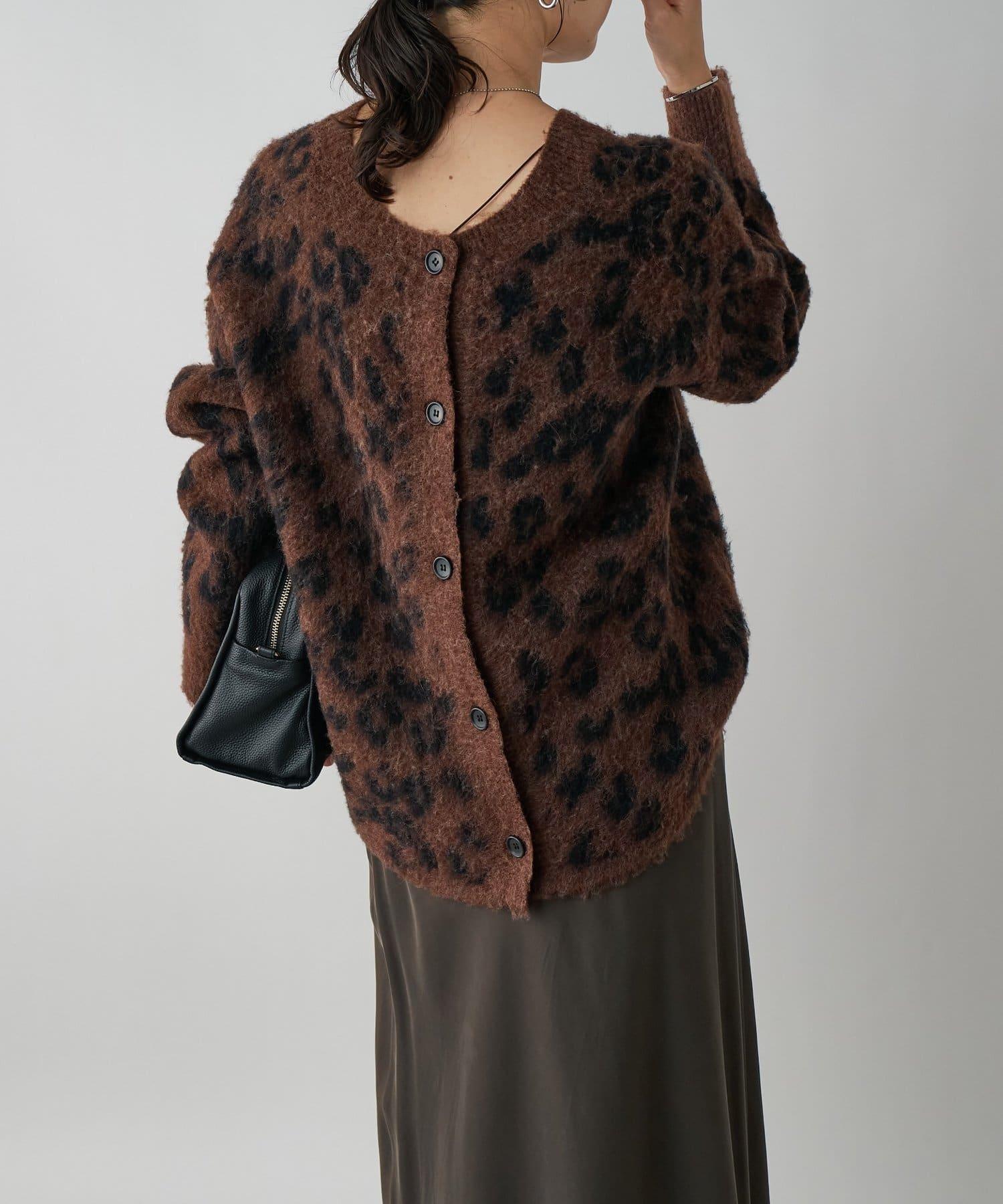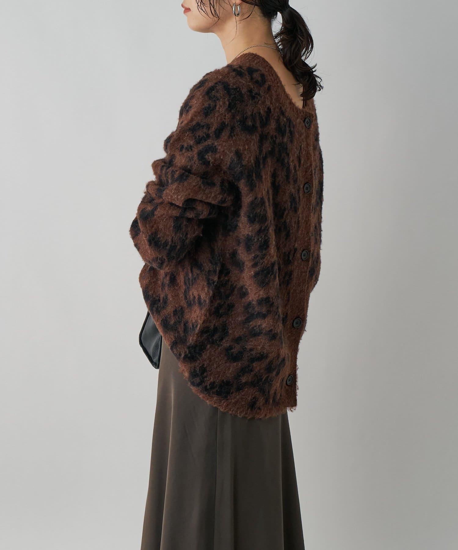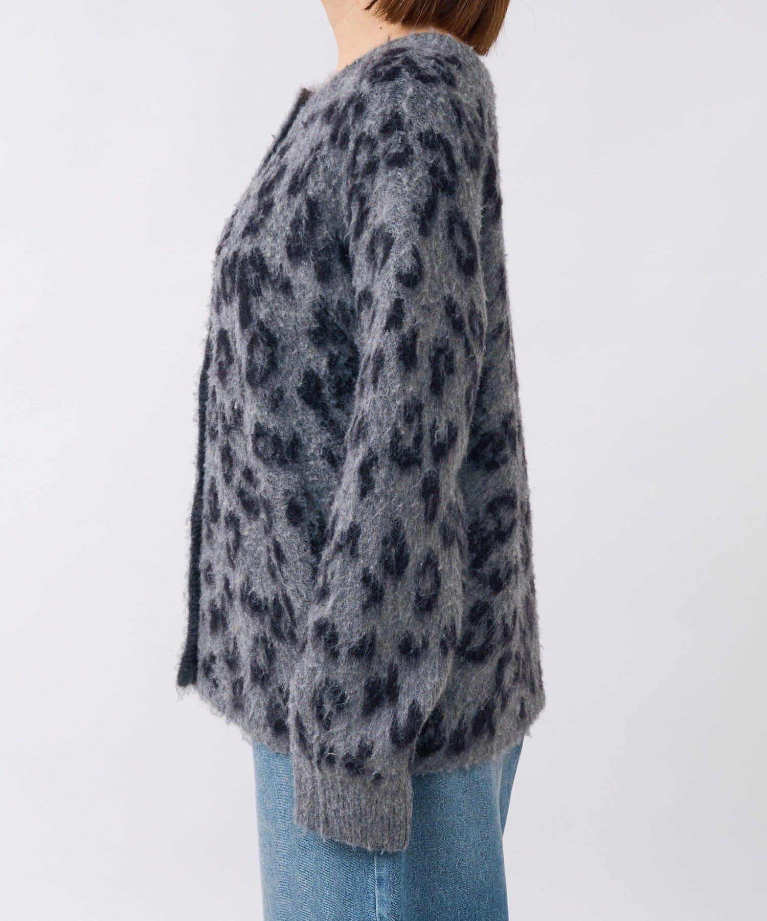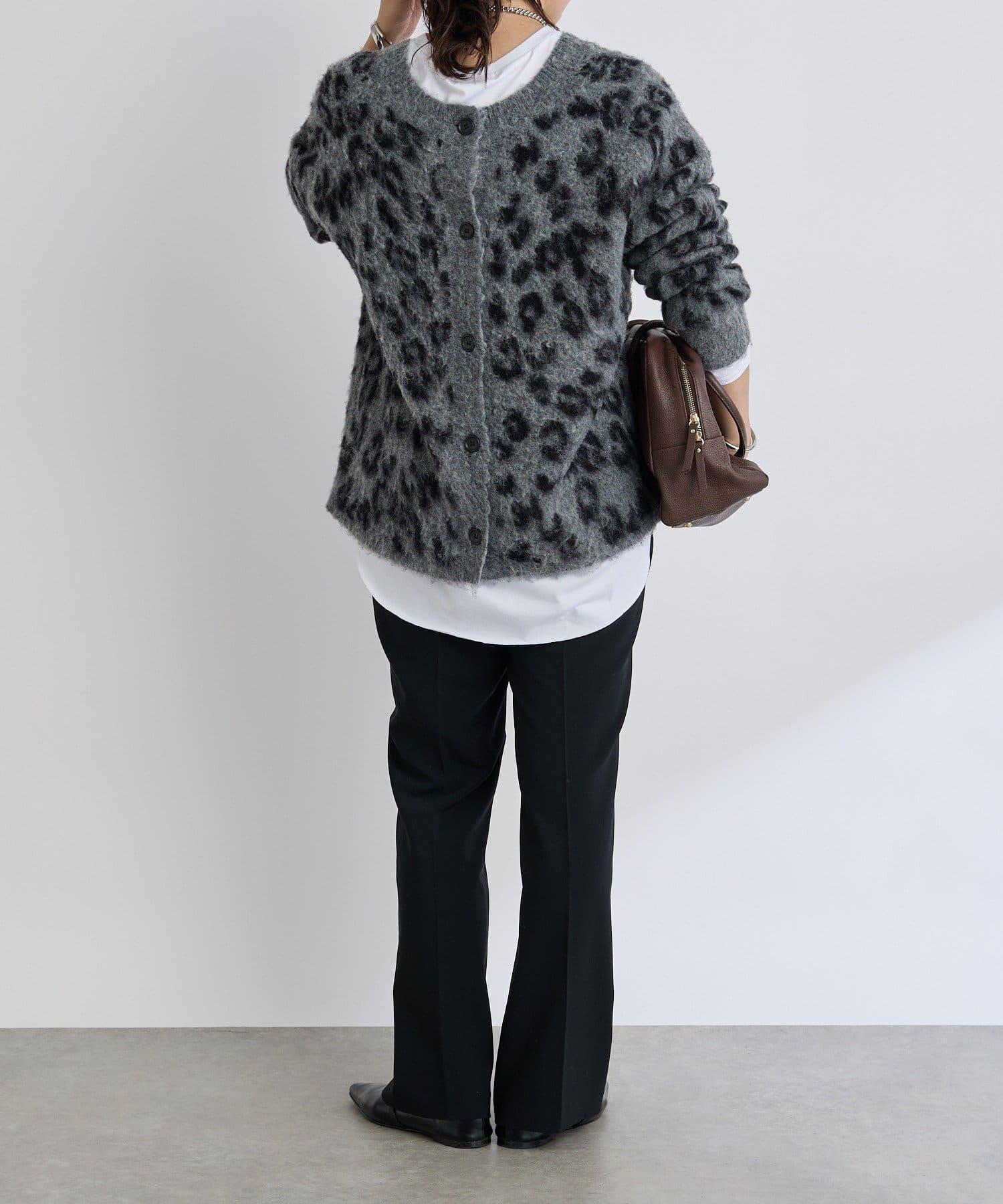 這款開衫的表面是長長的絨毛羊駝混紡面料和豹紋圖案,同時具有季節感和時尚感。