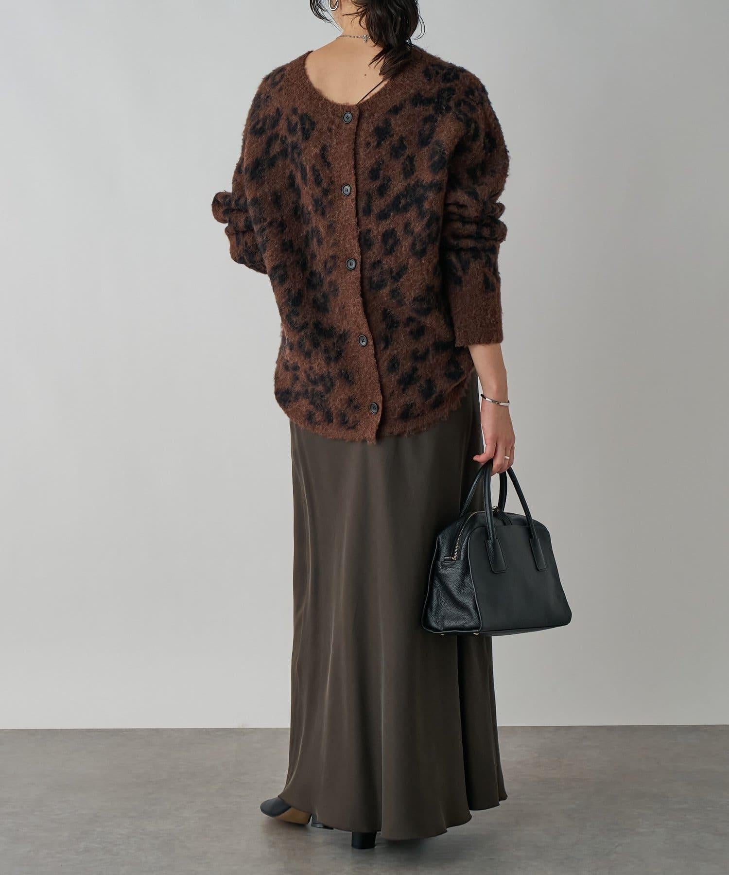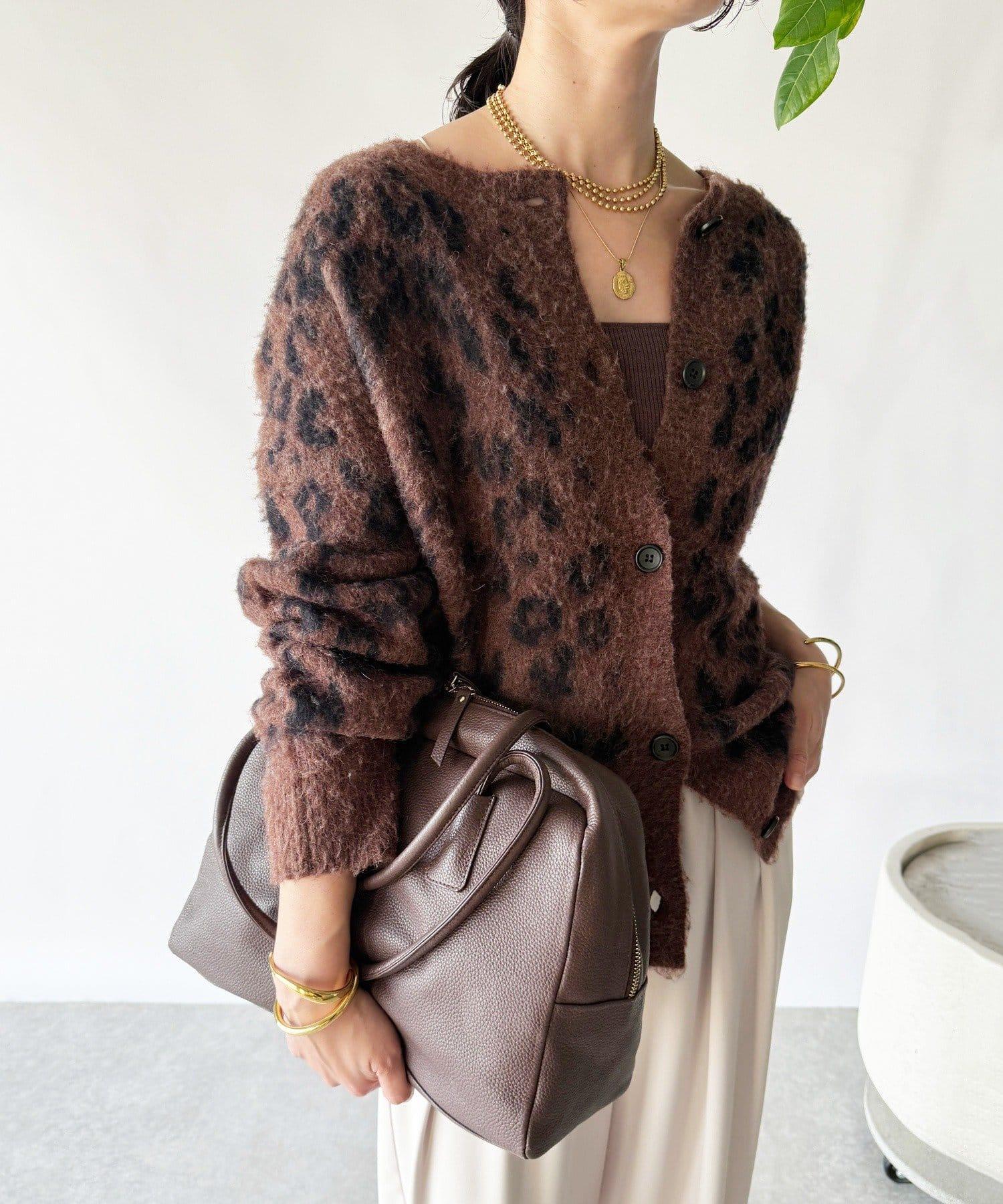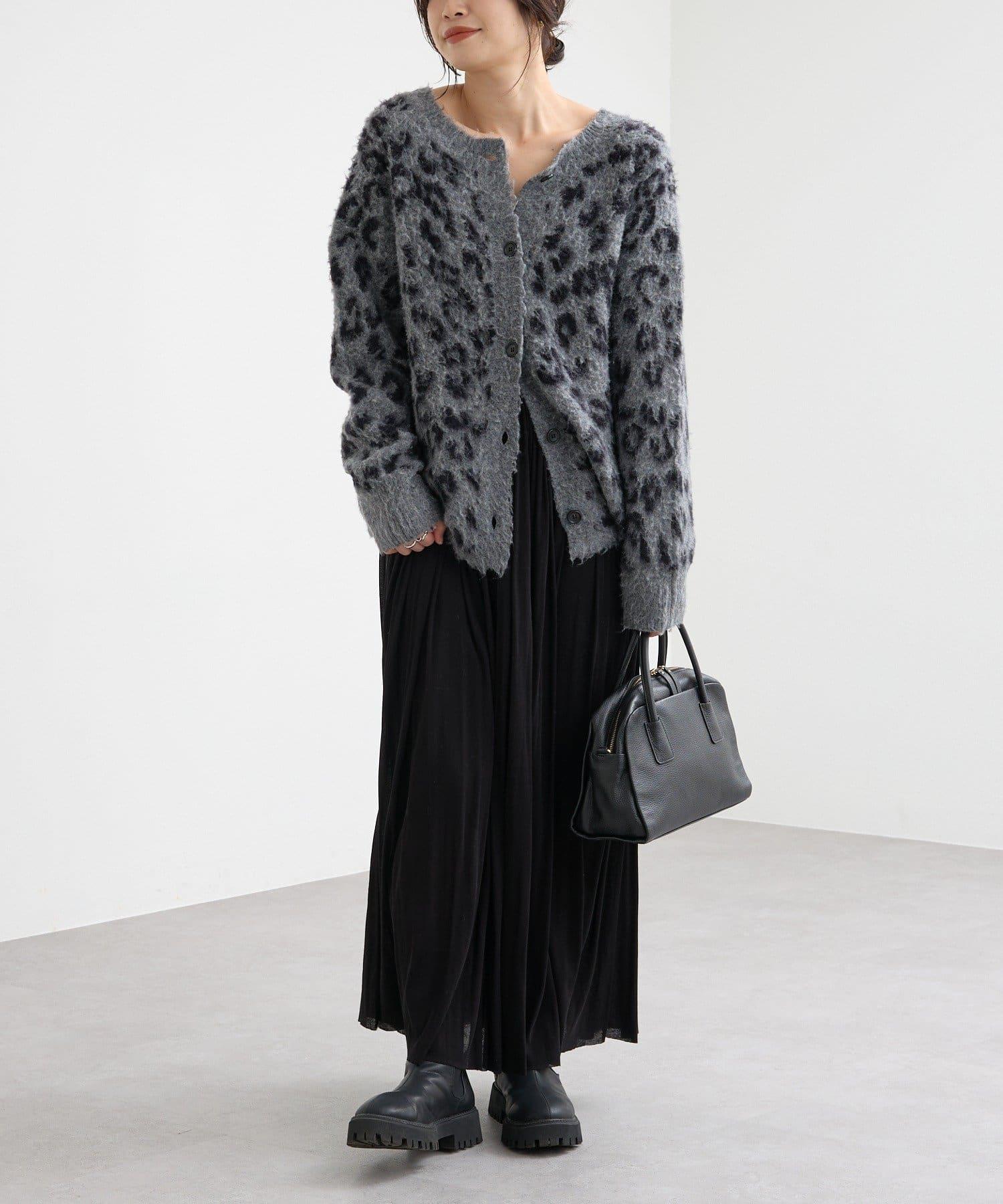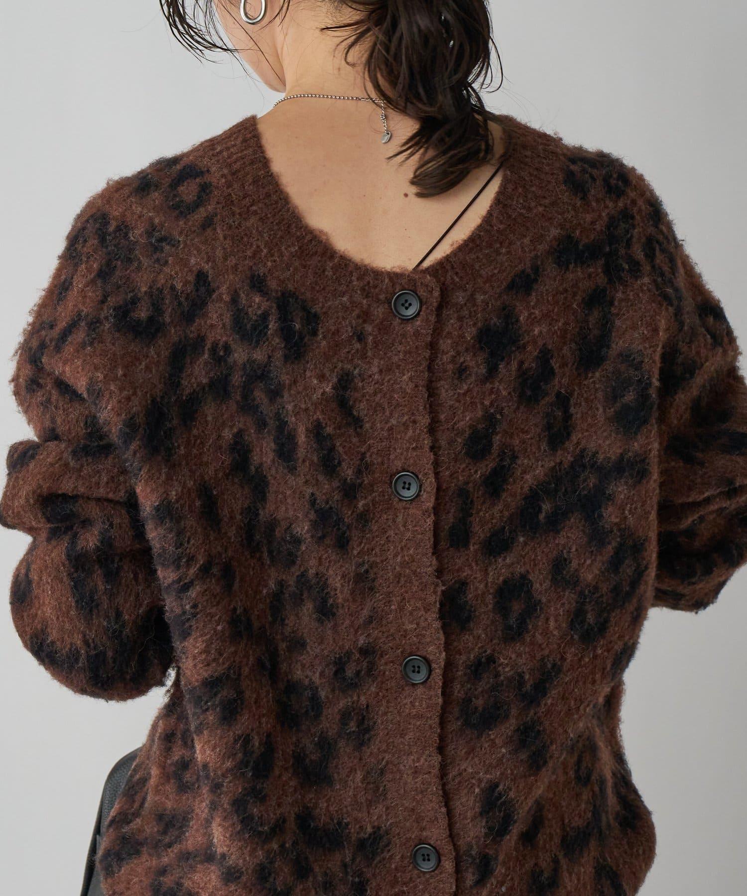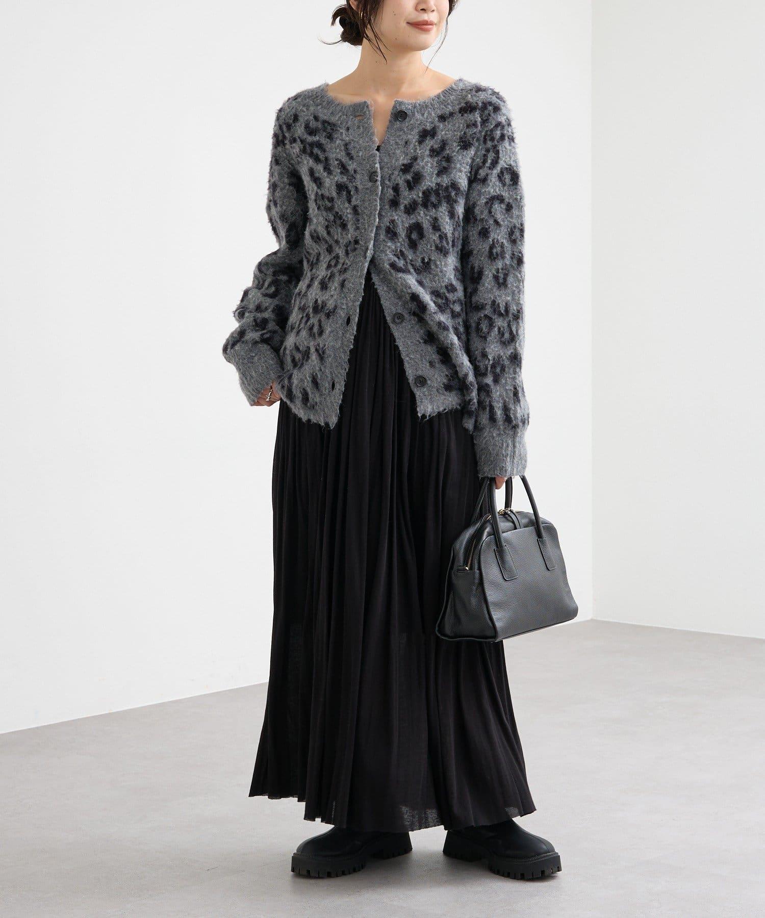 這款開衫的表面是長長的絨毛羊駝混紡面料和豹紋圖案,同時具有季節感和時尚感。