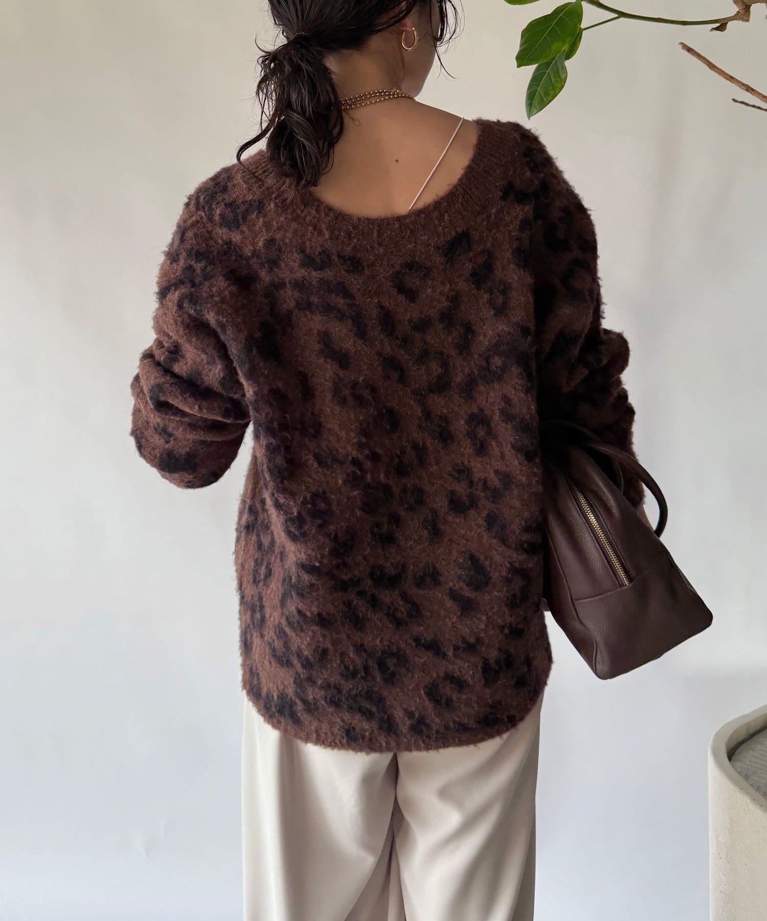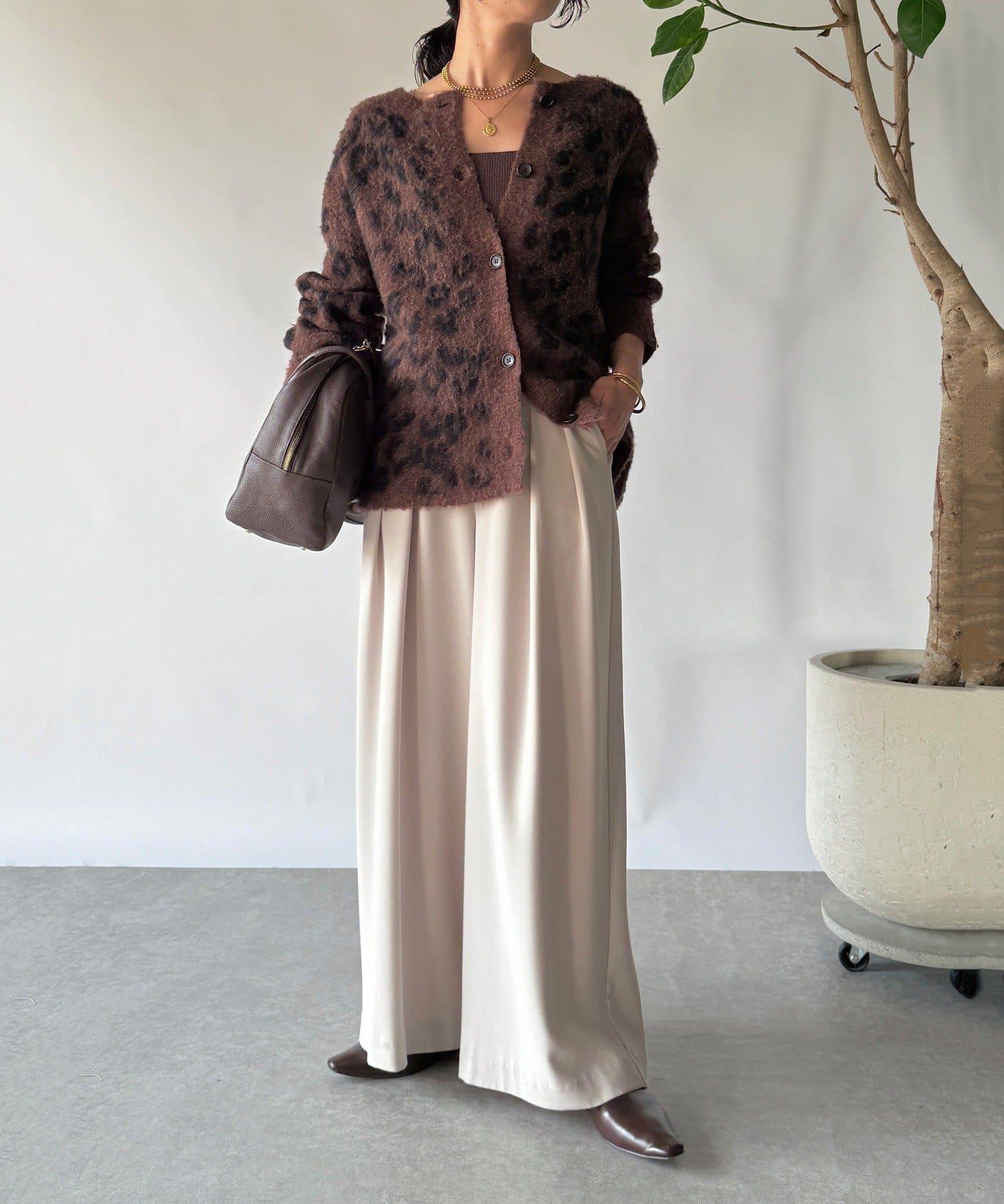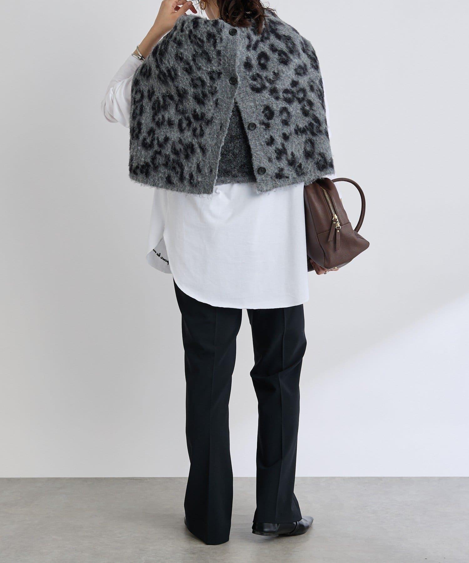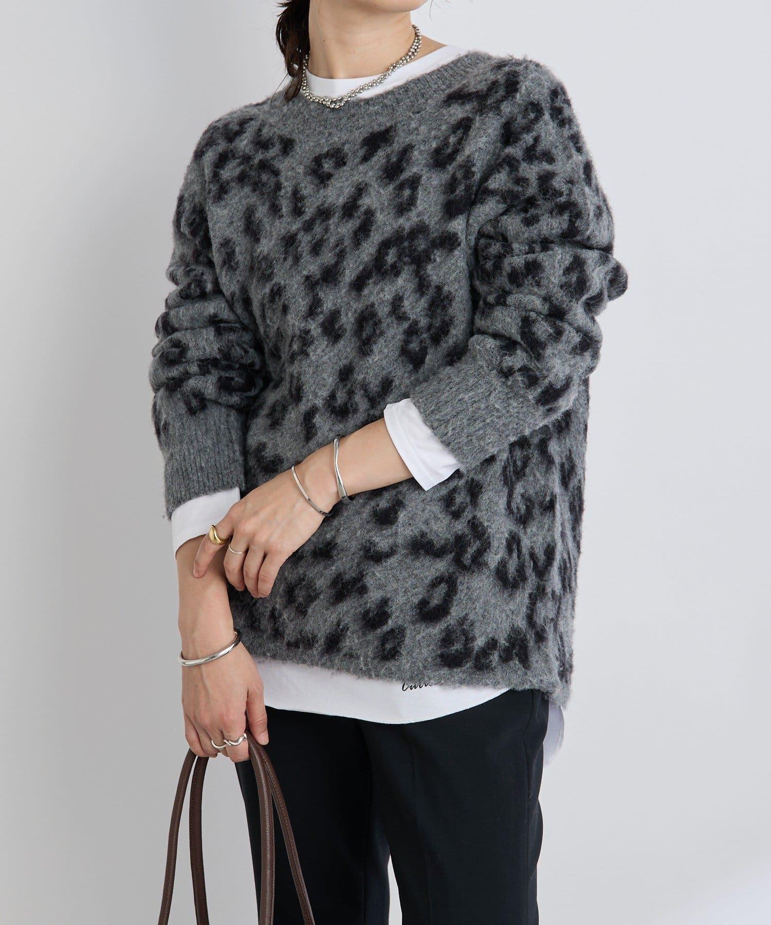 這款開衫的表面是長長的絨毛羊駝混紡面料和豹紋圖案,同時具有季節感和時尚感。