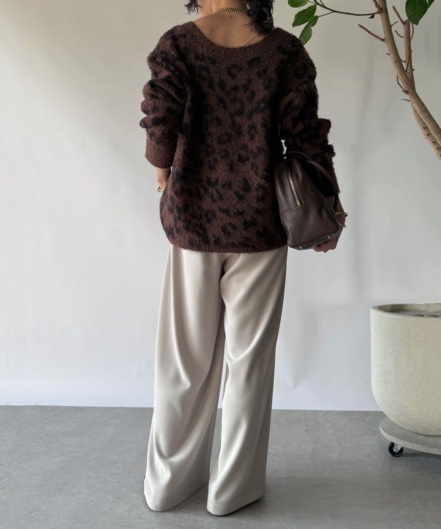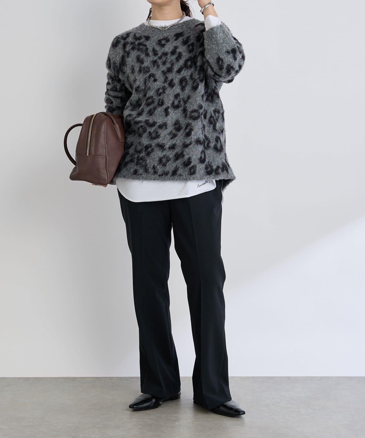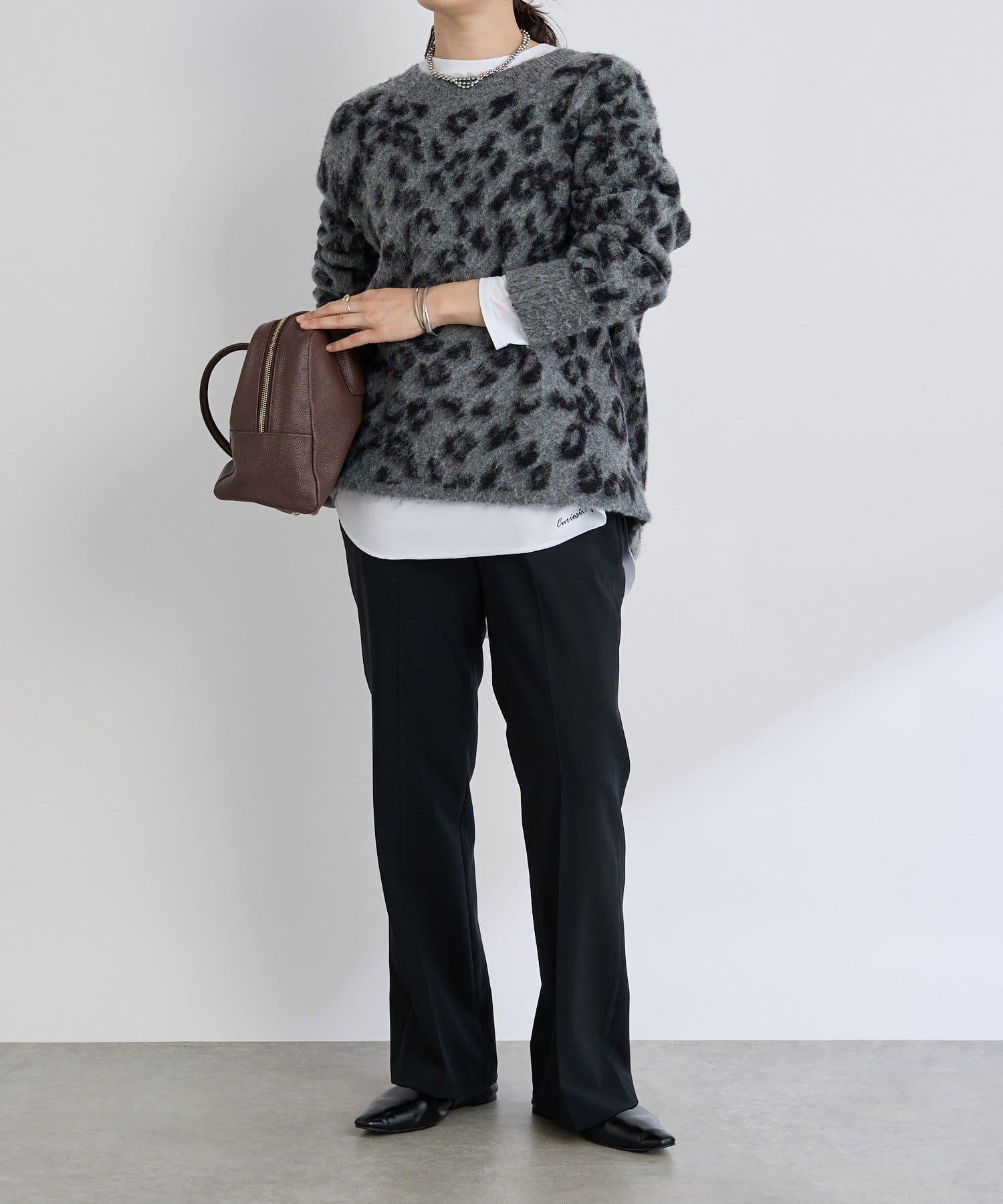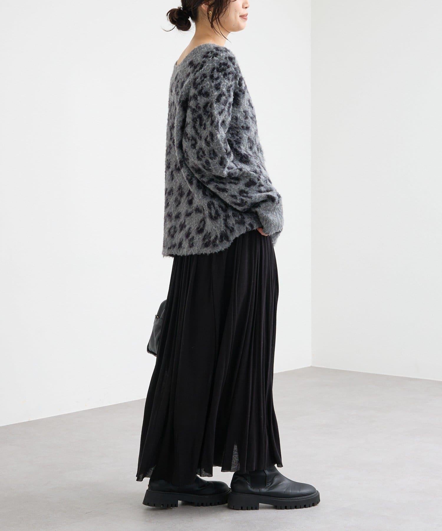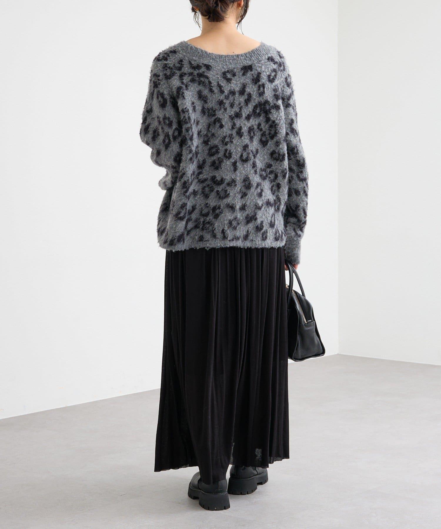 這款開衫的表面是長長的絨毛羊駝混紡面料和豹紋圖案,同時具有季節感和時尚感。