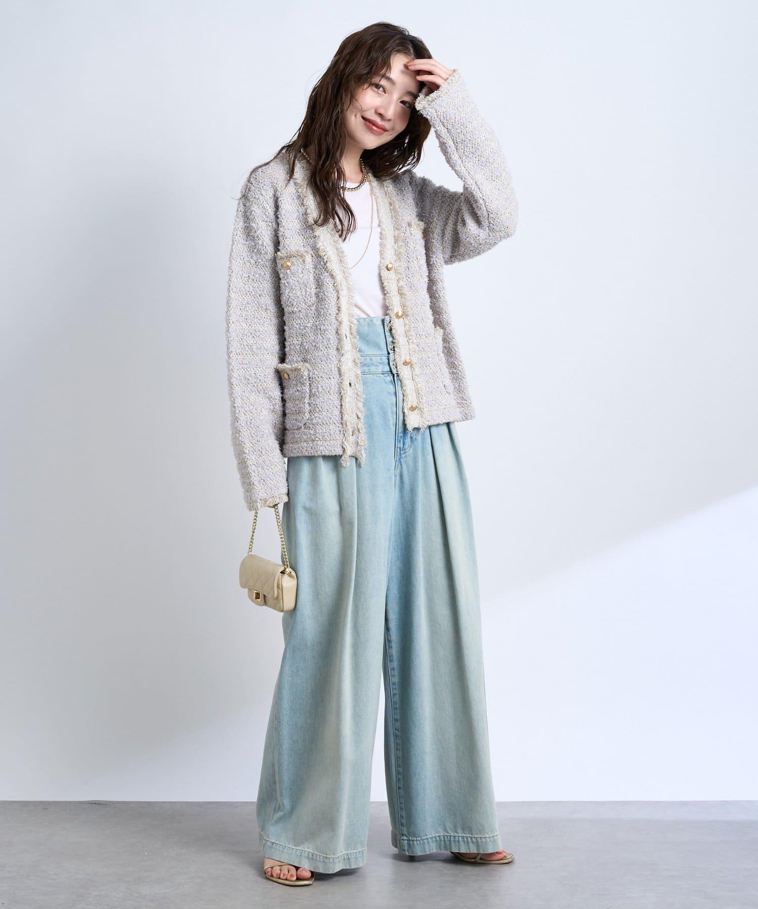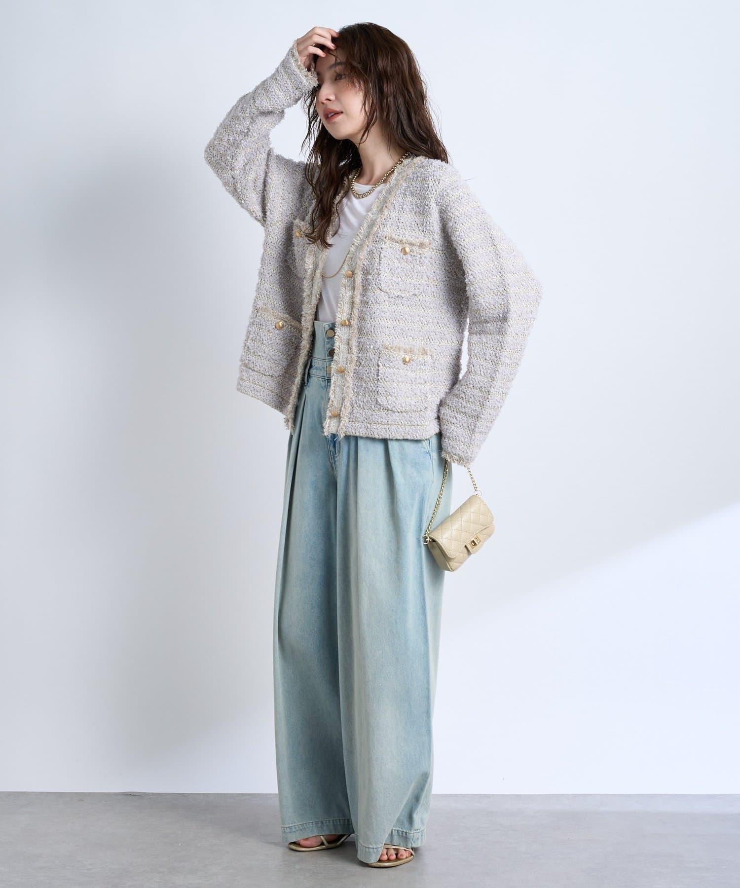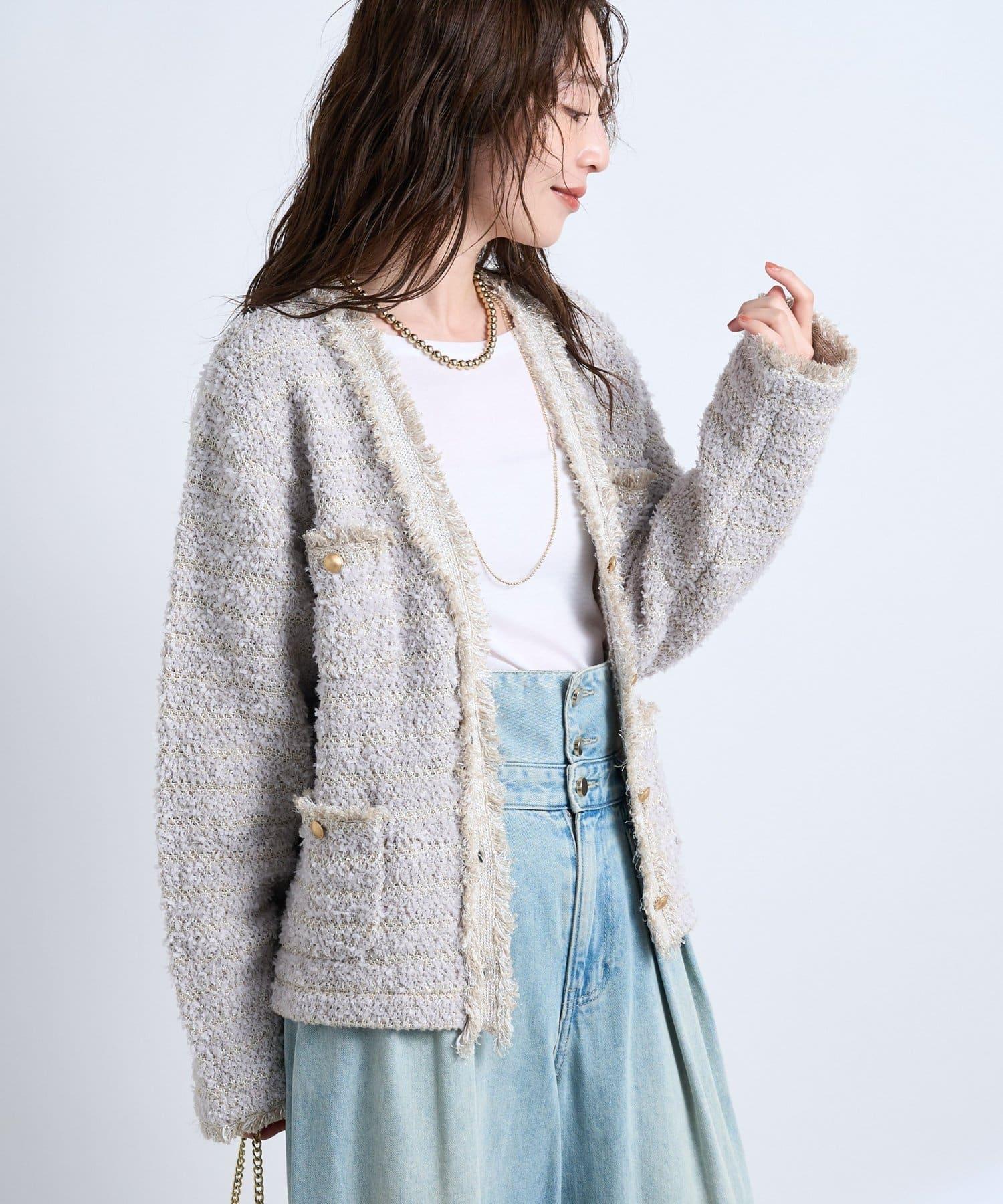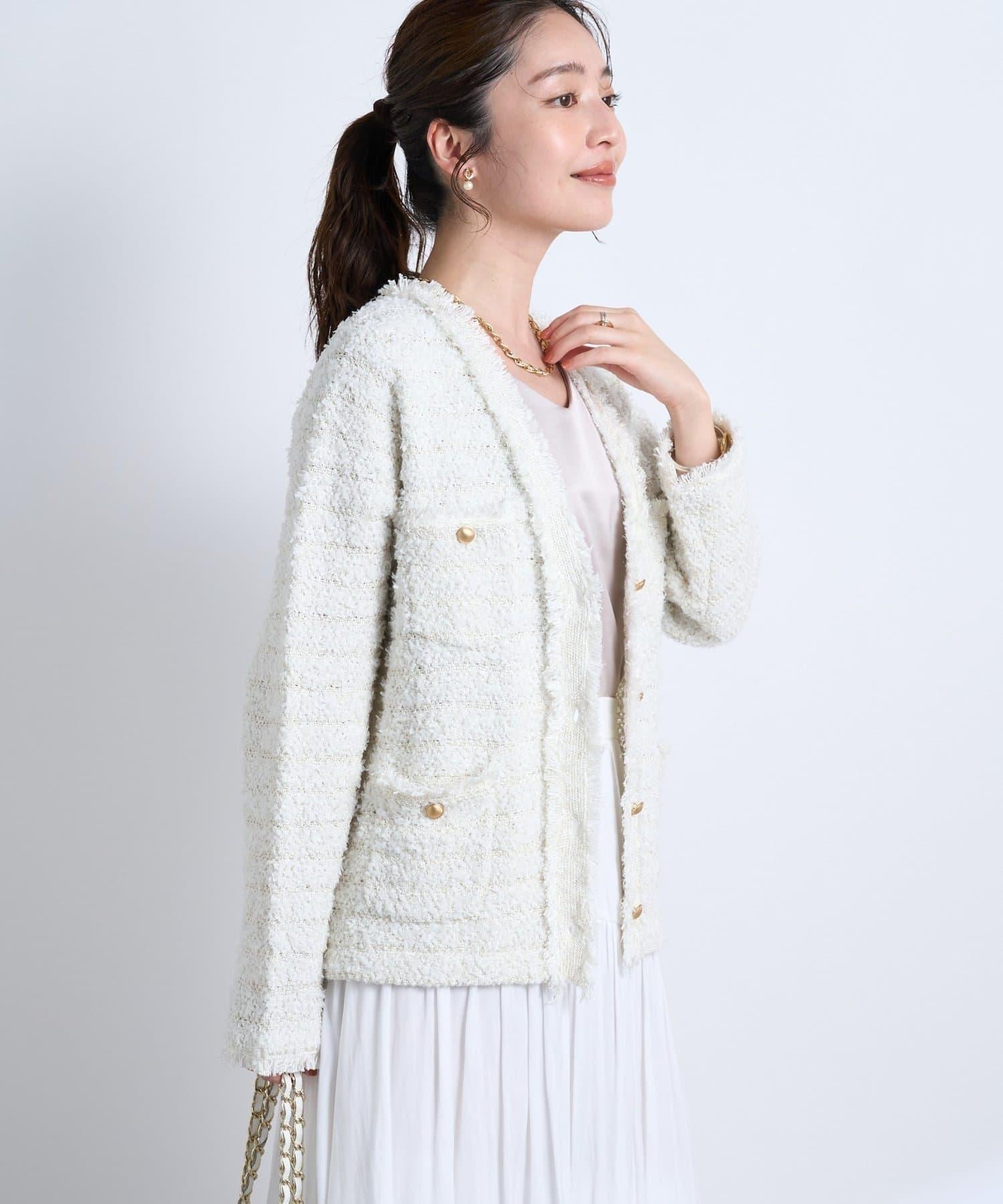 華麗的斜紋軟呢風格針織開衫,可以像外套一樣穿著。