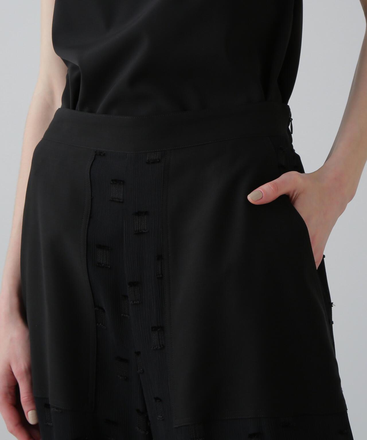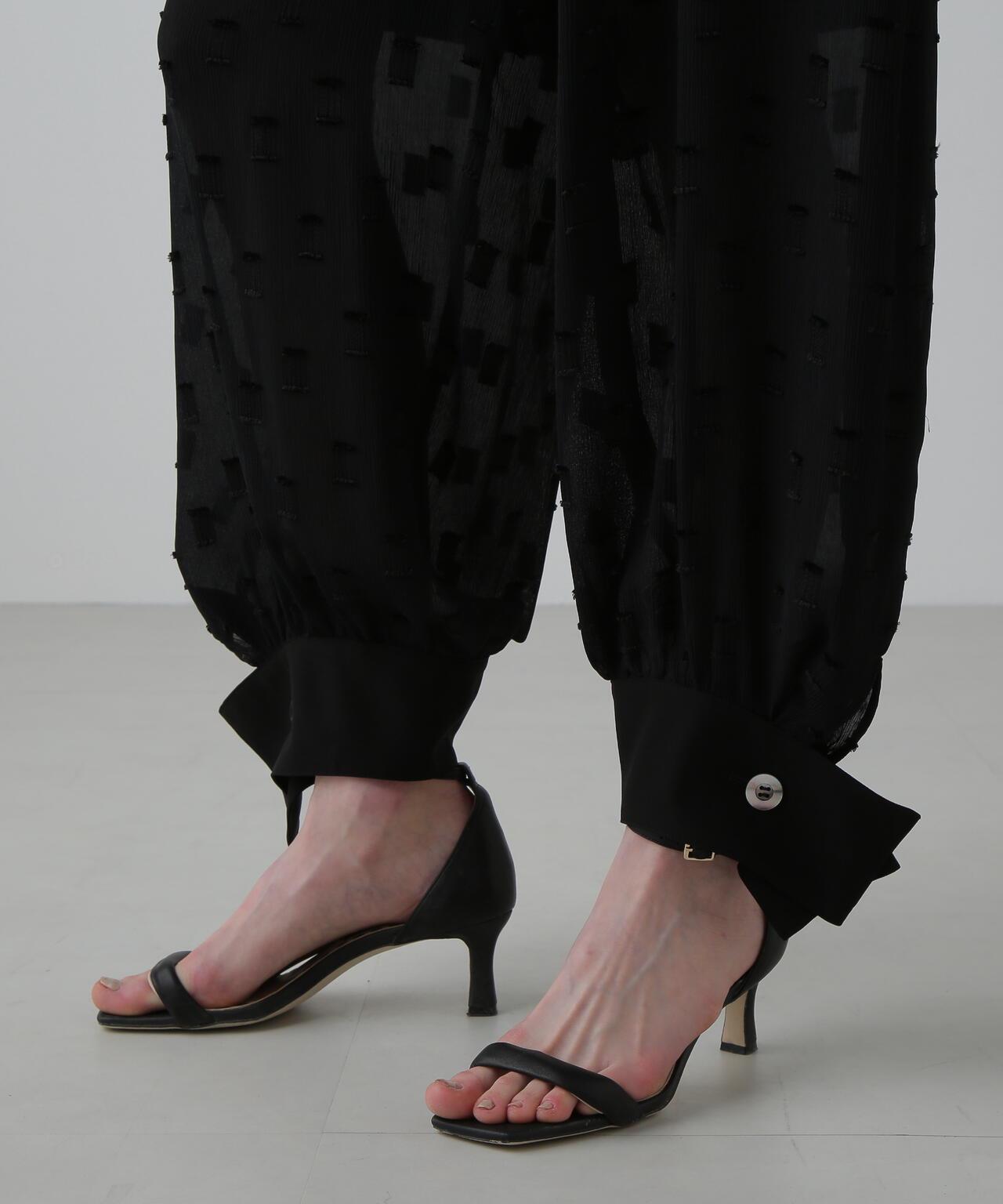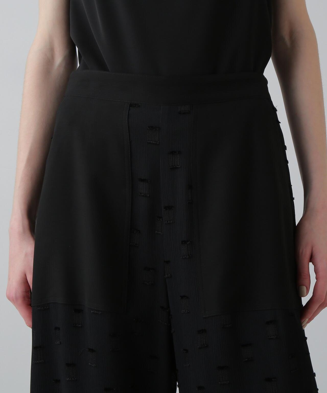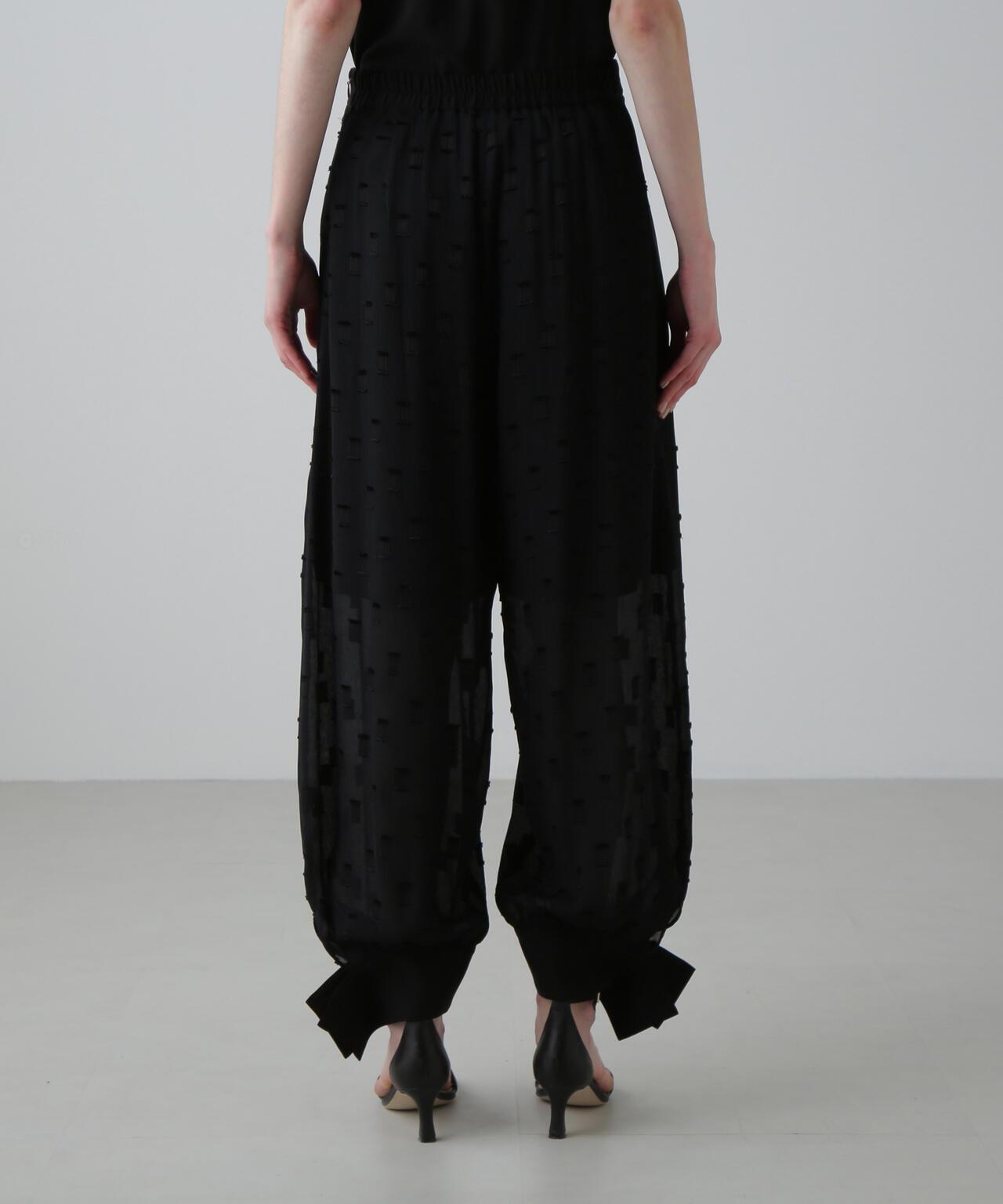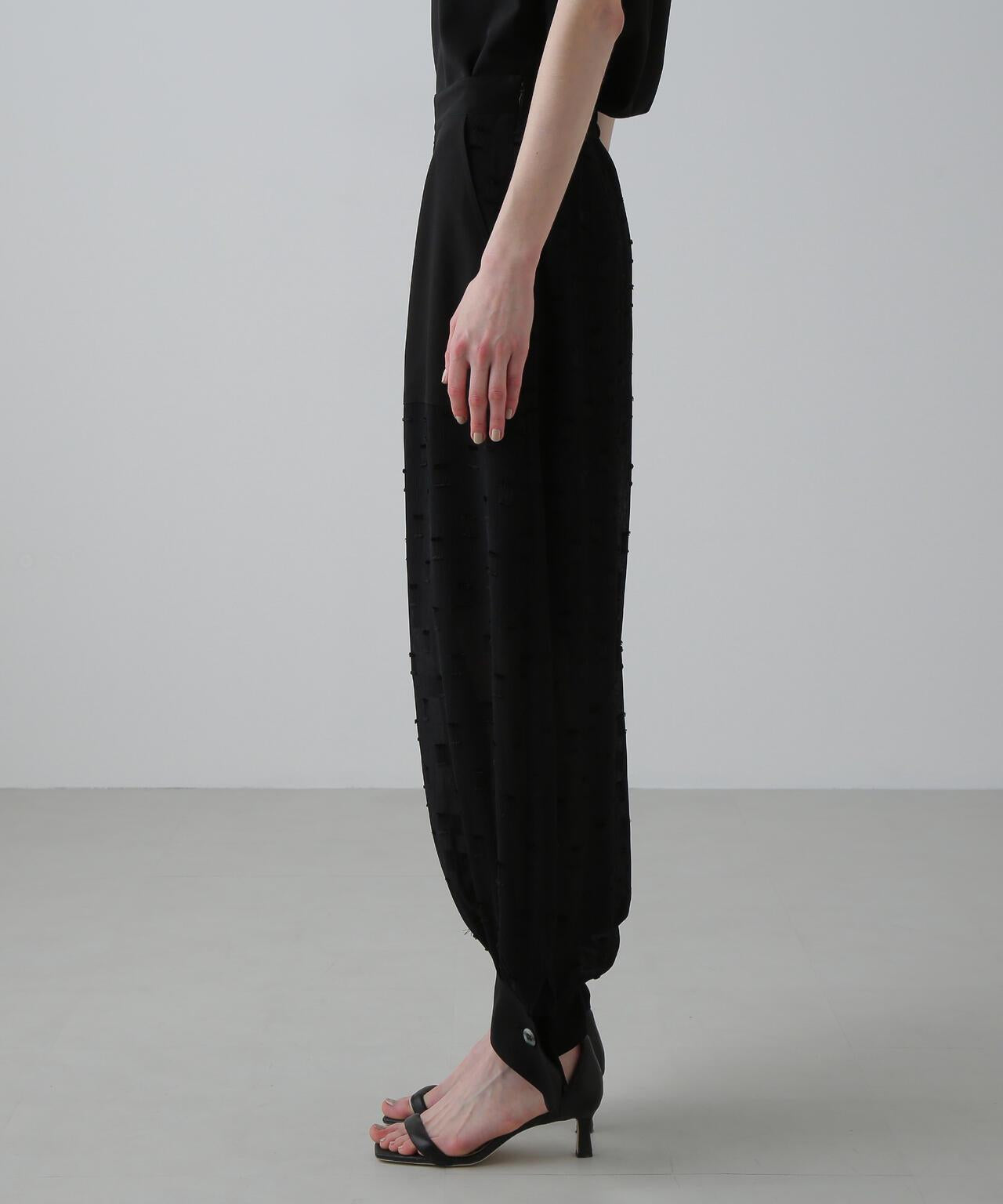 方形圖案提花面料長褲這款長褲採用優質提花面料製成,非常適合初秋穿著。這款長褲剪裁寬鬆,口袋和下襬採用不同的不透明材料製成。下襬部分設計成可以塞進腳踝。建議搭配同款上衣(貨號:531-5210806)。這種提花面料未經加工,但由於紗線捻度和收縮率的不同,經線上會出現柳條般的褶皺,並通過閃亮的聚酯紗線表現出重點剪裁圖案。請注意,這種面料較薄,比較脆弱,請小心不要弄破或撕裂。