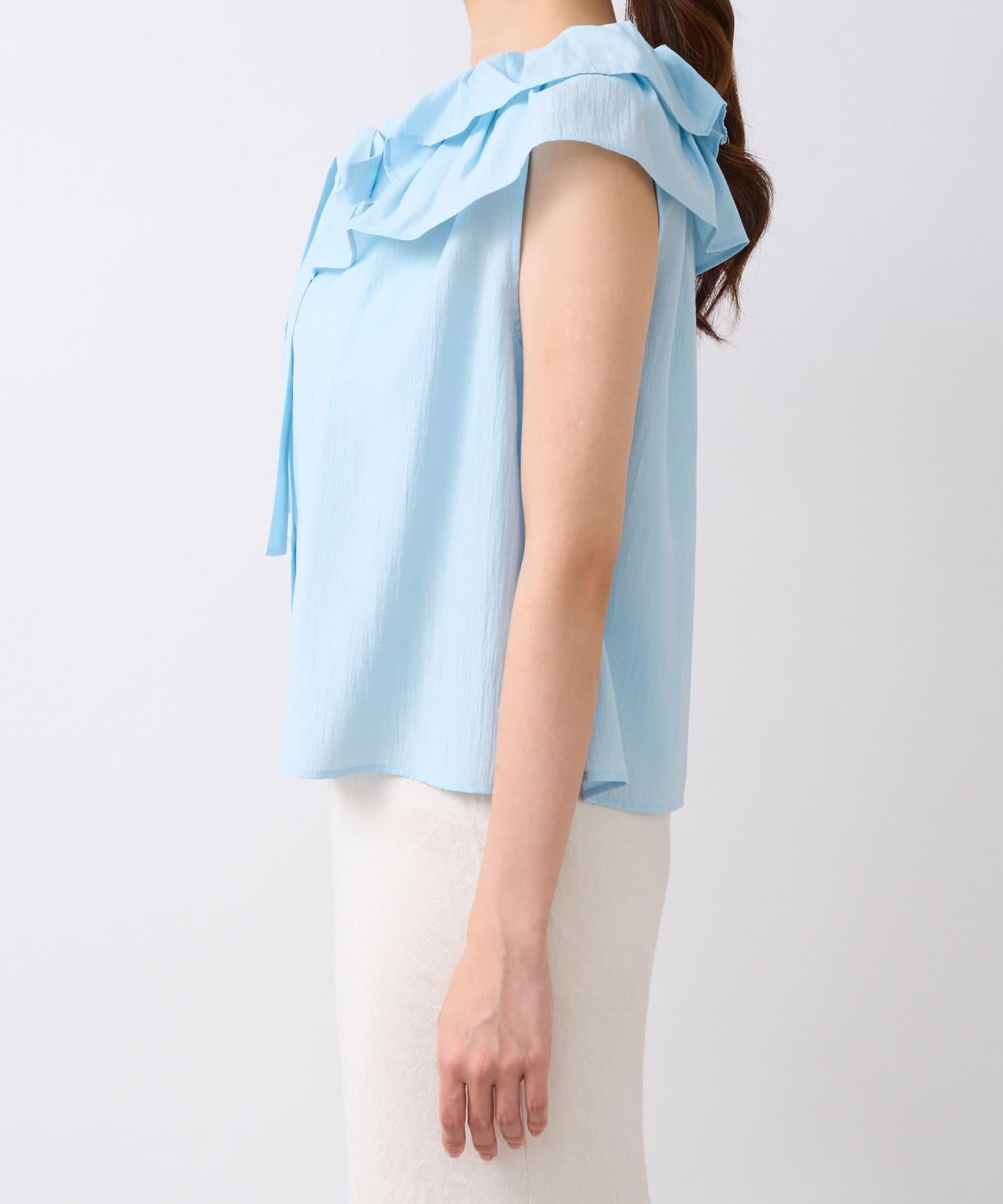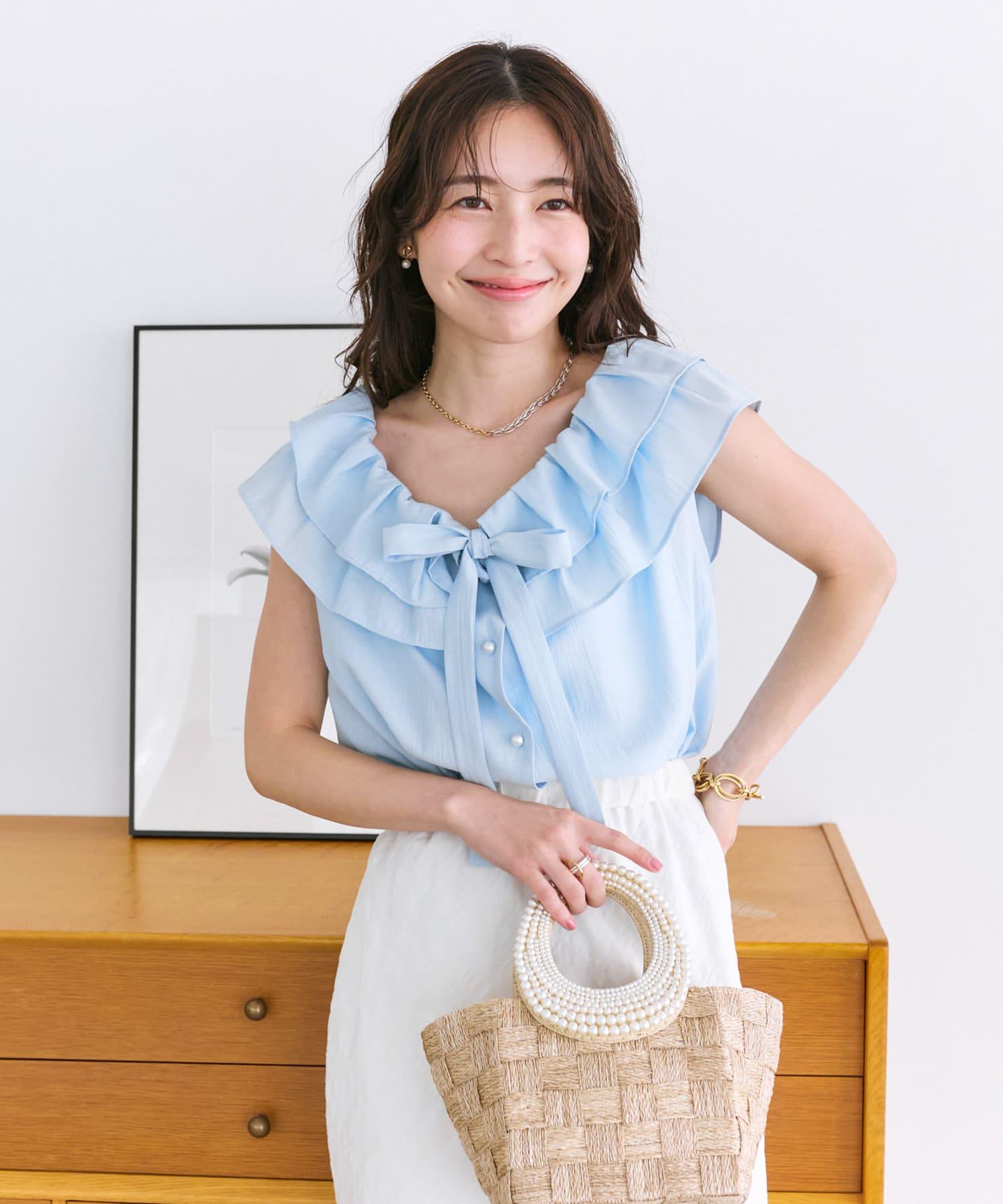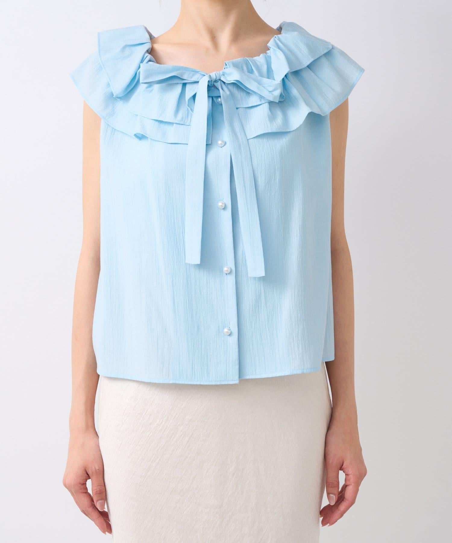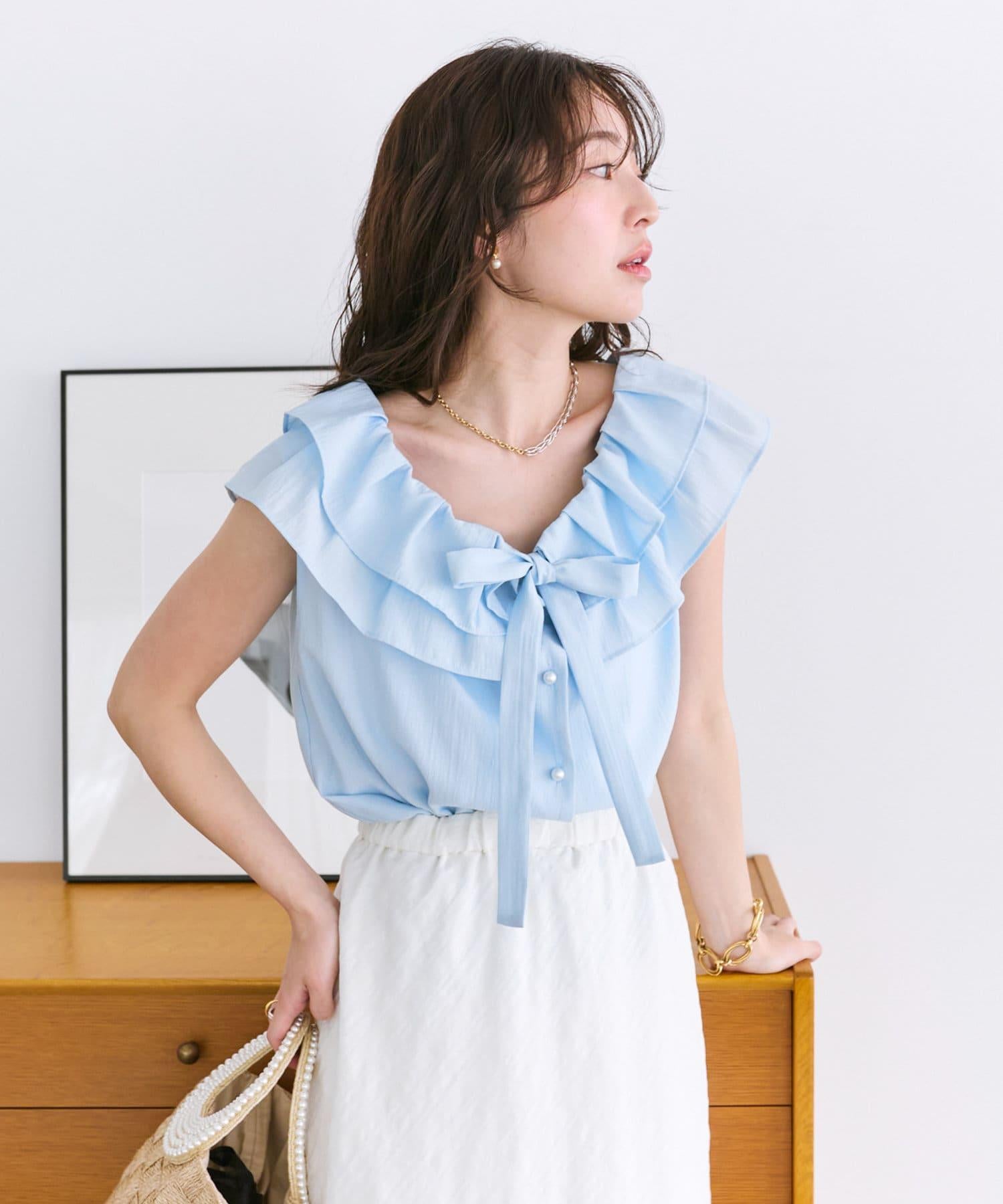 【最強被愛】聚攏荷葉邊蝴蝶結無袖襯衫
