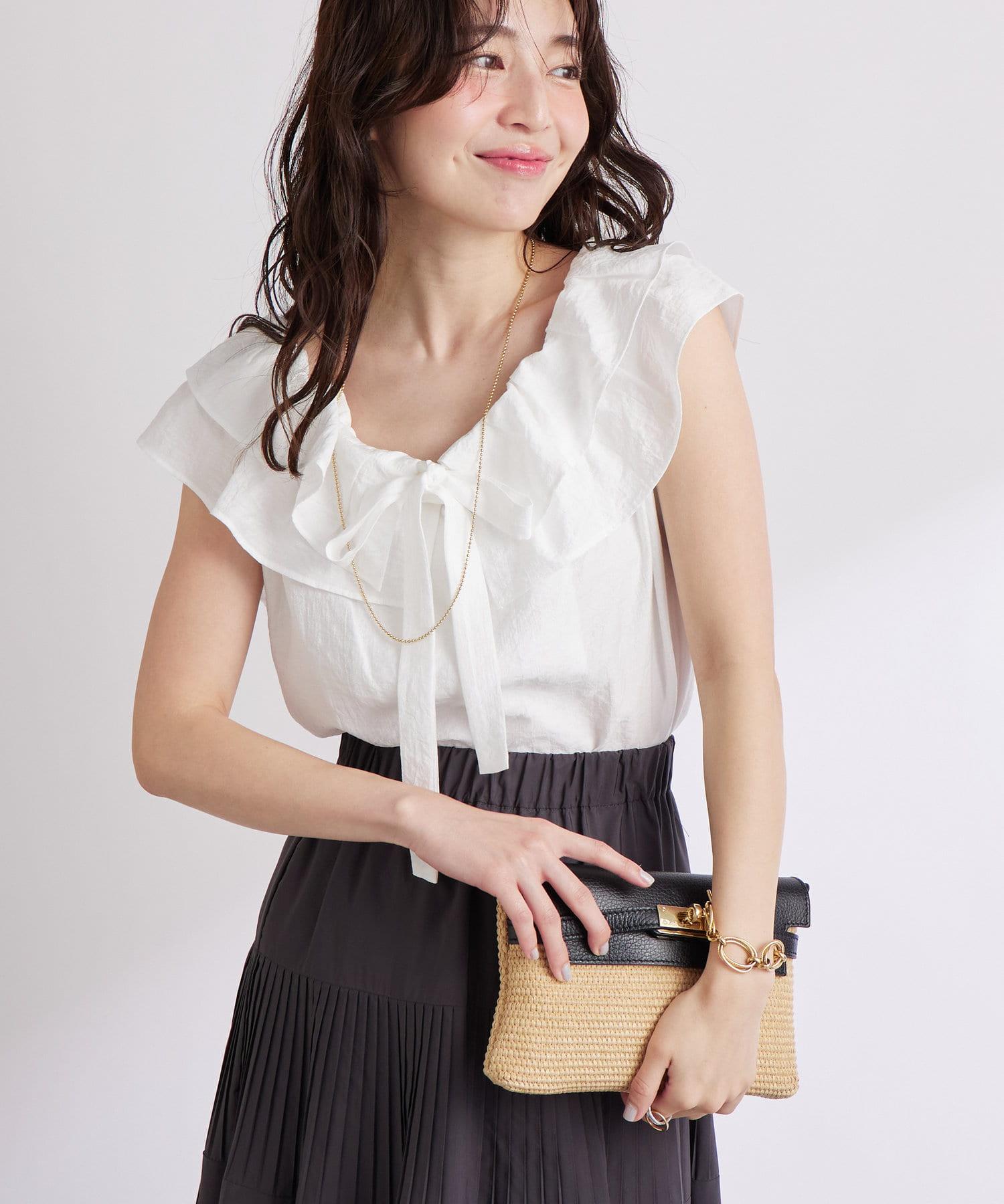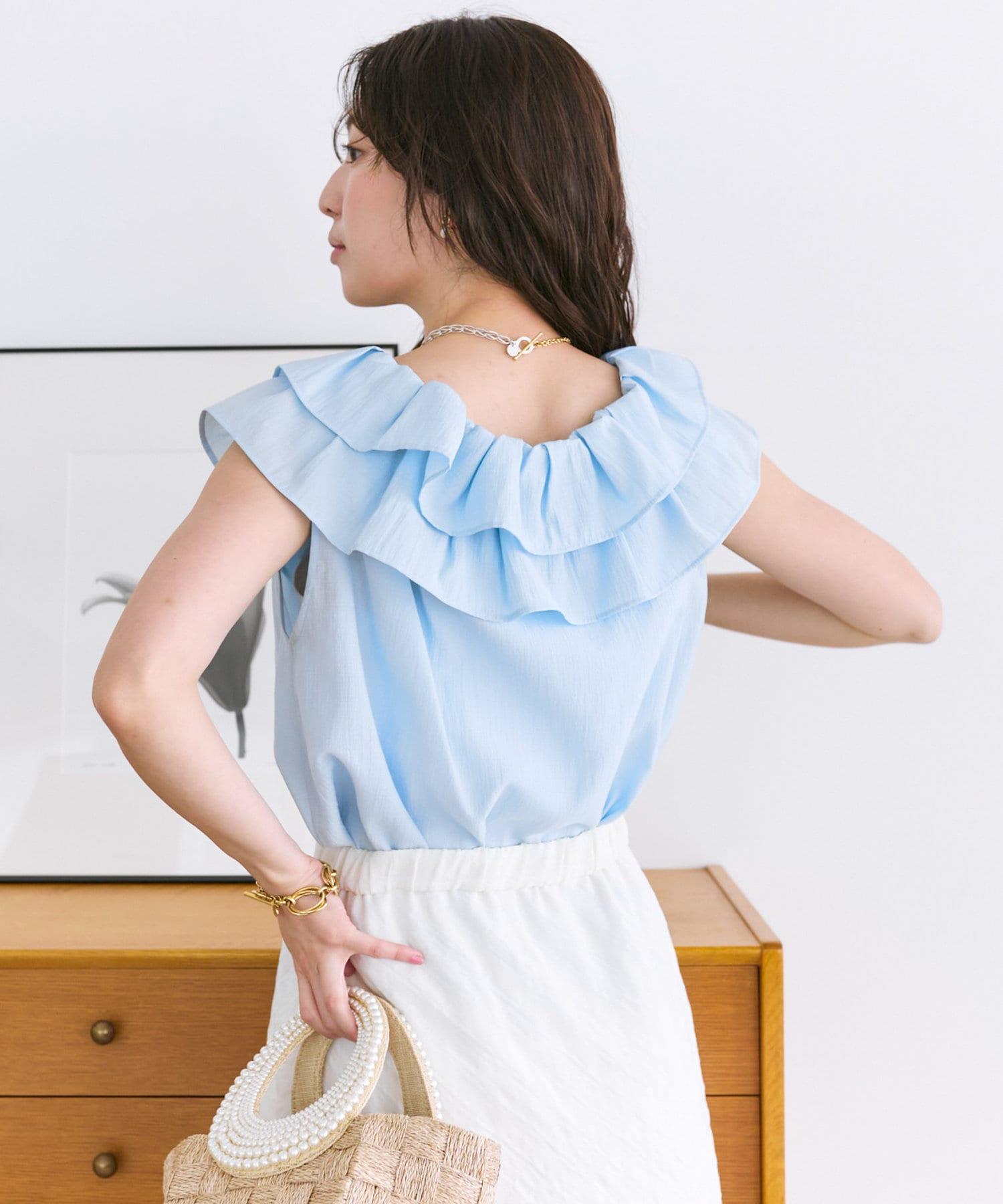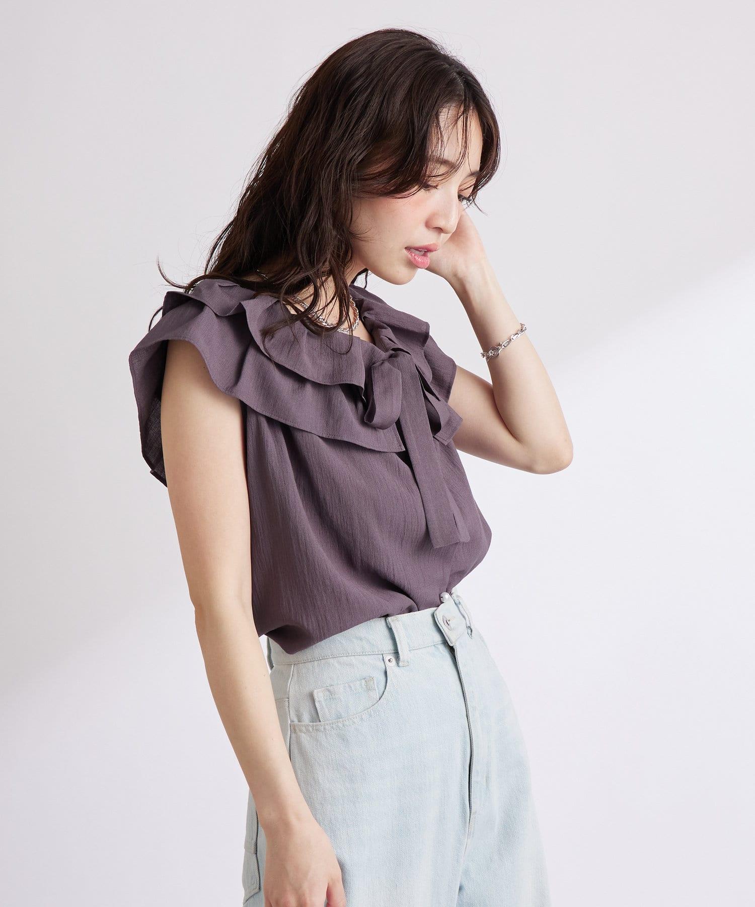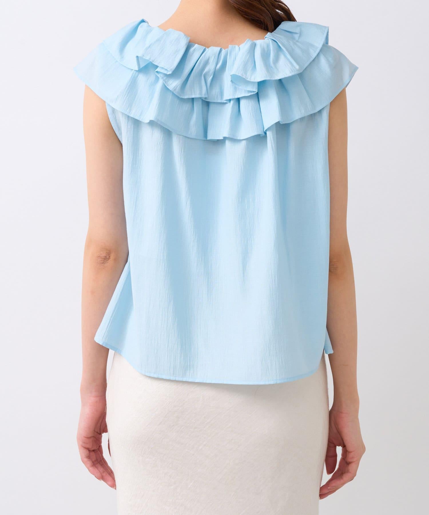 【最強被愛】聚攏荷葉邊蝴蝶結無袖襯衫