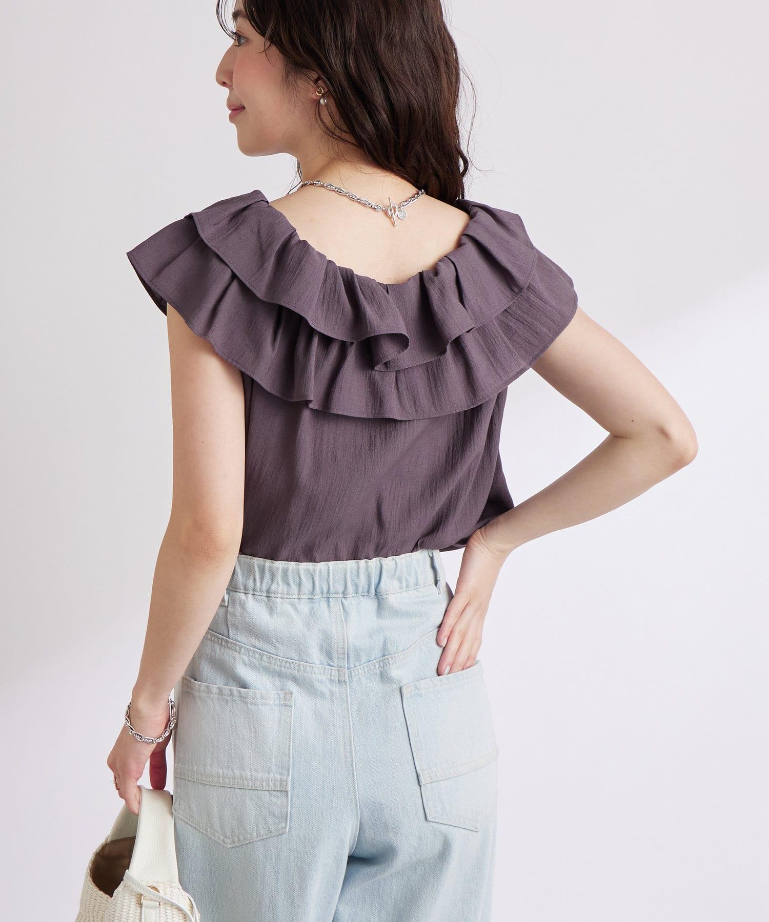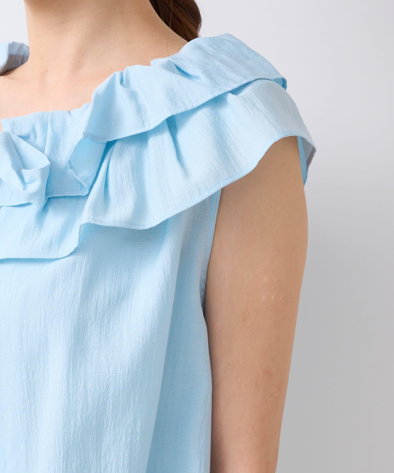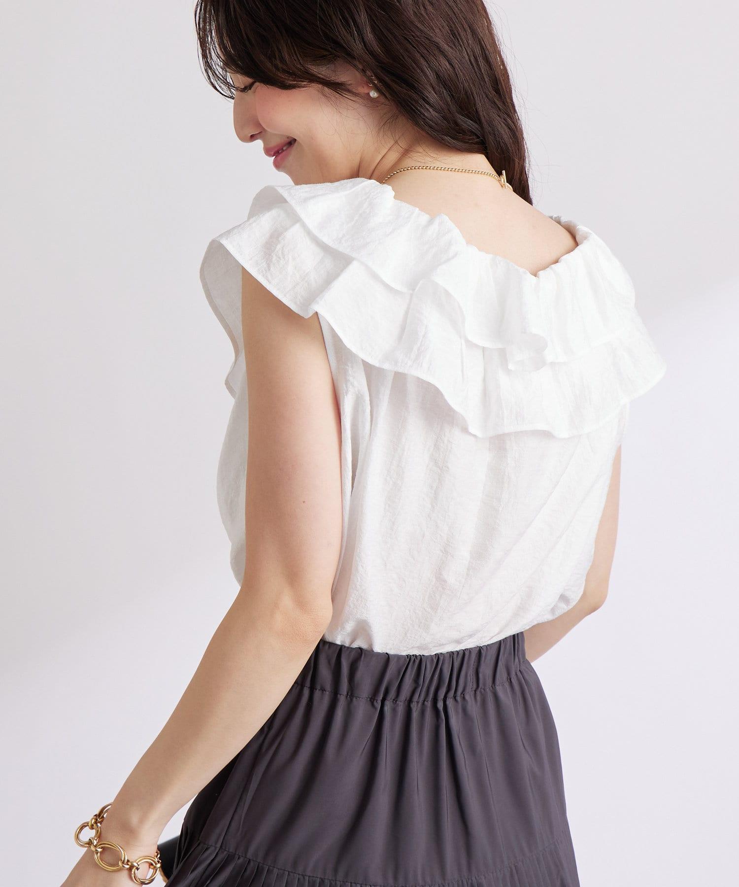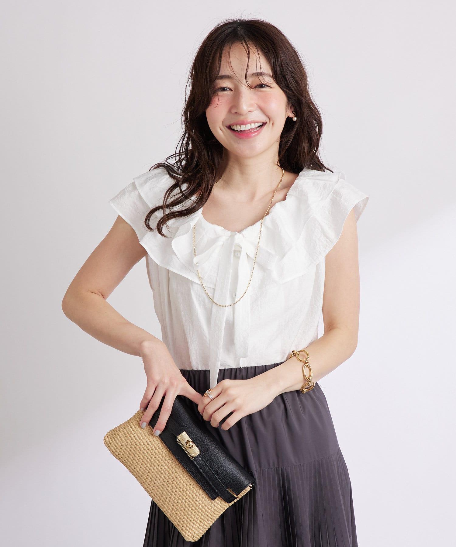 【最強被愛】聚攏荷葉邊蝴蝶結無袖襯衫
