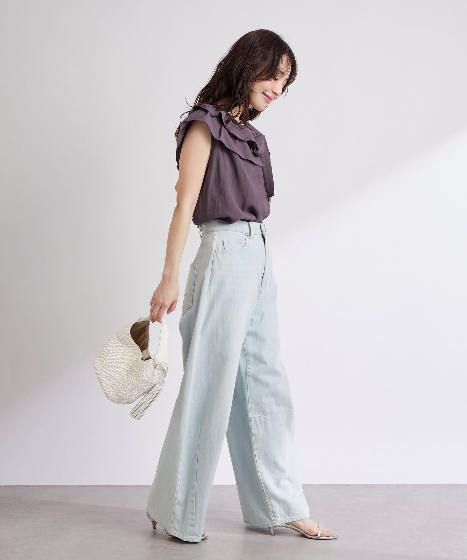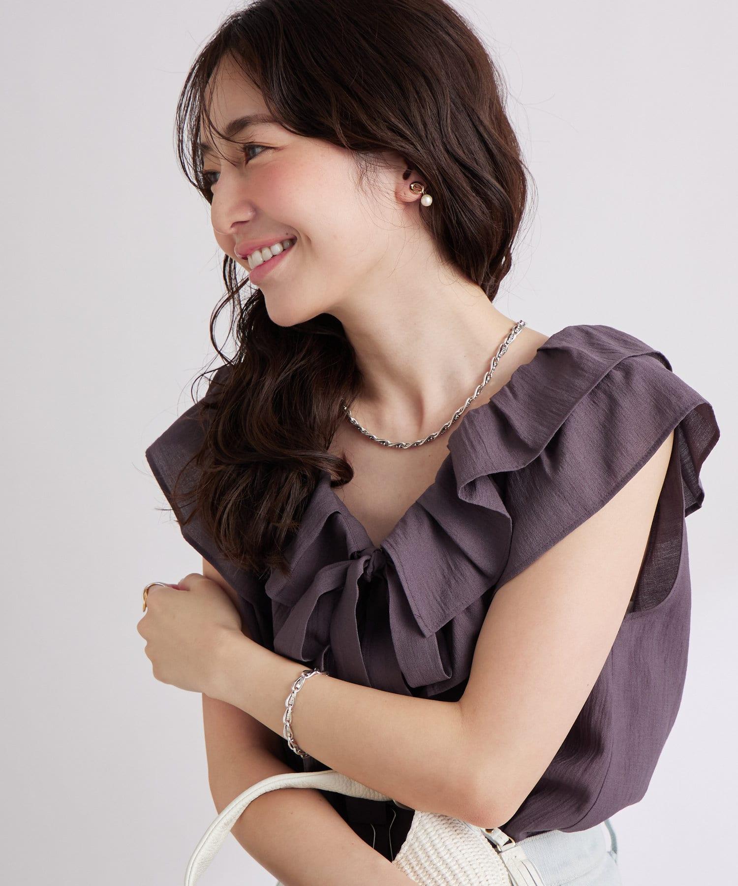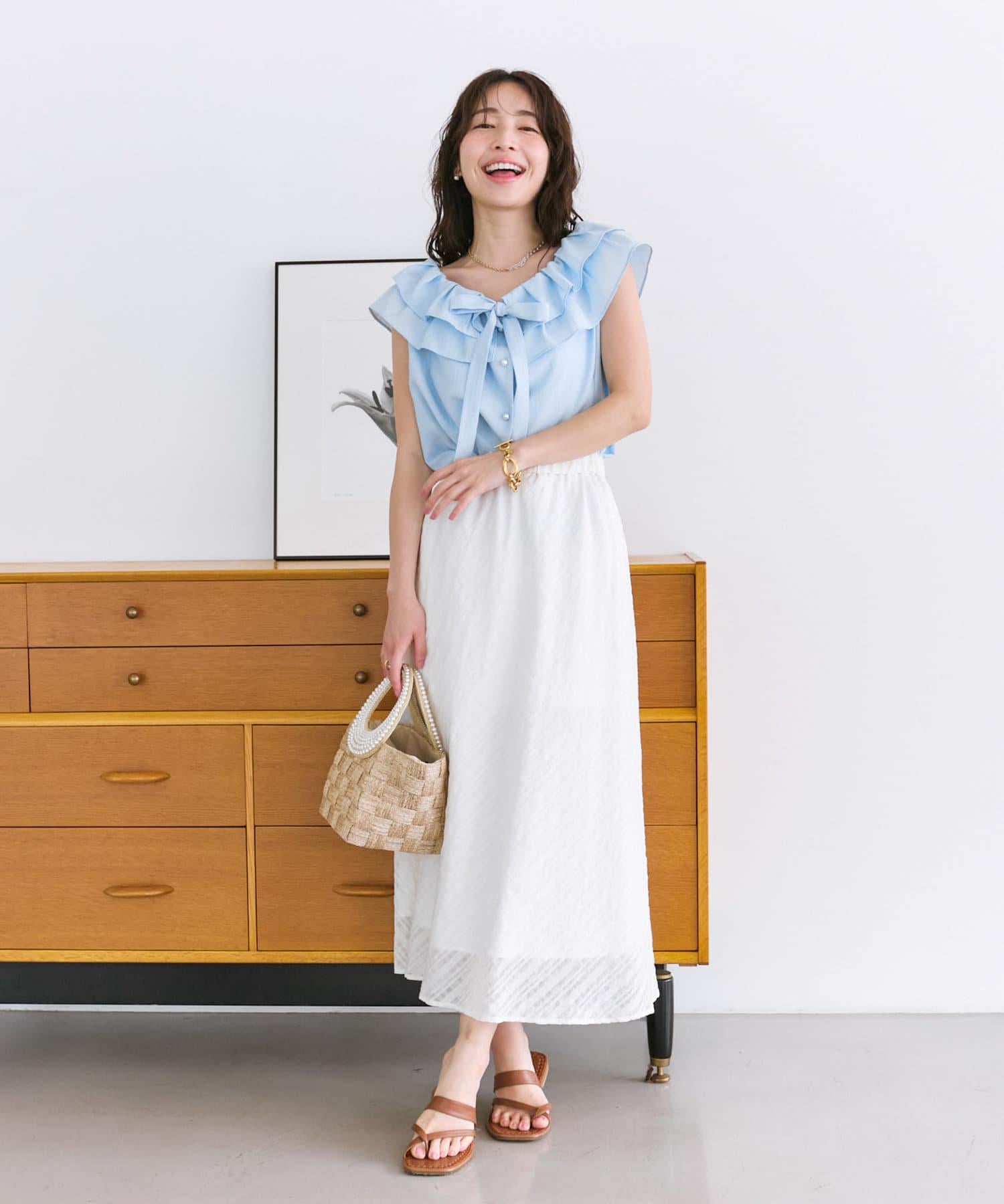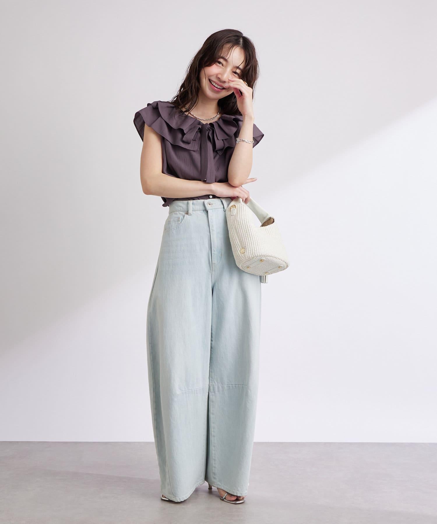 【最強被愛】聚攏荷葉邊蝴蝶結無袖襯衫
