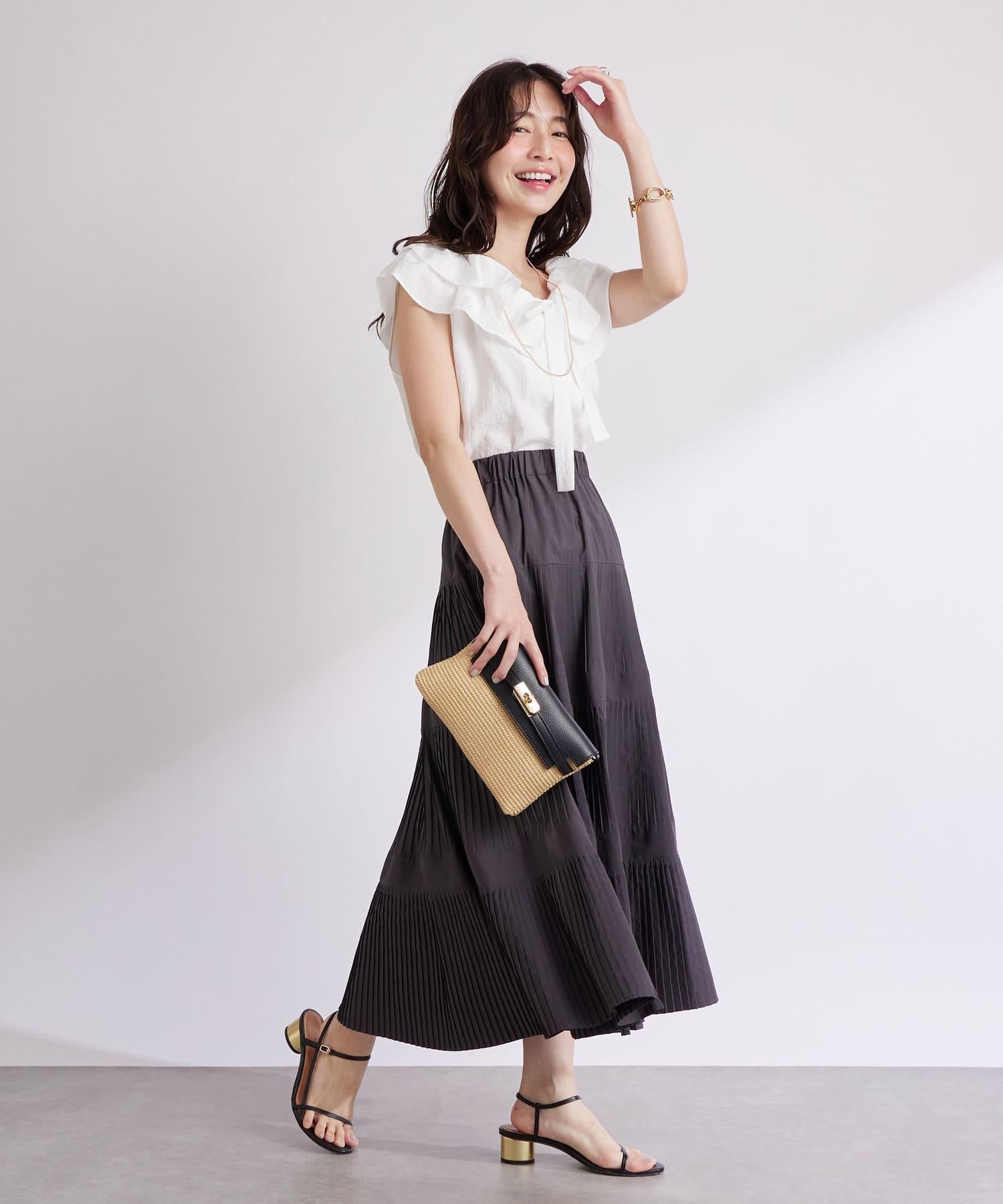 前襟飾有優雅的珍珠紐扣,起到了巧妙的點綴作用。