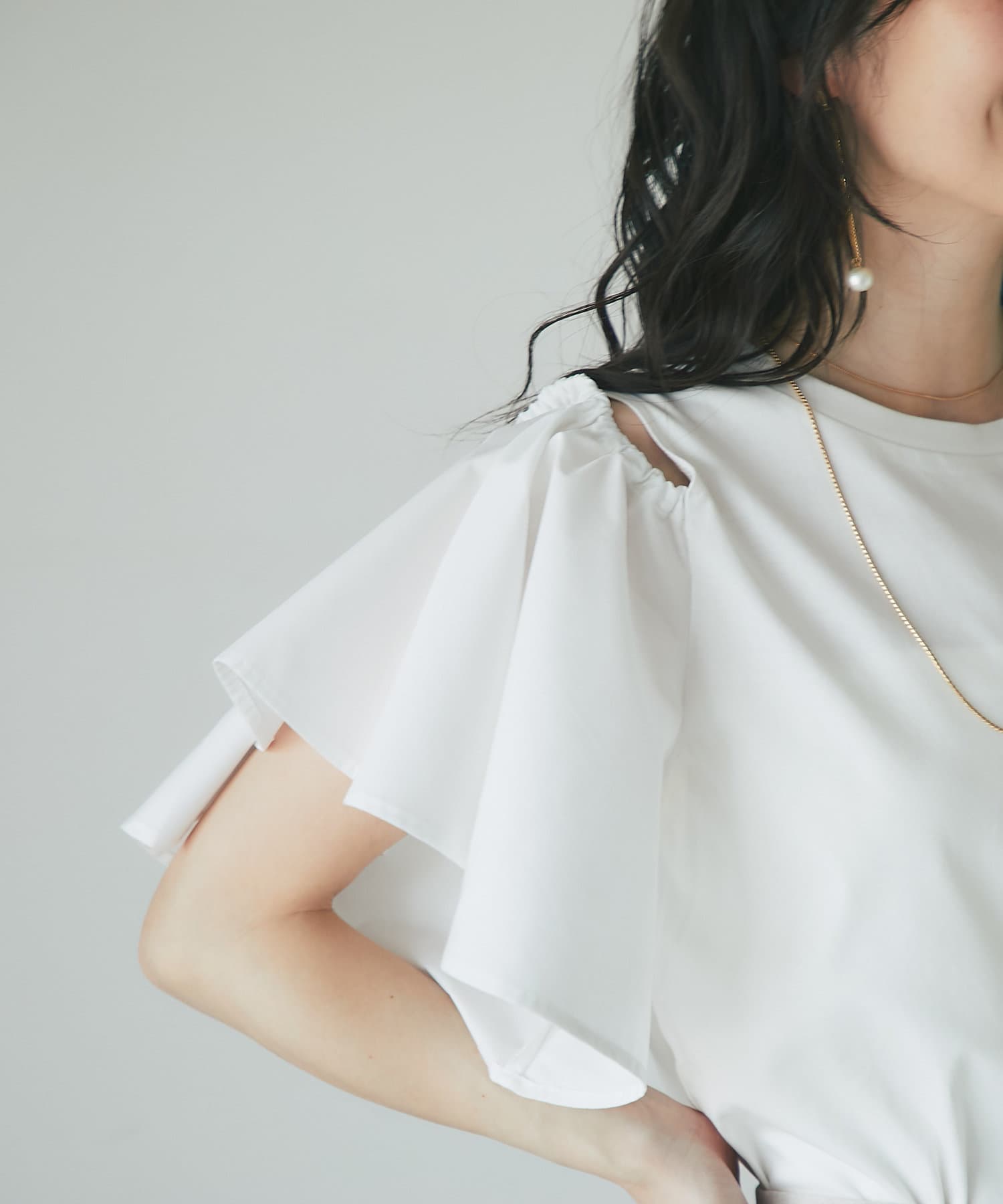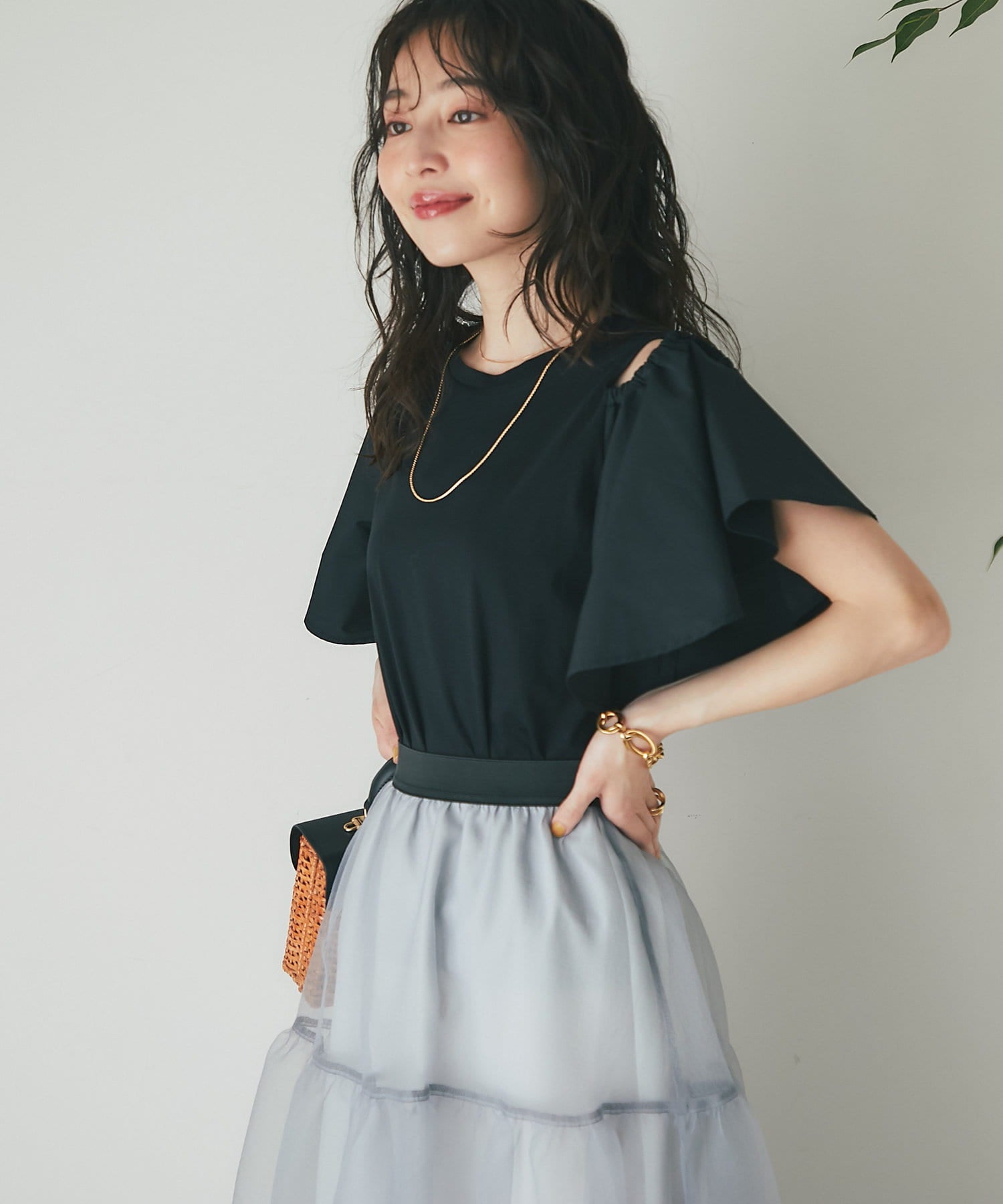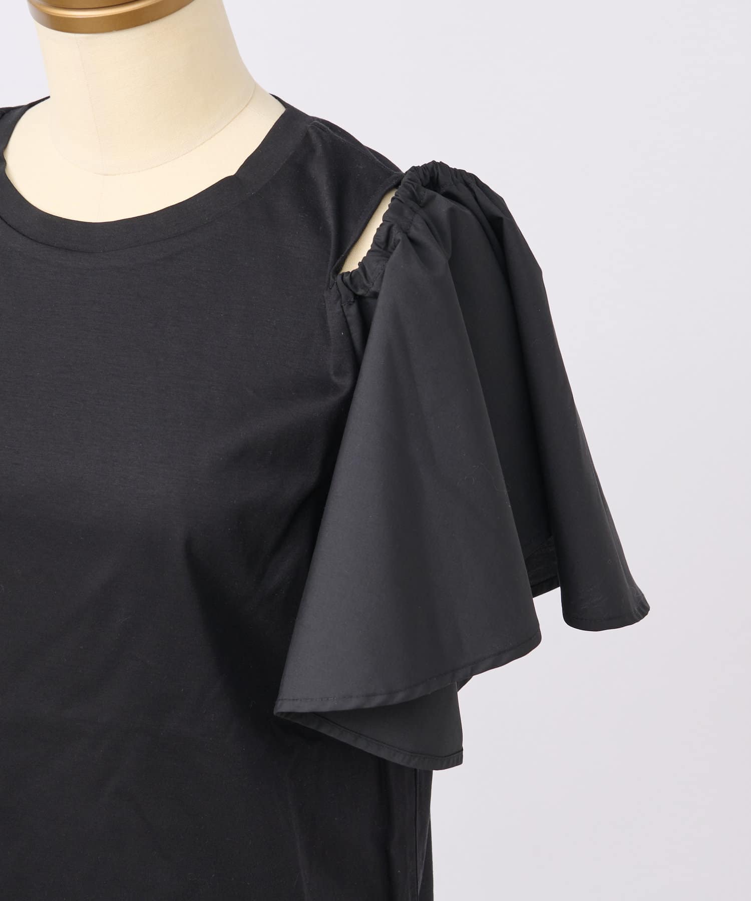 【最強魅力·3WAY】異素材荷葉袖T恤